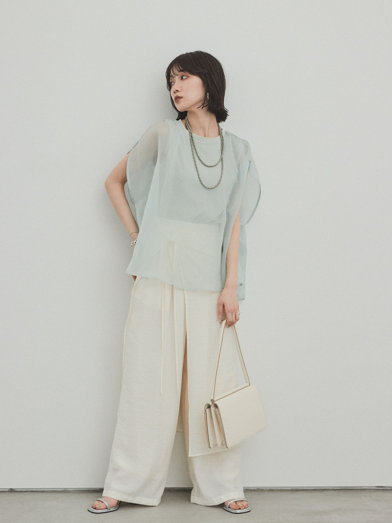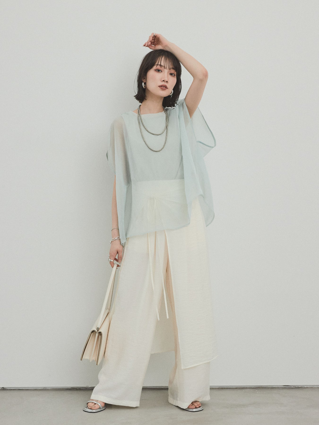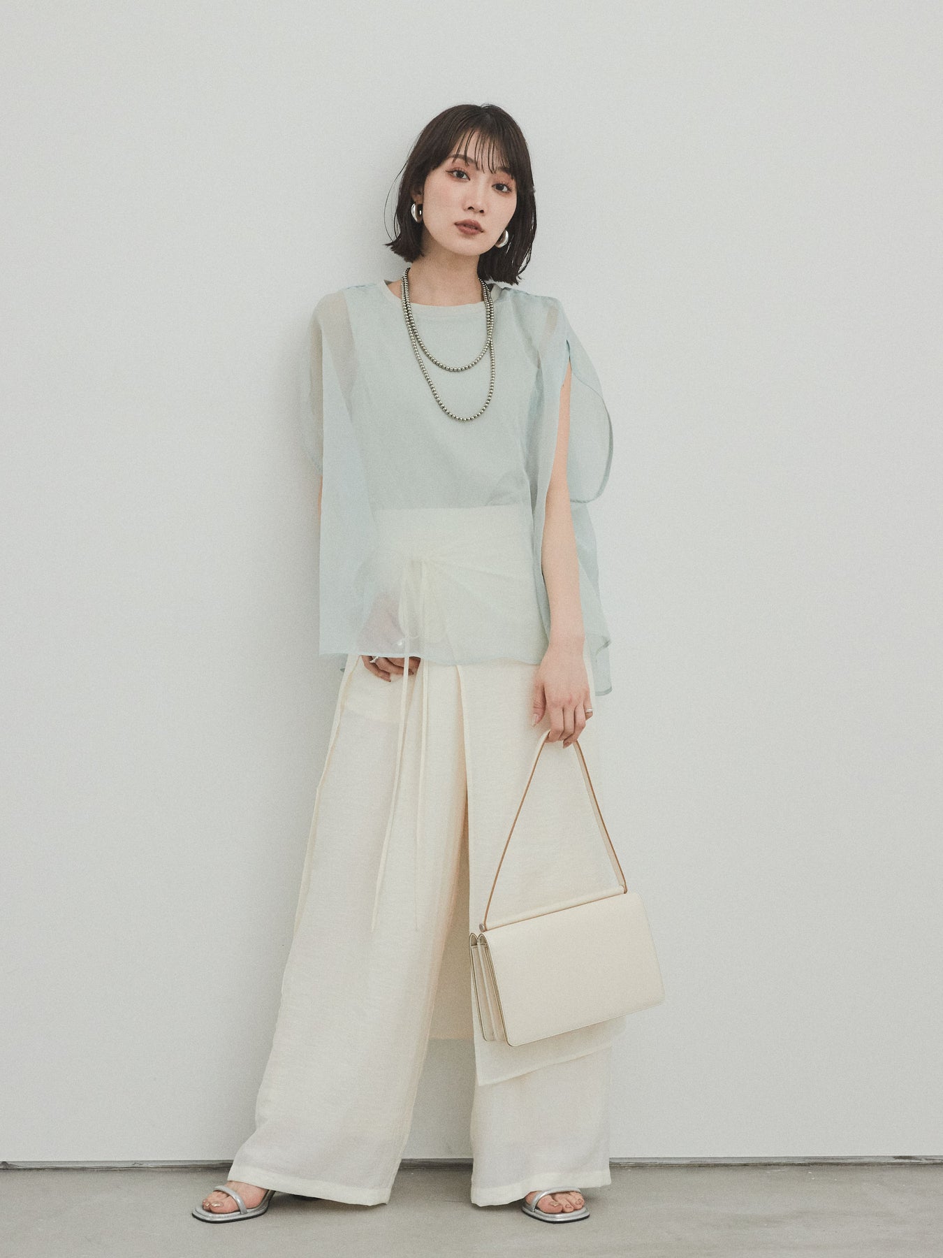 [SET]コンパクトスムースシアーレイヤードトップス+ワッシャーサテンレイヤードスカートパンツ(2set)