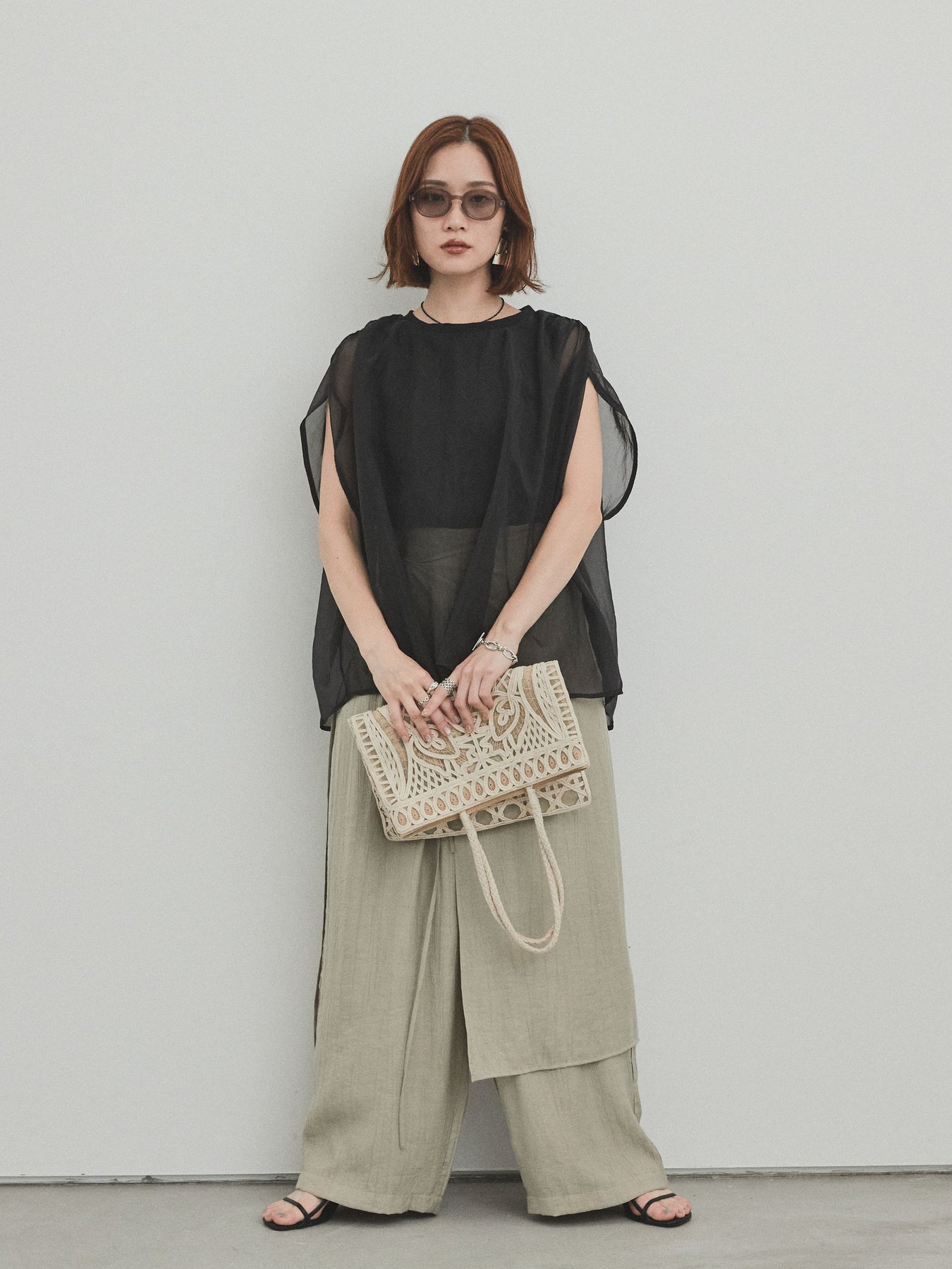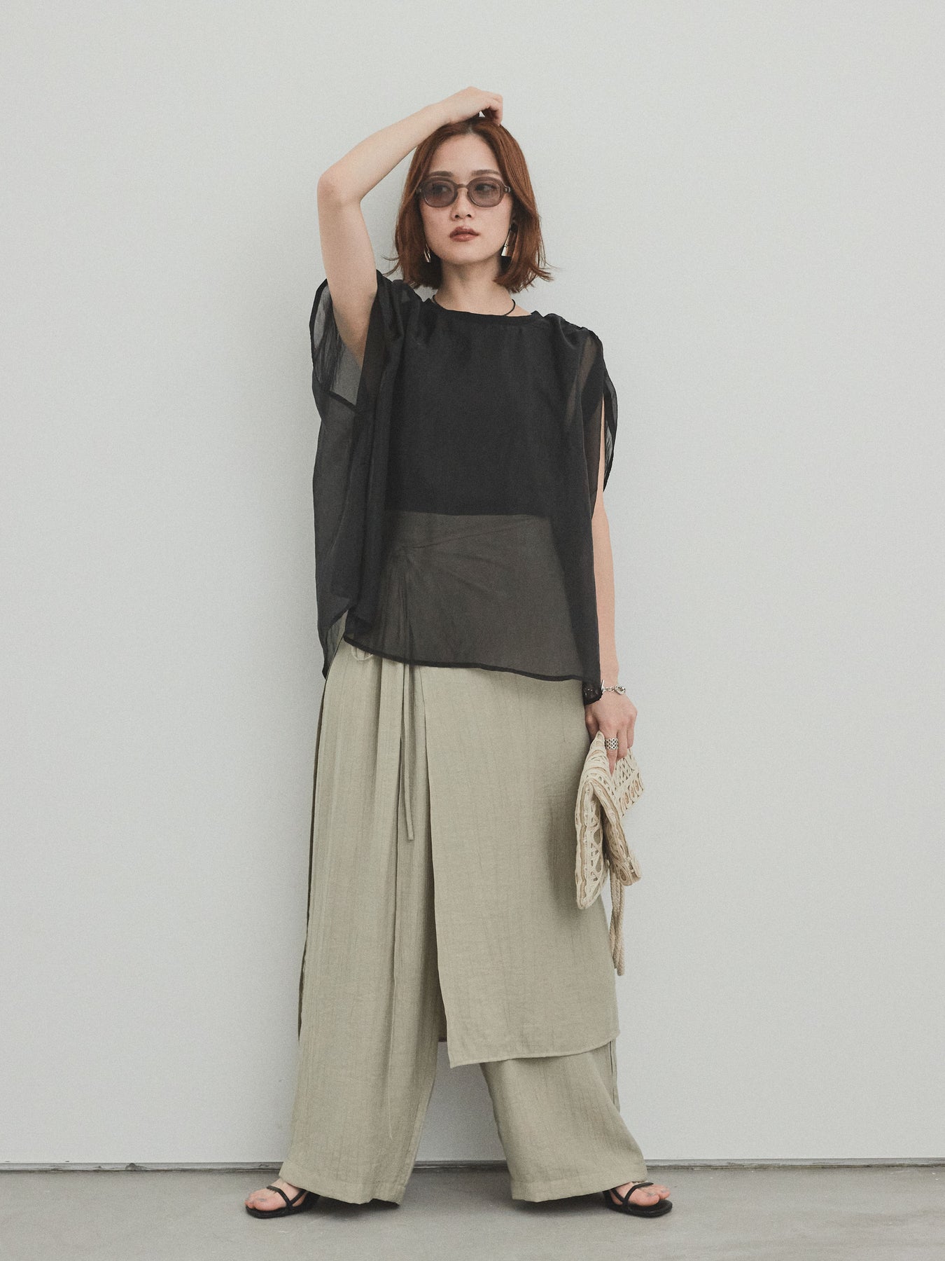 ◆ [予約]ワッシャーサテンレイヤードスカートパンツ