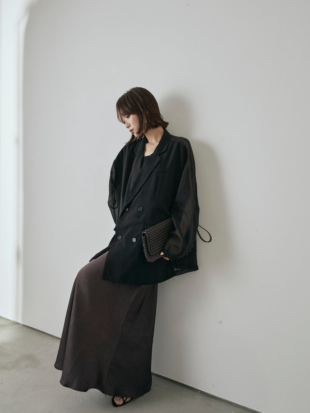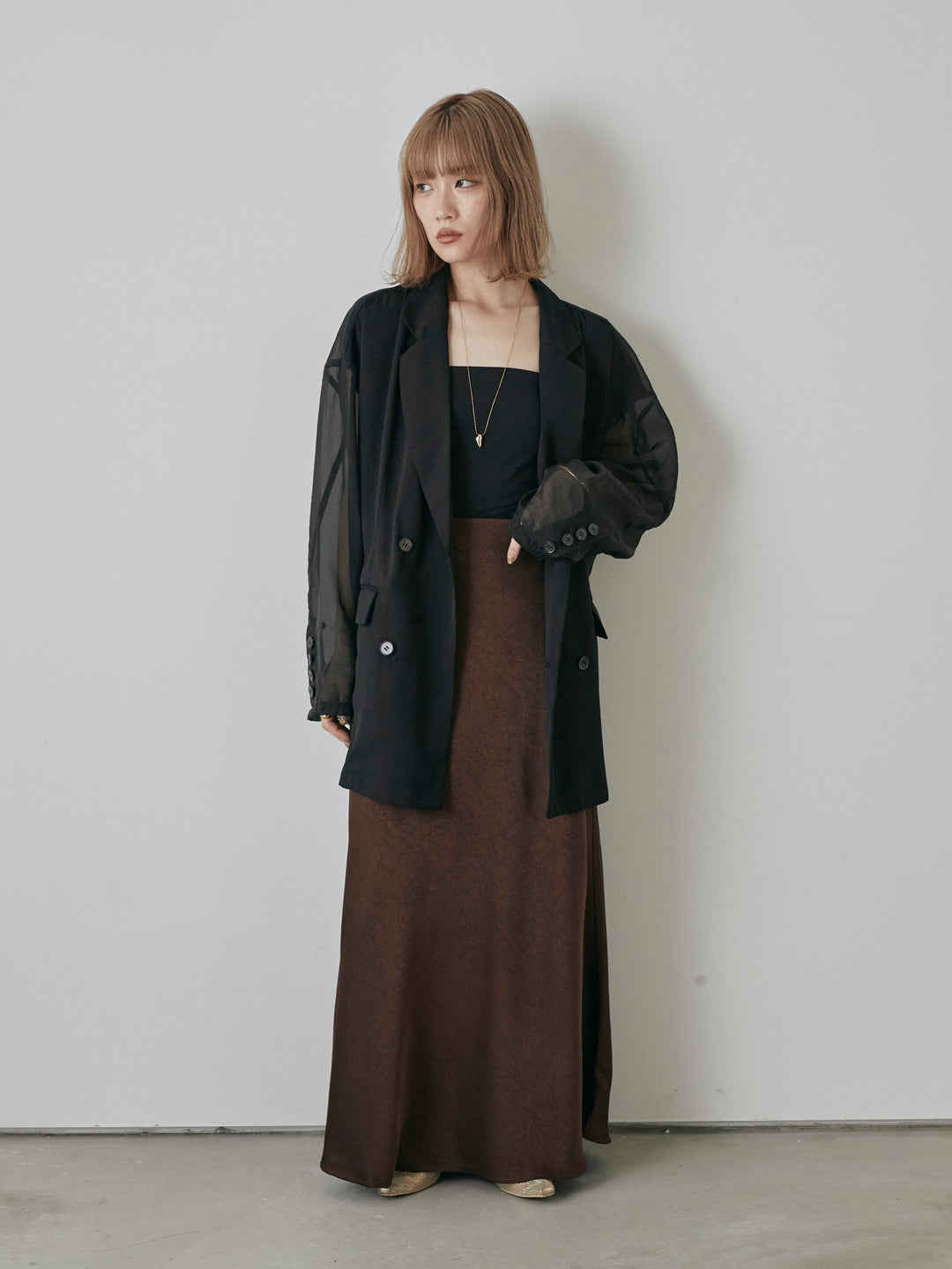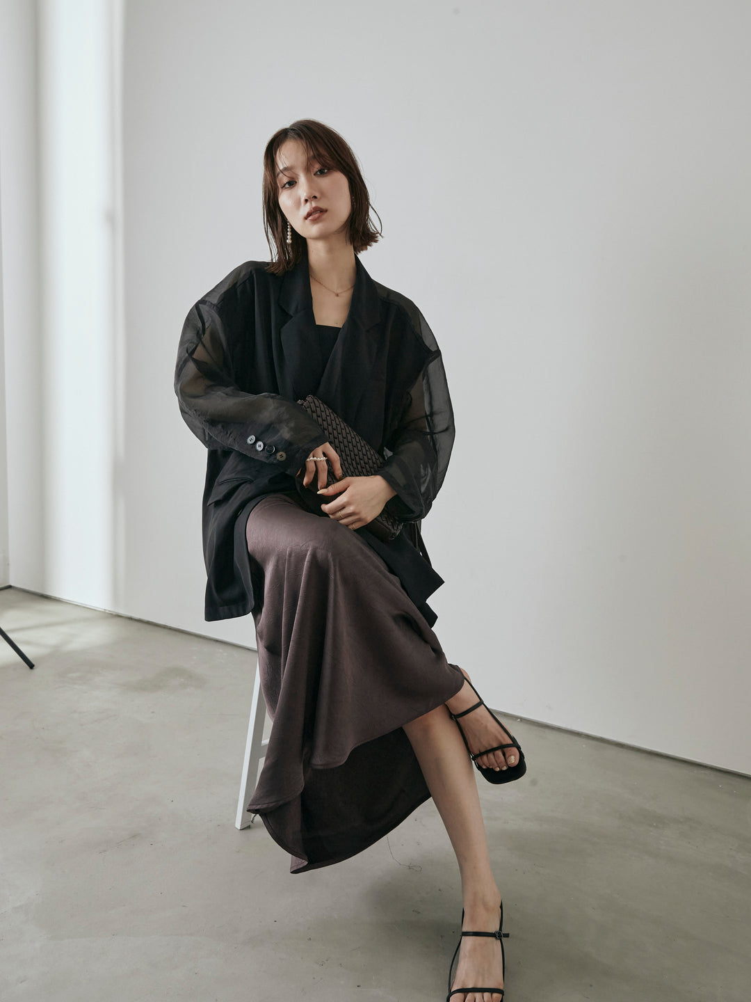 [SET]シアー切替オーバーテーラードジャケット+サテンワッシャーナロースカート(2set)