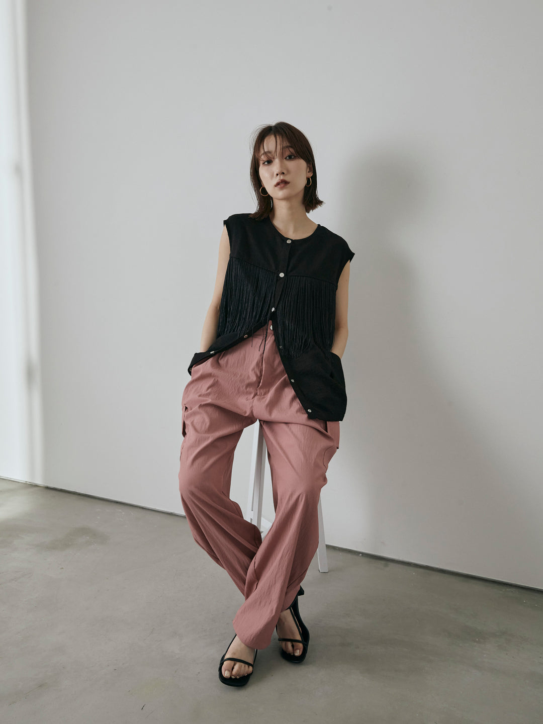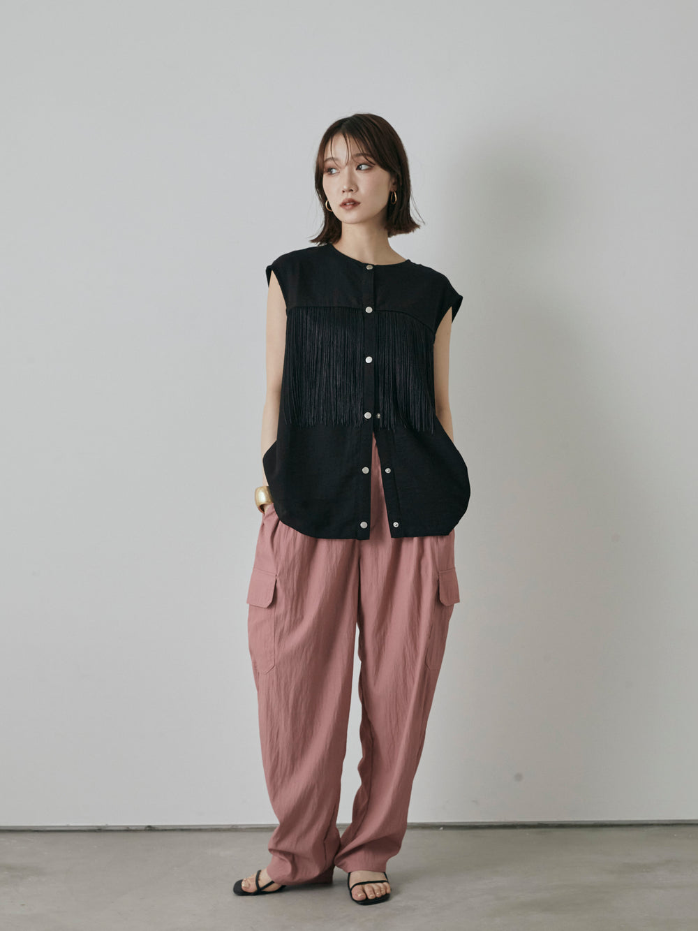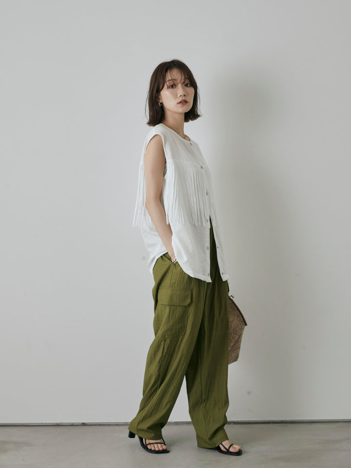 [SET]フリンジノースリブラウス+ミリタリーカーゴパンツ(2set)