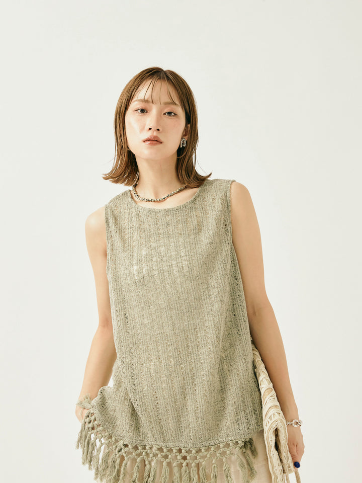 [予約]フリンジ透かし編みニットベスト