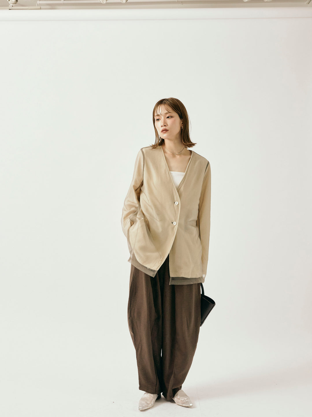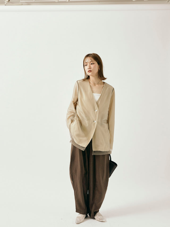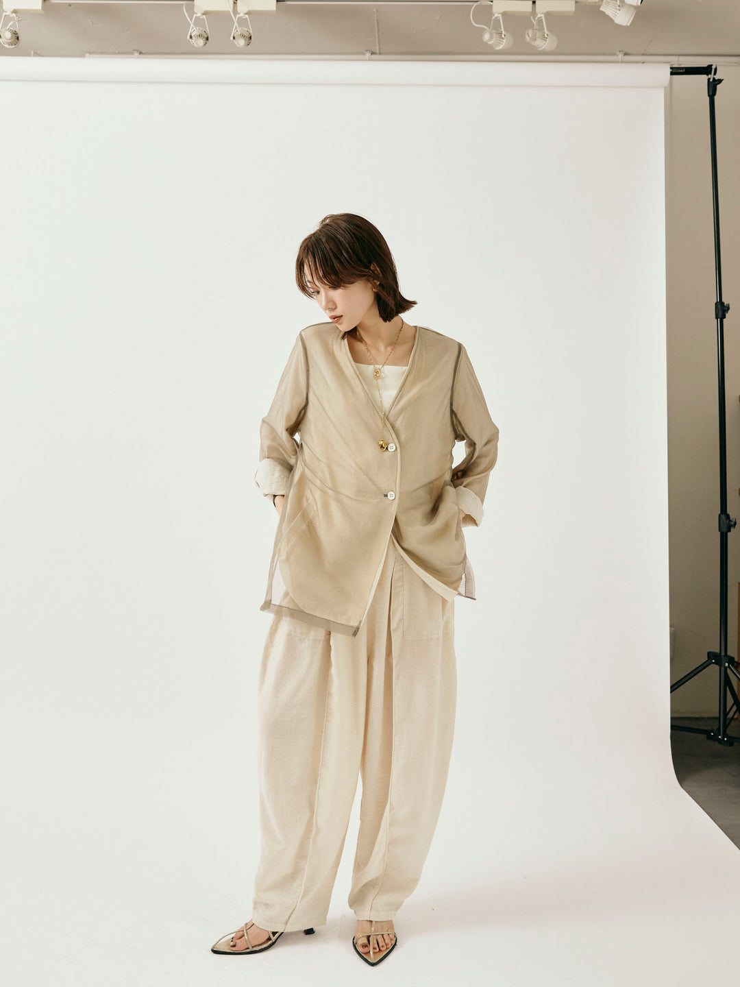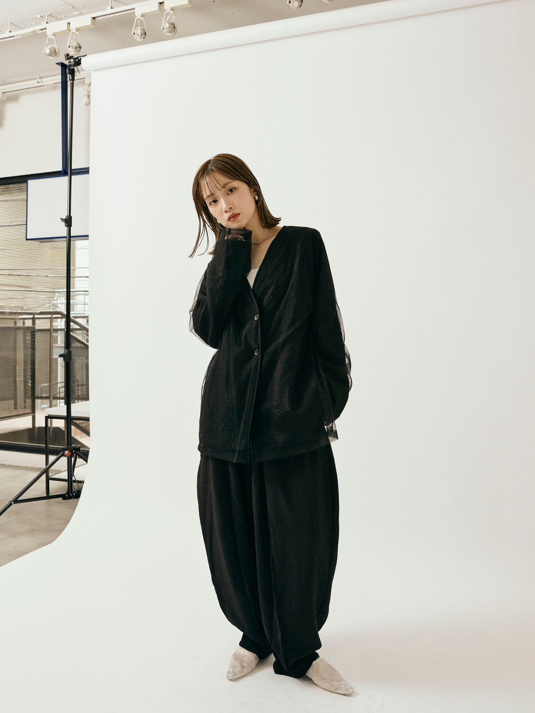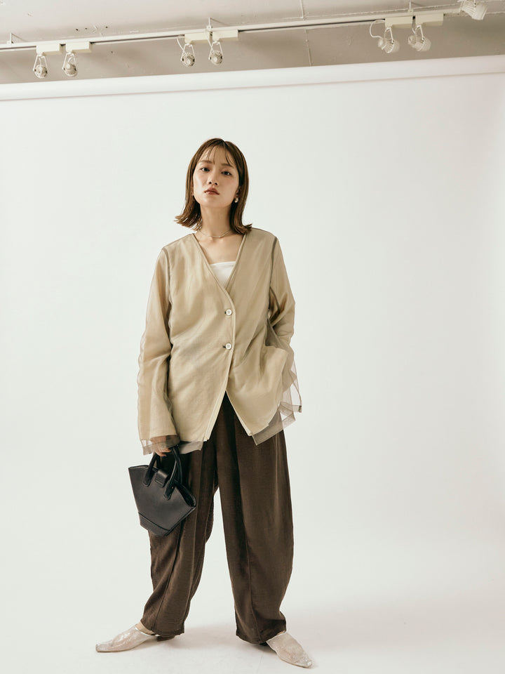 【Allure】[SET]チュールレイヤードVジャケット+リネンライクベイカーバルーンパンツ(2set)