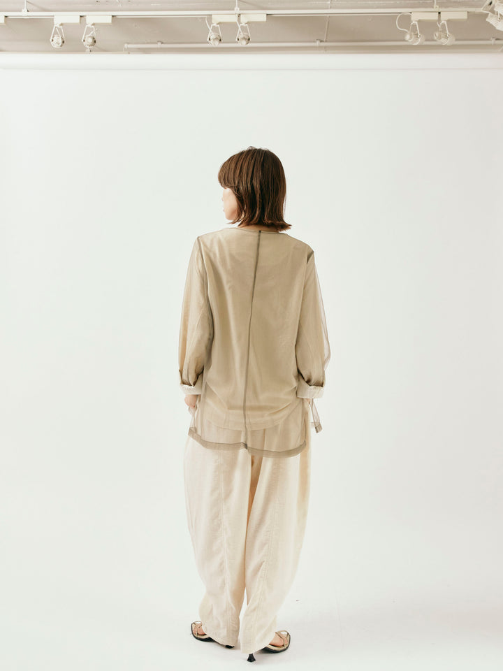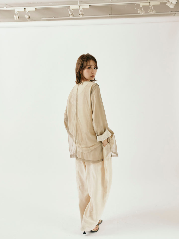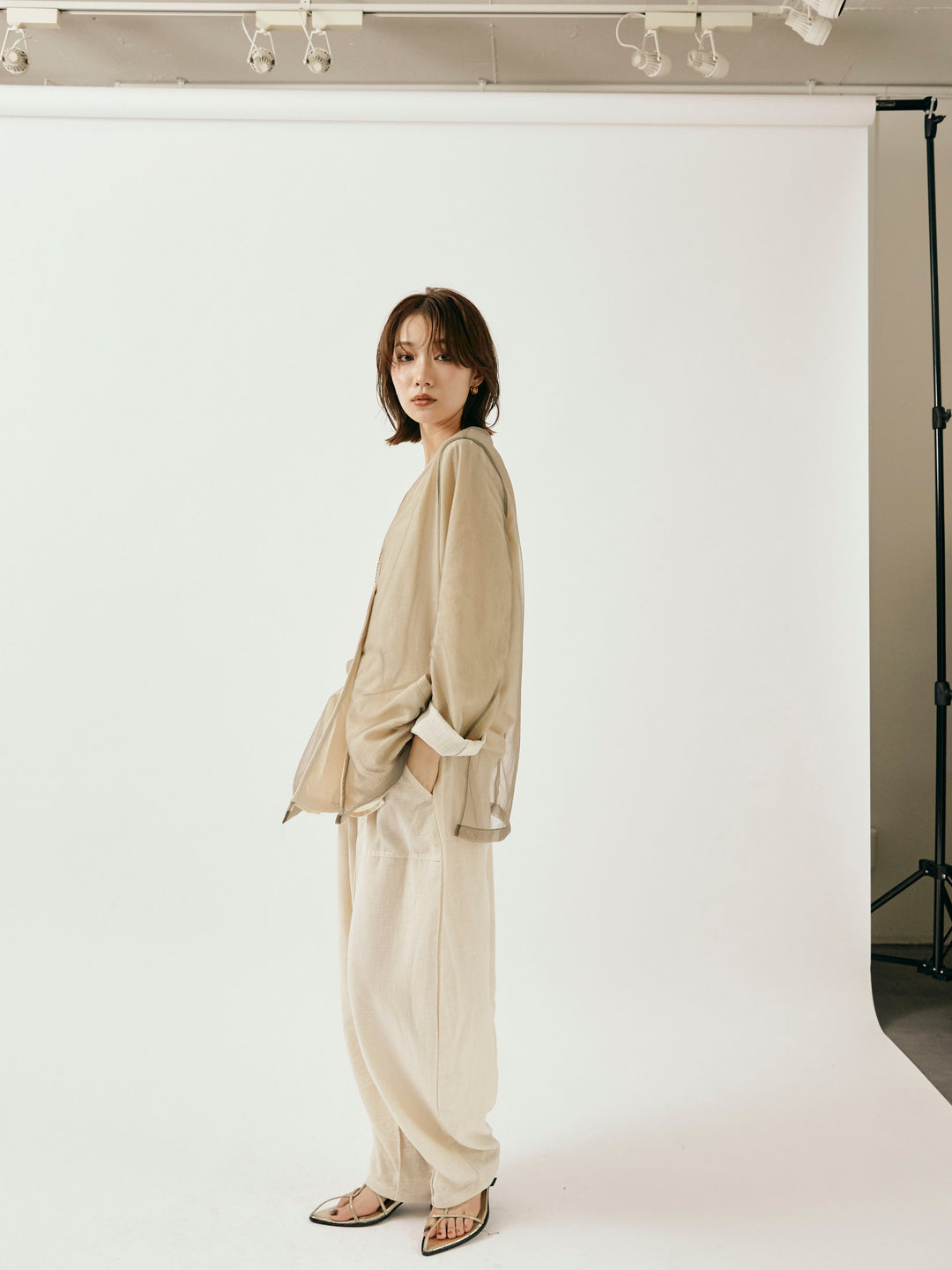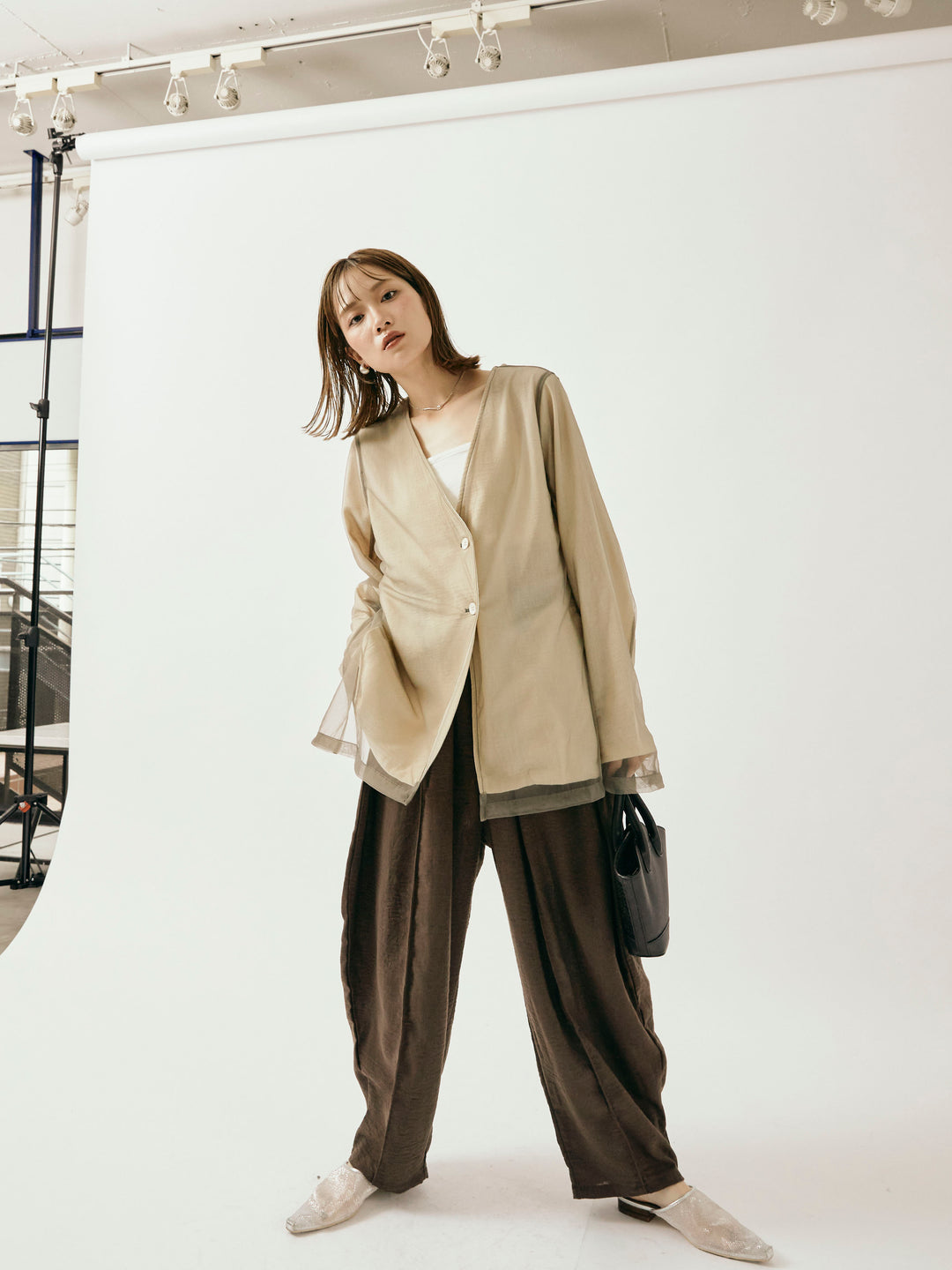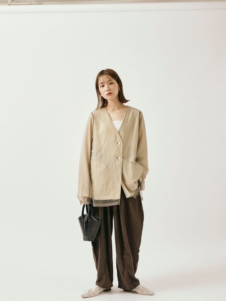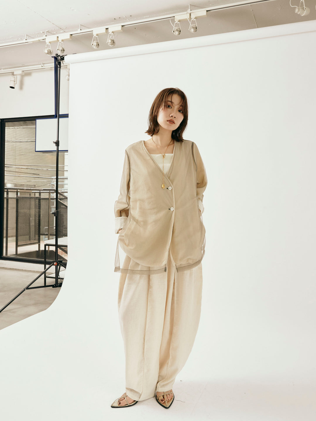 【Allure】[SET]チュールレイヤードVジャケット+リネンライクベイカーバルーンパンツ(2set)