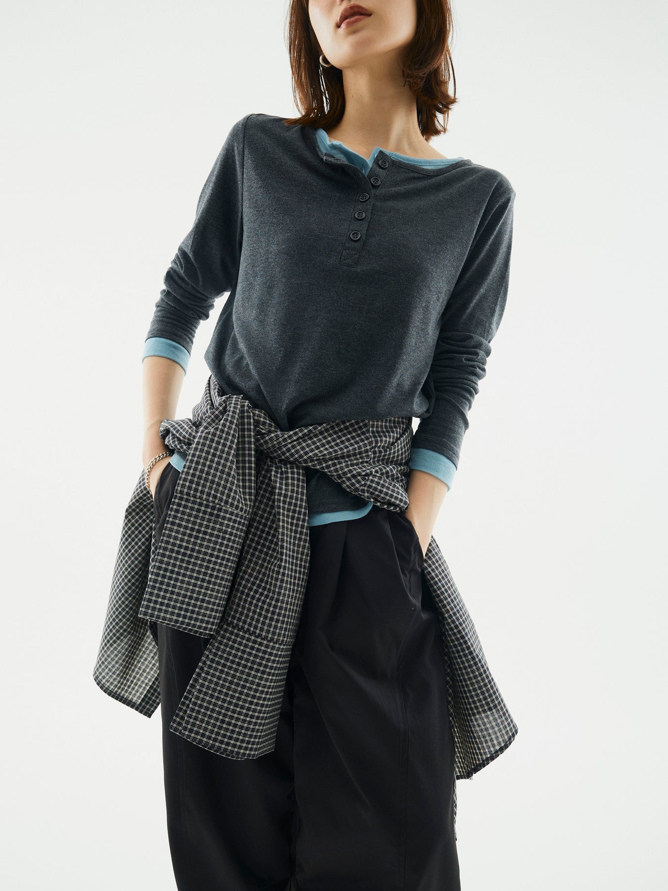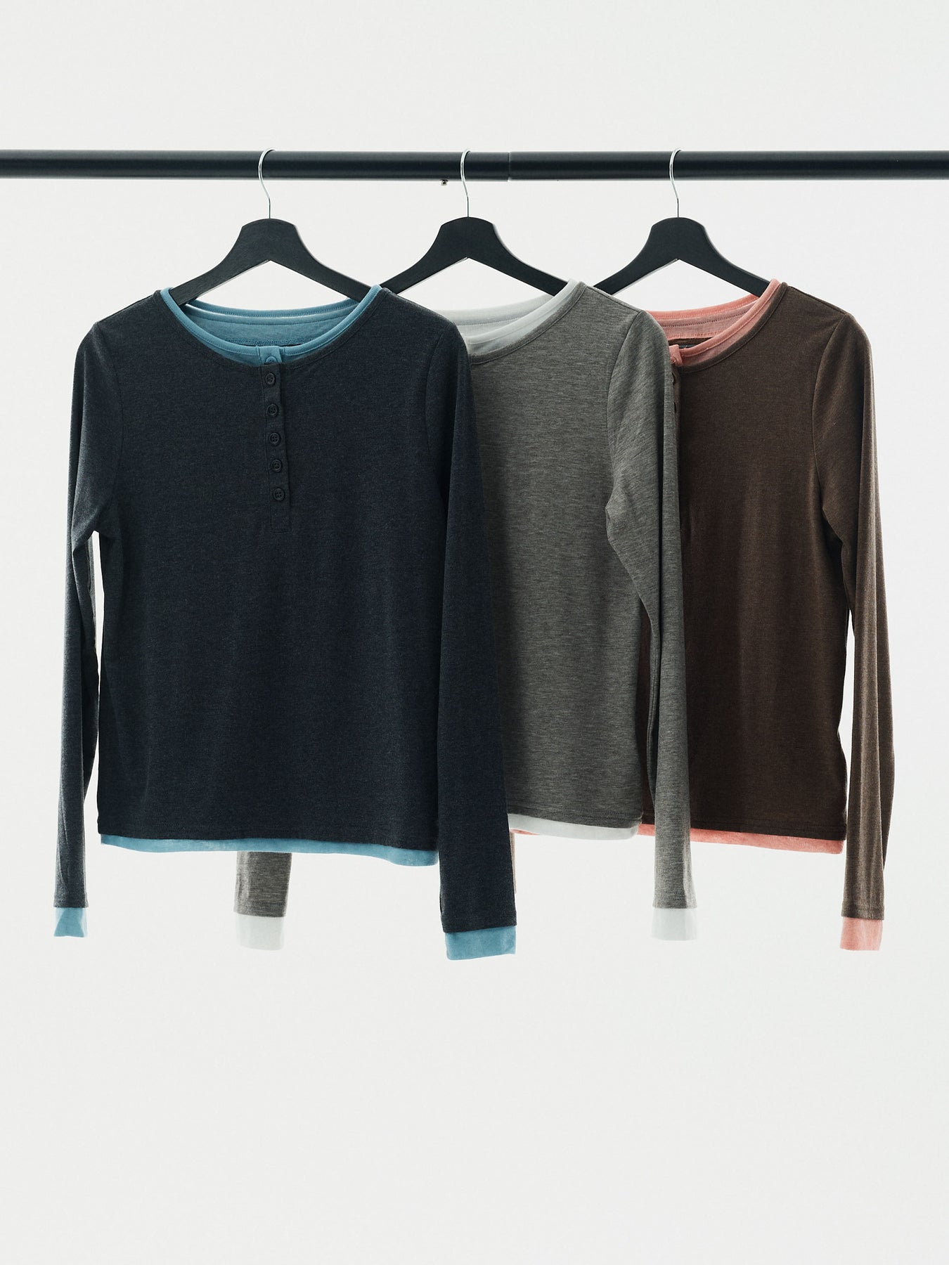 ◆ [予約]配色レイヤードヘンリーネックトップス