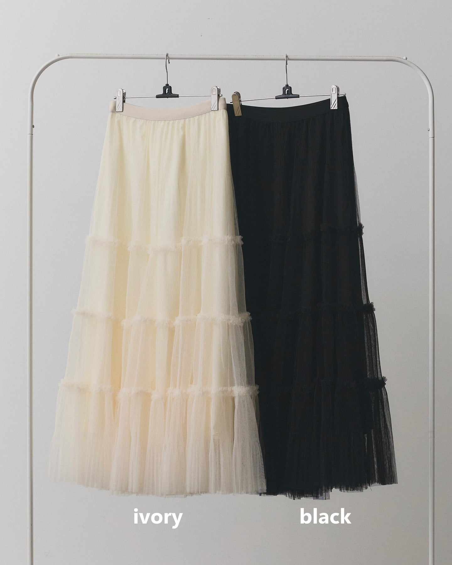 繊細なチュール素材をふんだんに使用したティアードフレアスカート。段ごとに切り替えられたティアードデザインが立体感を生み出し、歩くたびにふわりと揺れるシルエットがフェミニンな印象を与えます。軽やかなチュールの透け感がシーズンムードを高めつつ、ウエストはゴム仕様でストレスフリーな穿き心地を実現。シンプルなトップスと合わせるだけでスタイリングが完成し、ニットやシャツを合わせれば甘さを抑えた大人の着こなしにも。特別感のあるデザインながらデイリーにも取り入れやすい、主役級の一枚です。