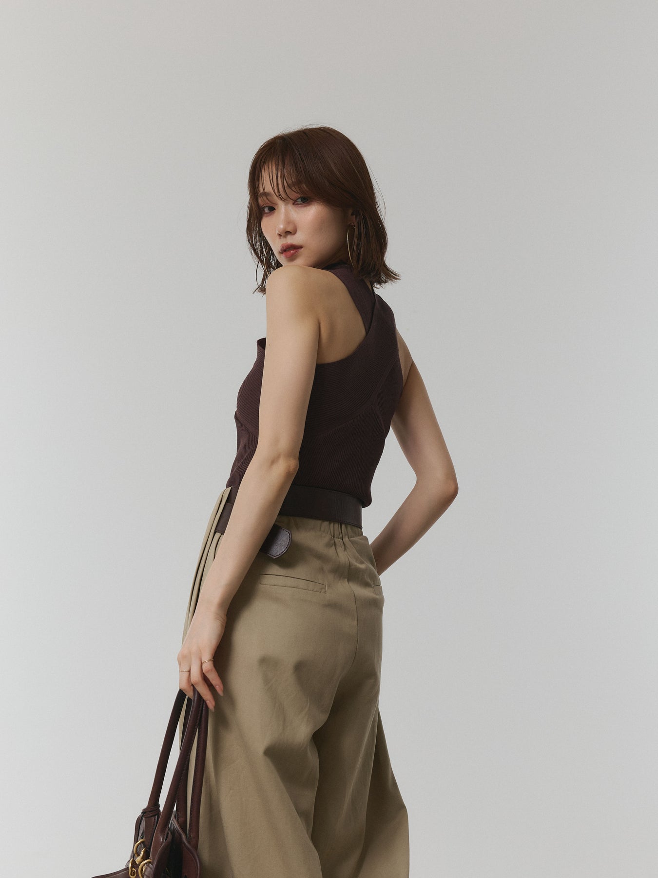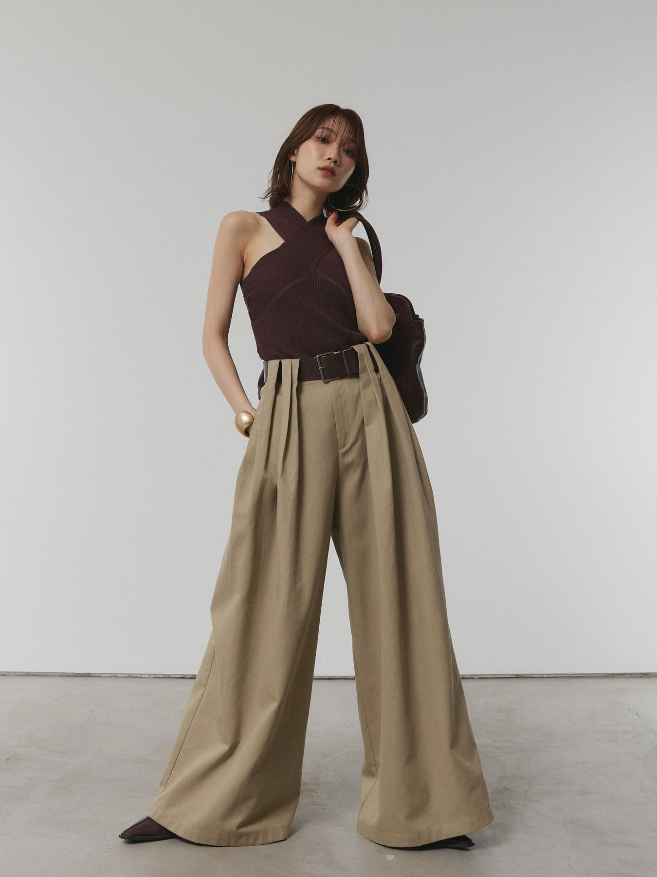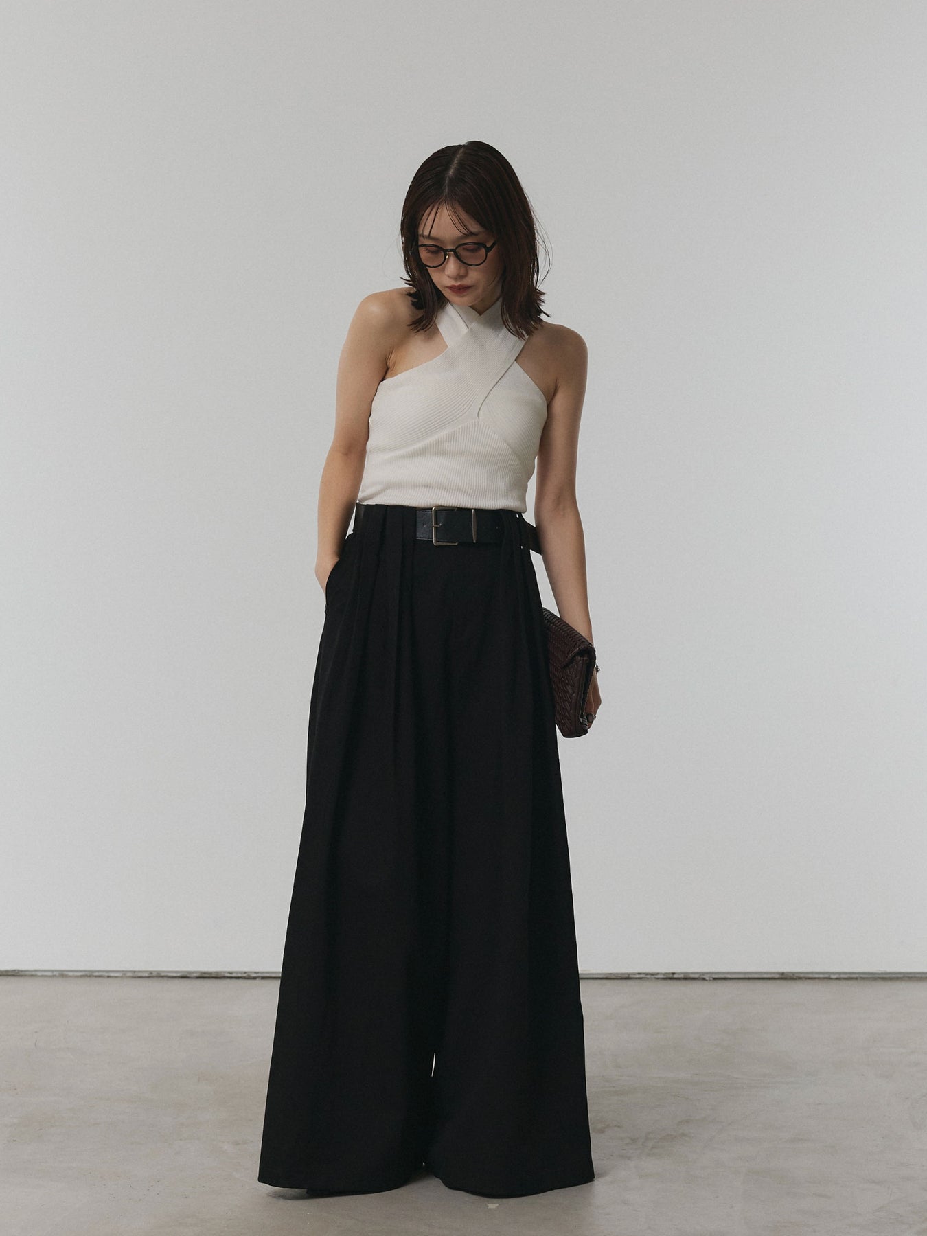 【Allure】[SET]クロスリブニットタンクトップ+ベルト付ダブルループワイドパンツ(2set)
