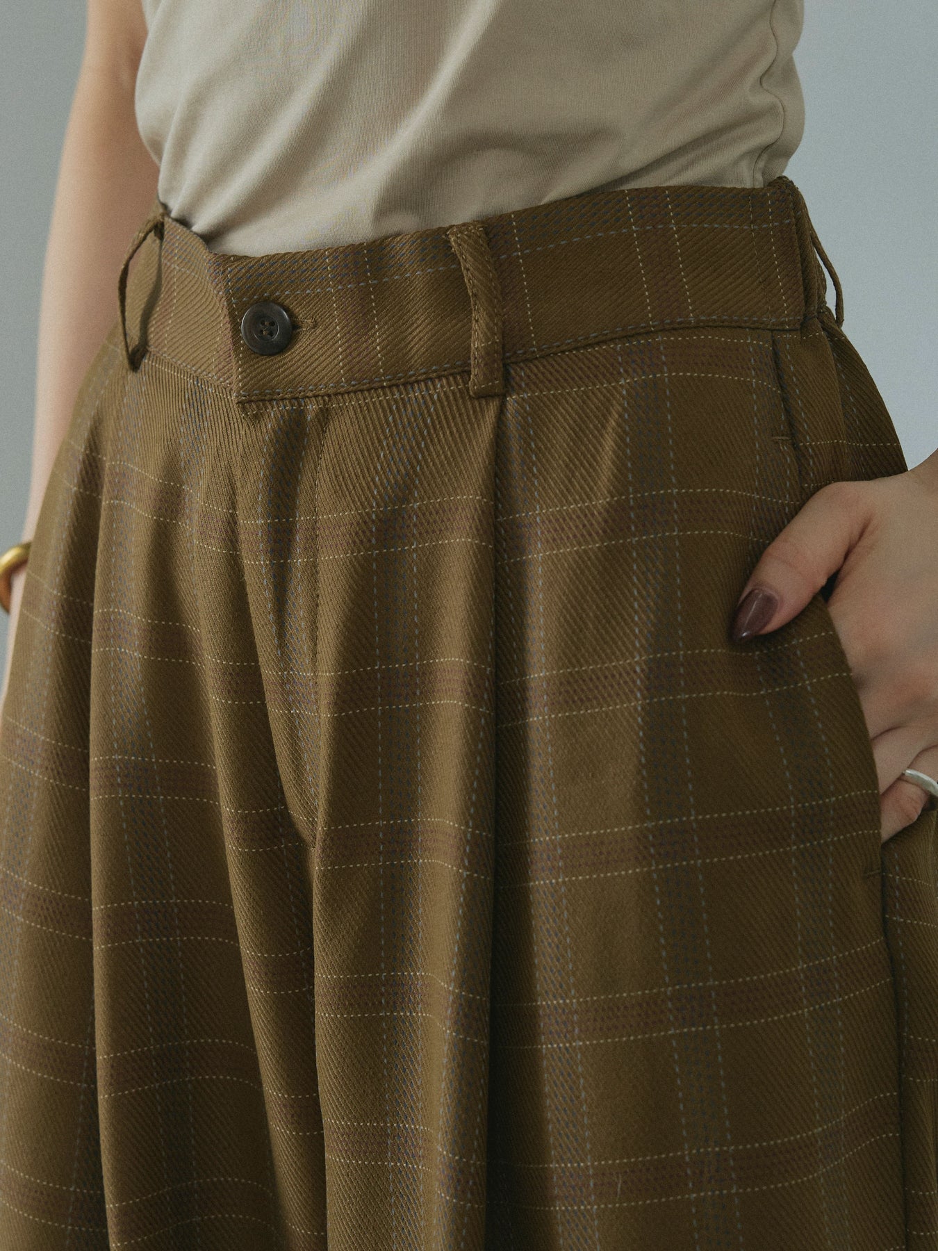 クラシカルなチェック柄と杢調の生地感が上品な印象を与えるタックパンツ。 フロントに施されたタックが立体感を生み、脚のラインをすっきりと見せてくれます。 程よくゆとりのあるシルエットで動きやすく、リラックス感のある穿き心地が魅力。 トップスをインしたスタイルもきれいに決まり、通勤から休日まで幅広いシーンで活躍します。 同素材のシャツジャケットと合わせたセットアップコーデもおすすめです。