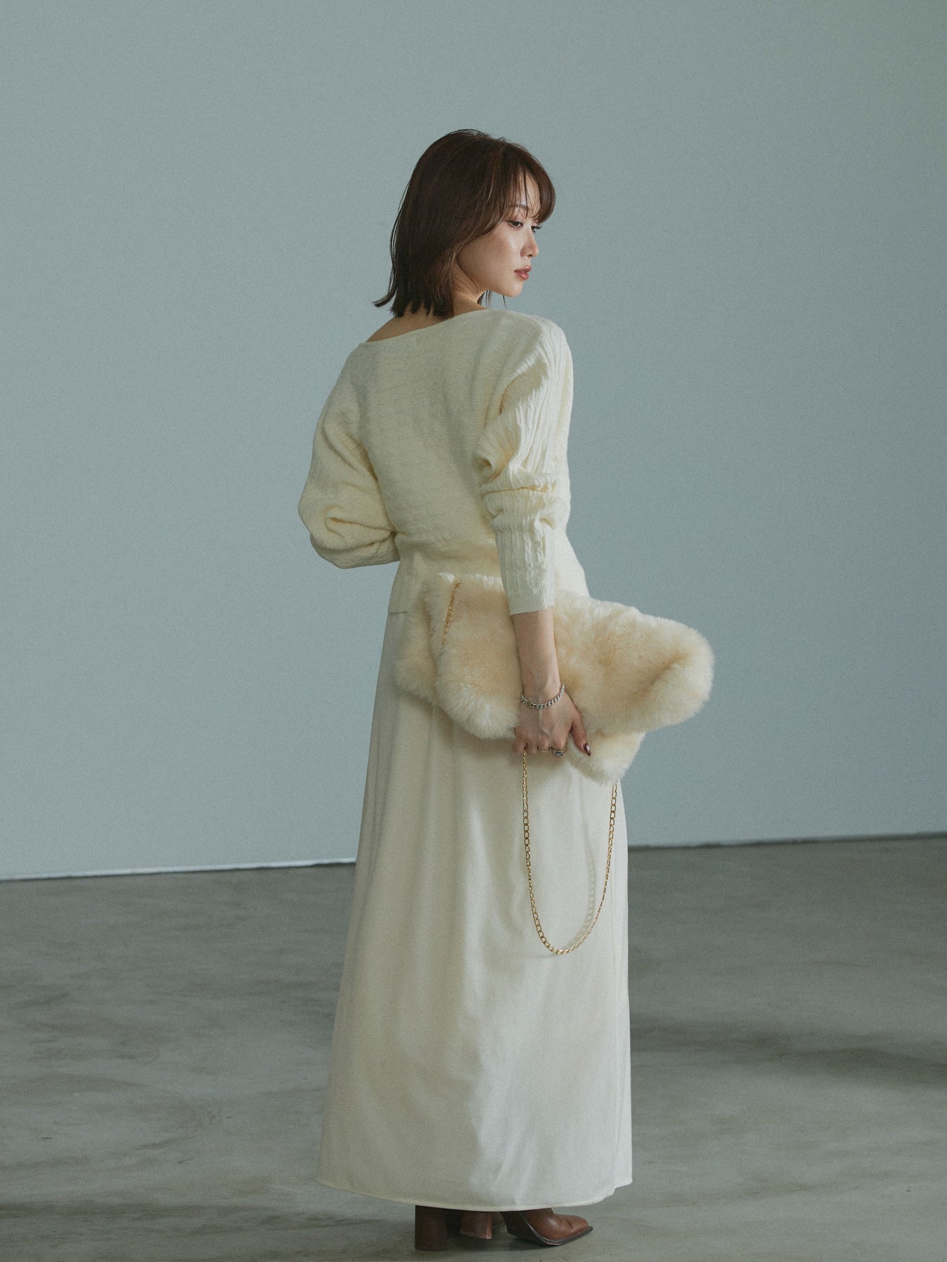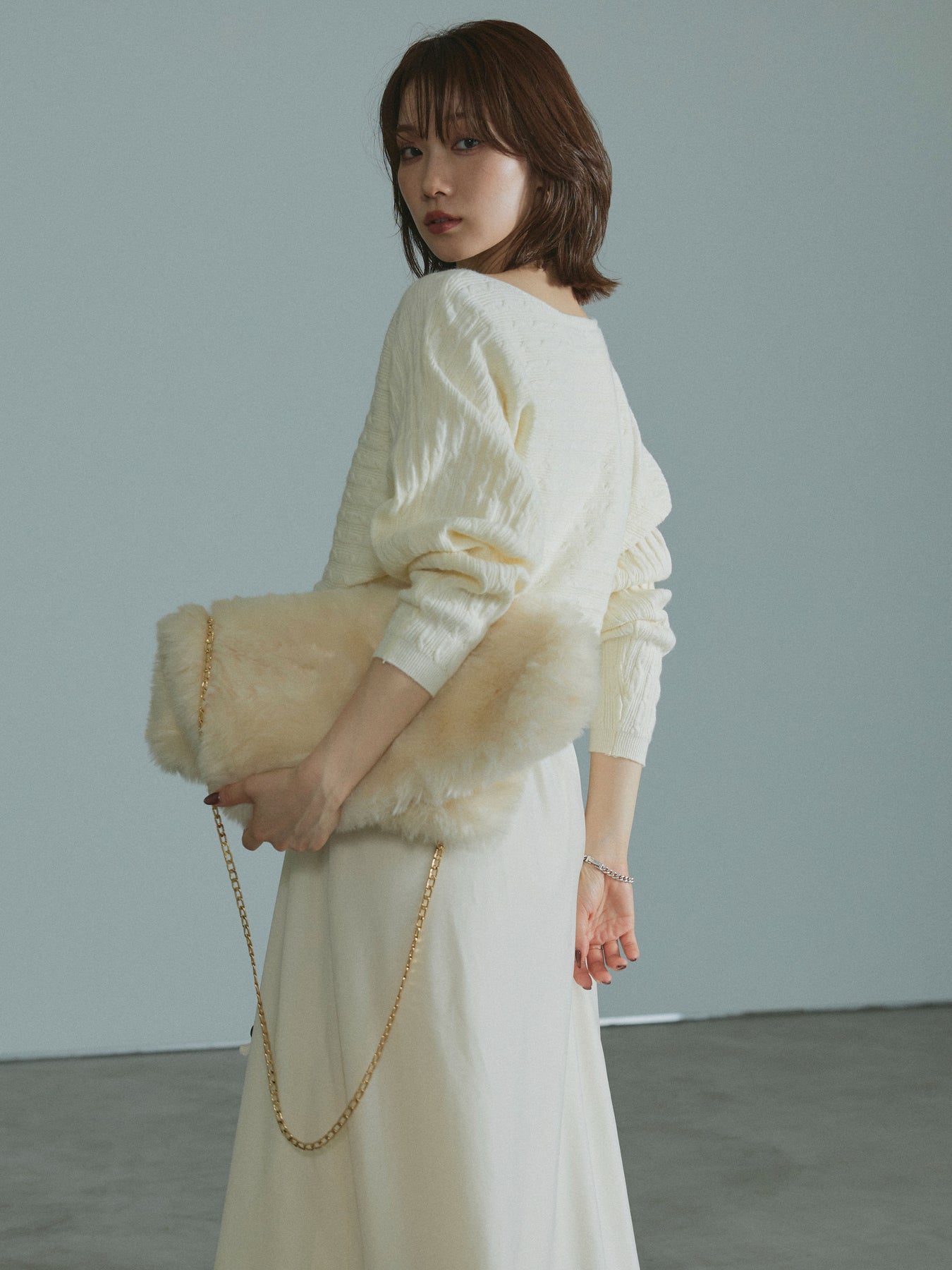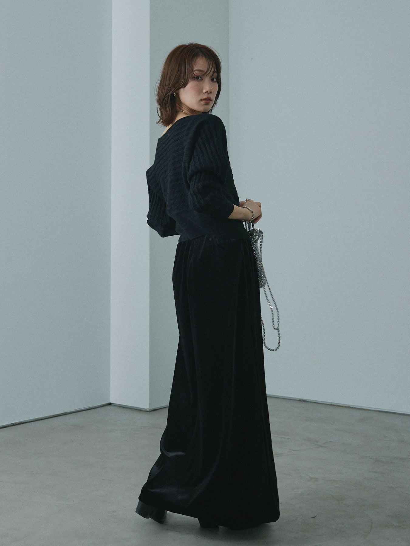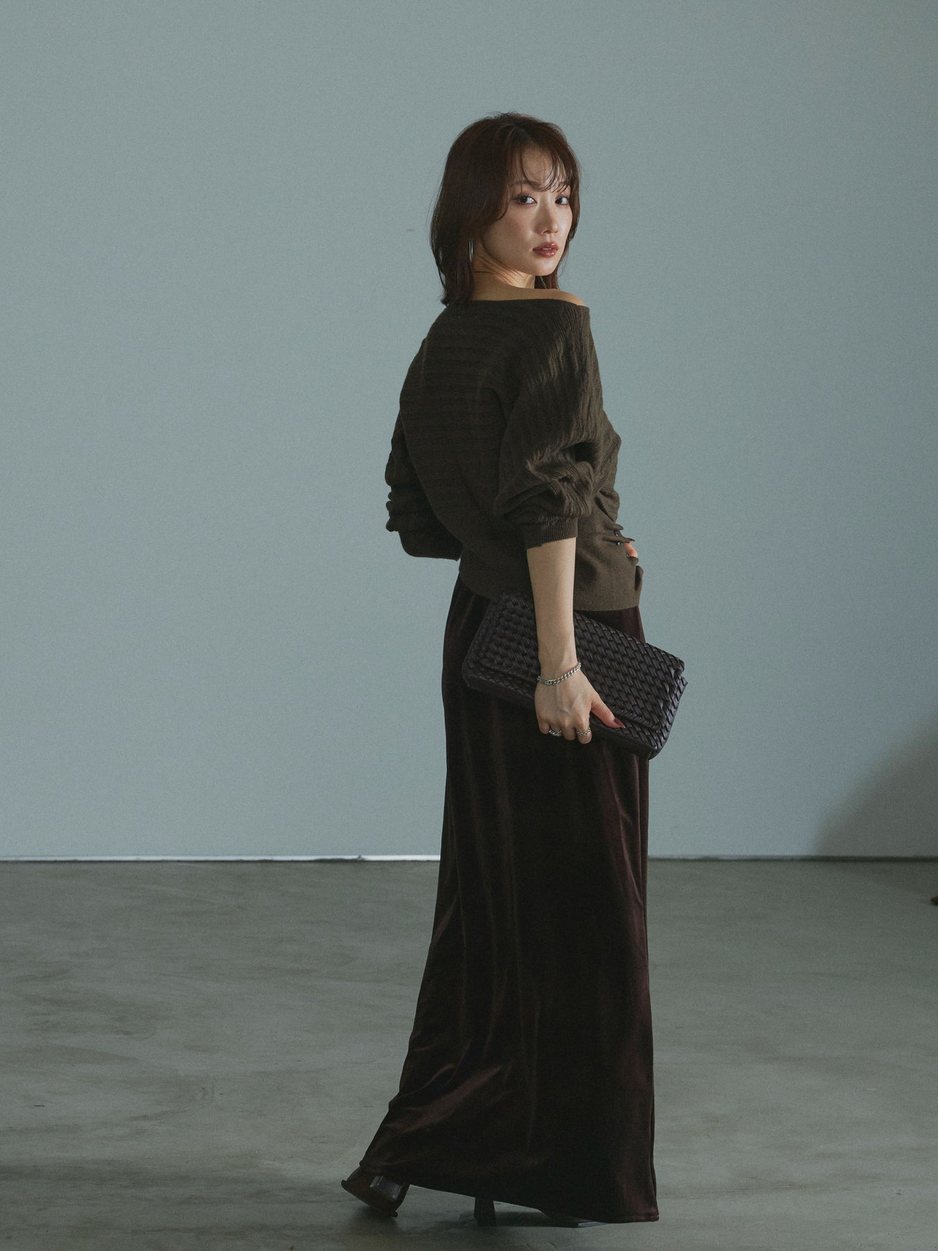 【Allure】[SET]ワンショルケーブル編みニット+ベロアナロースカート(2set)