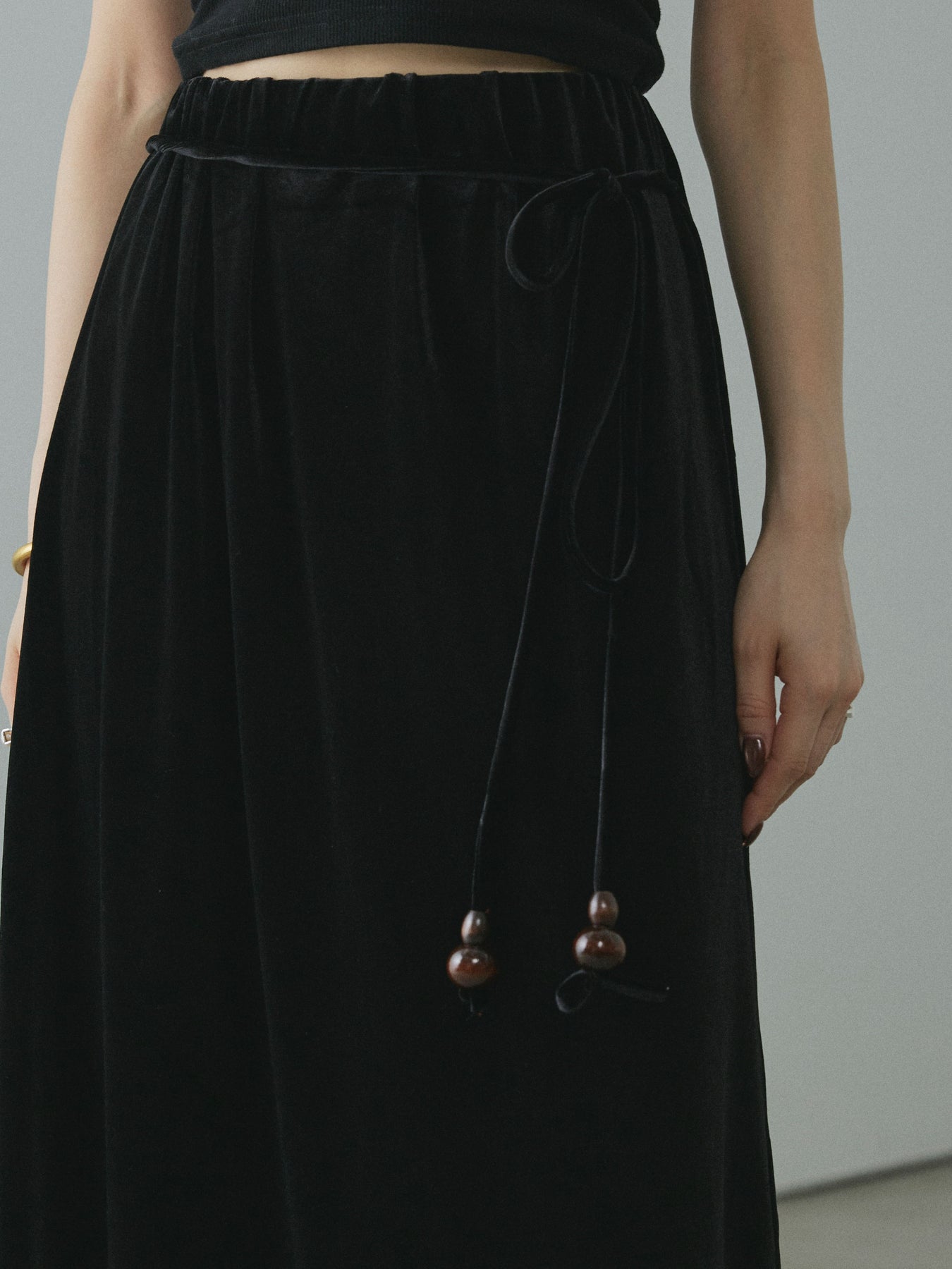 上品な光沢感が魅力のベロア素材を使用したナロースカート。 滑らかな肌触りと落ち感のあるシルエットが、歩くたびにエレガントな印象を与えます。 ウエストにはコードベルトを施し、さりげないアクセントをプラス。 シンプルながらも素材の存在感が際立ち、ニットやブラウスなど様々なトップスと好相性です。 シーズンムードを高めるベロアの質感で、デイリーにも特別な日にも取り入れやすい一枚。 ※ボトムス、キャミソール(インナー)以外の商品は一律でインナーは付属していません。