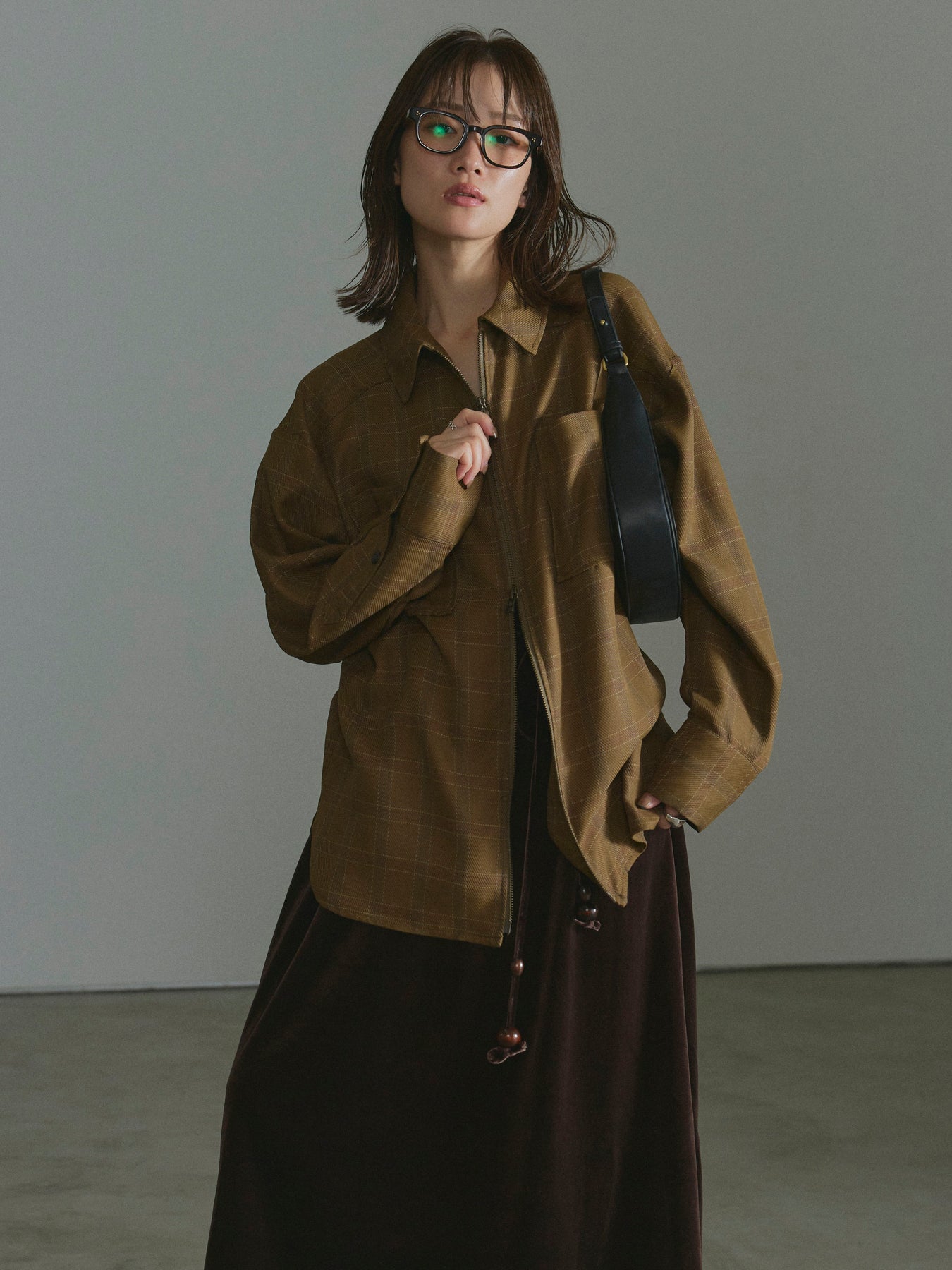 【Allure】[SET]杢チェックZIPシャツジャケット+ベロアナロースカート(2set)