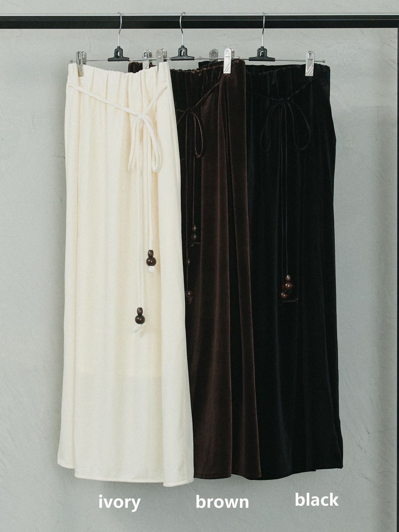 上品な光沢感が魅力のベロア素材を使用したナロースカート。 滑らかな肌触りと落ち感のあるシルエットが、歩くたびにエレガントな印象を与えます。 ウエストにはコードベルトを施し、さりげないアクセントをプラス。 シンプルながらも素材の存在感が際立ち、ニットやブラウスなど様々なトップスと好相性です。 シーズンムードを高めるベロアの質感で、デイリーにも特別な日にも取り入れやすい一枚。 ※ボトムス、キャミソール(インナー)以外の商品は一律でインナーは付属していません。