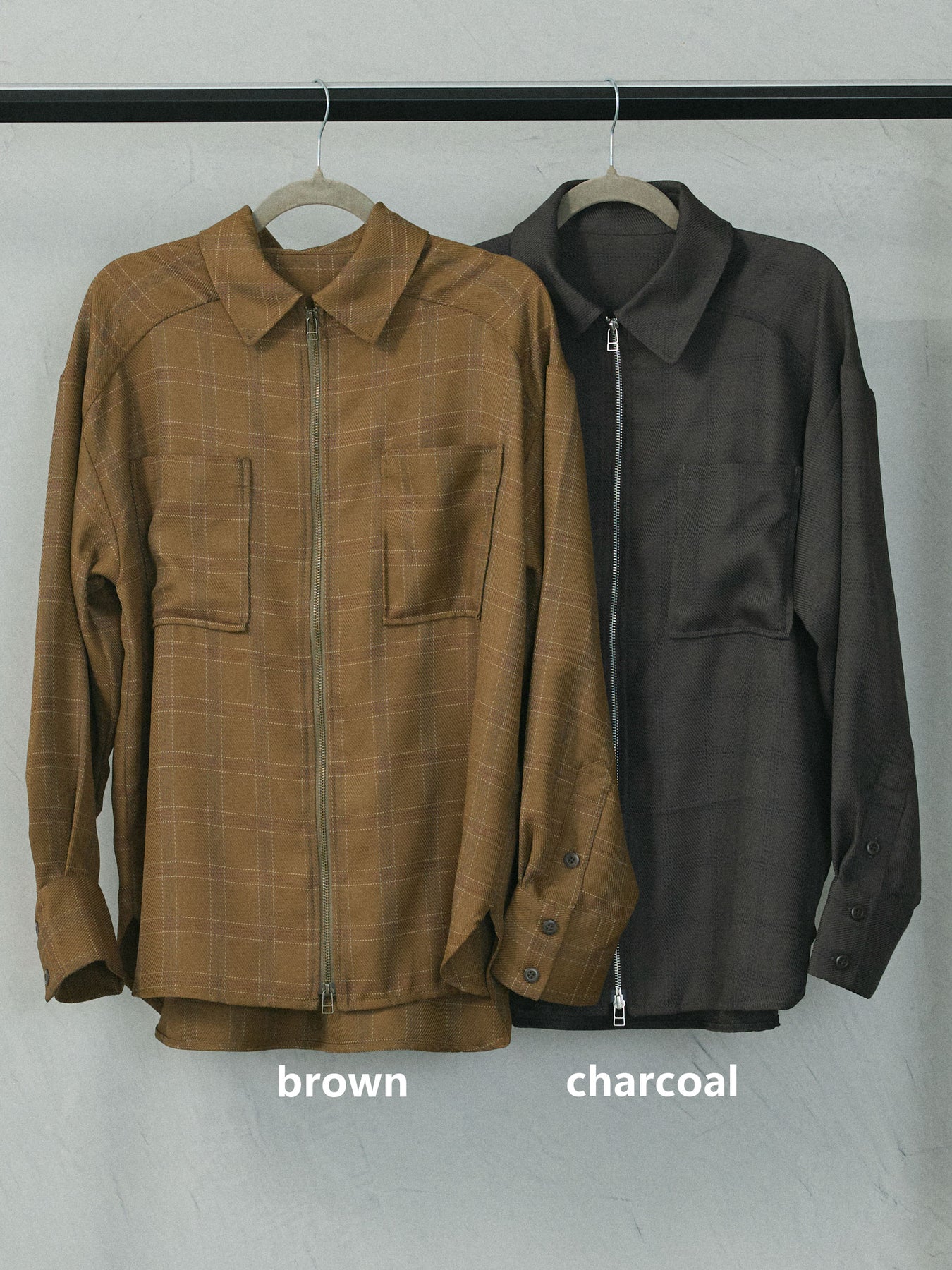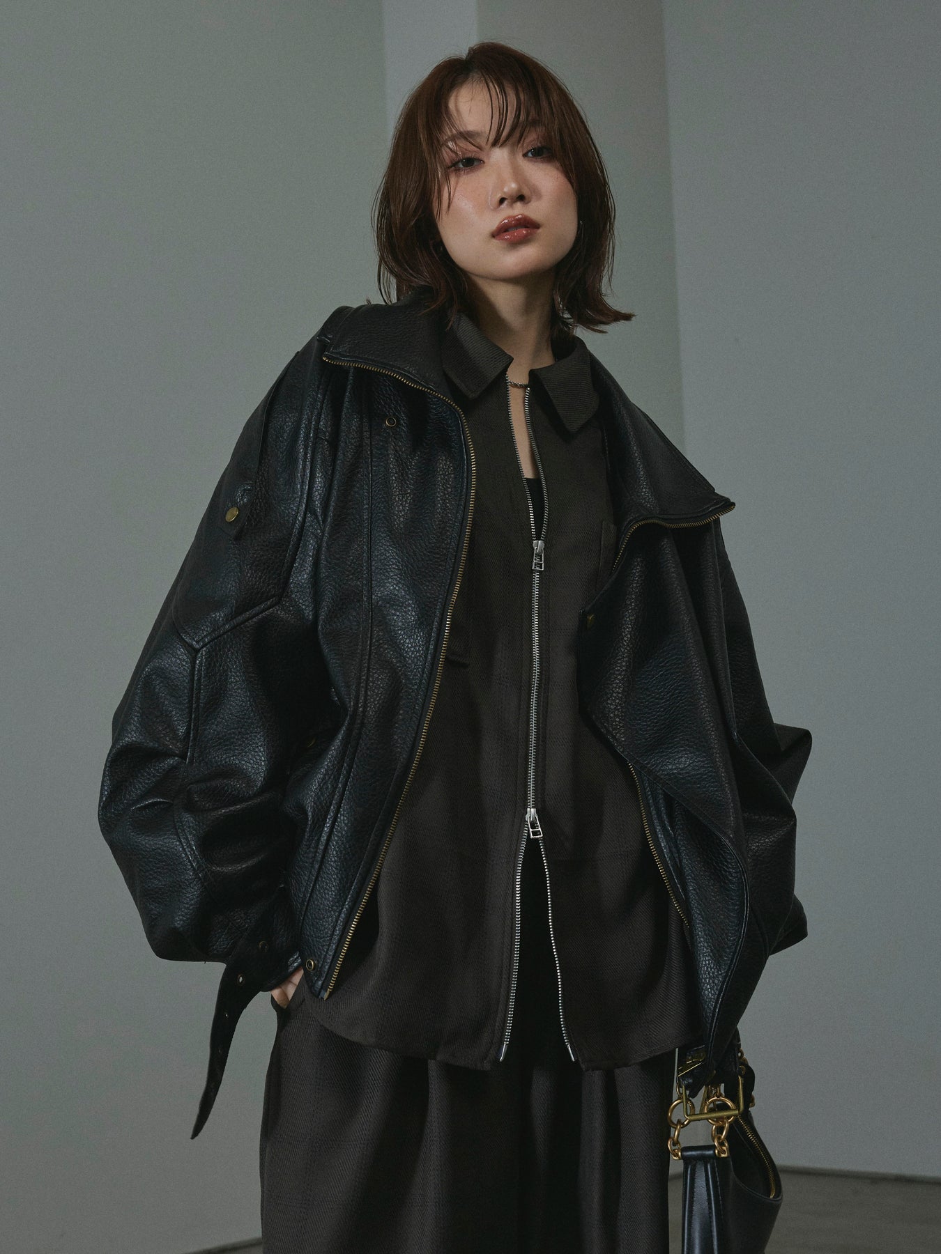 【Allure】[SET]スタンドカラーレザーブルゾン+杢チェックZIPシャツジャケット+杢チェックタックパンツ(3set)