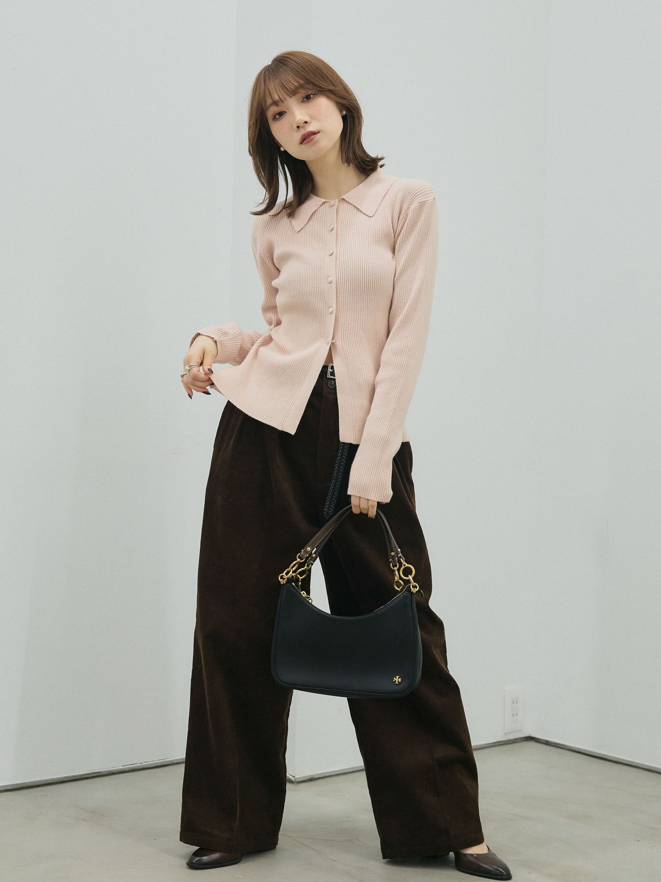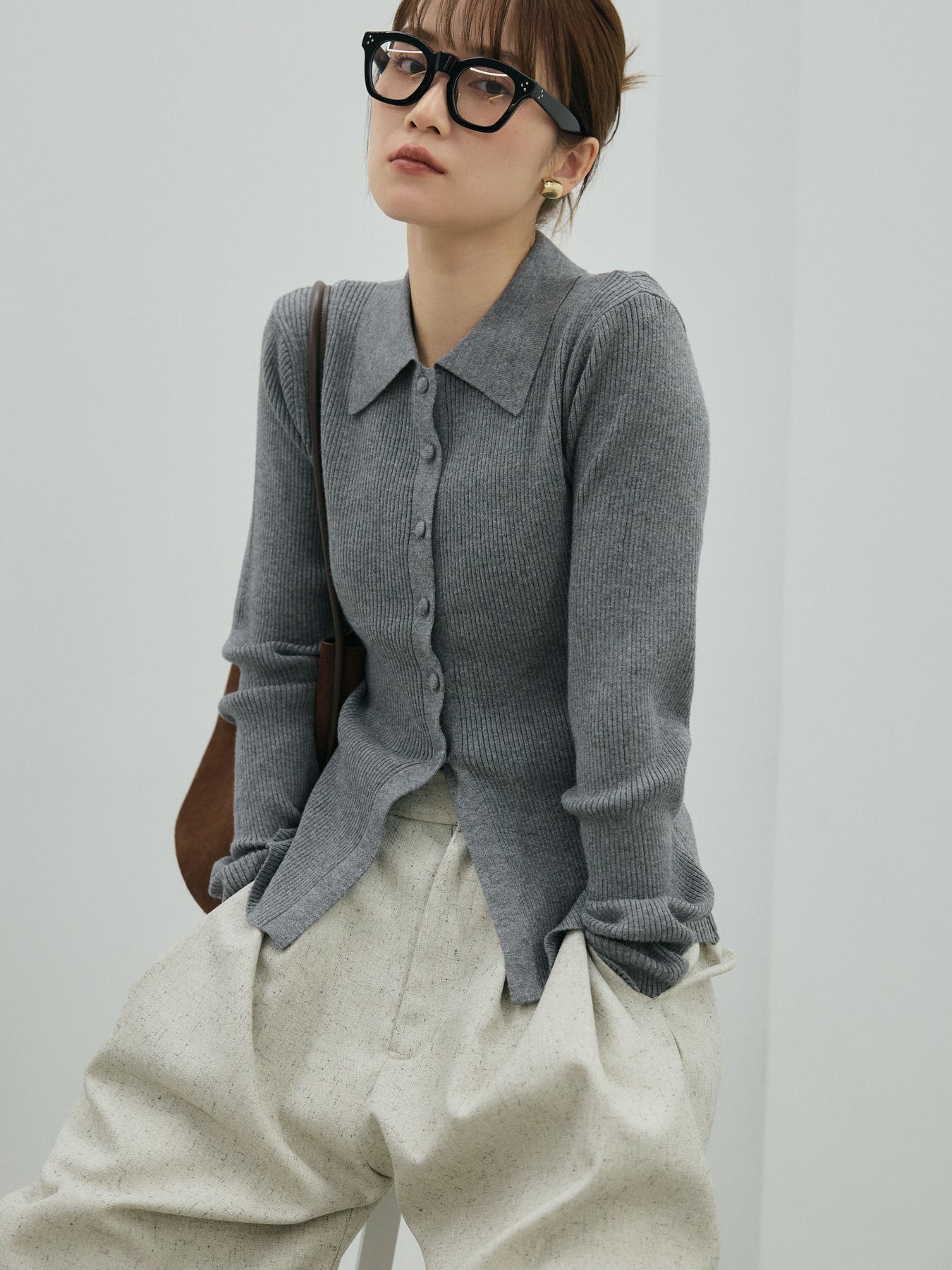 [予約]くるみボタンポロリブニットトップス + [予約]くるみボタンポロリブニットトップス