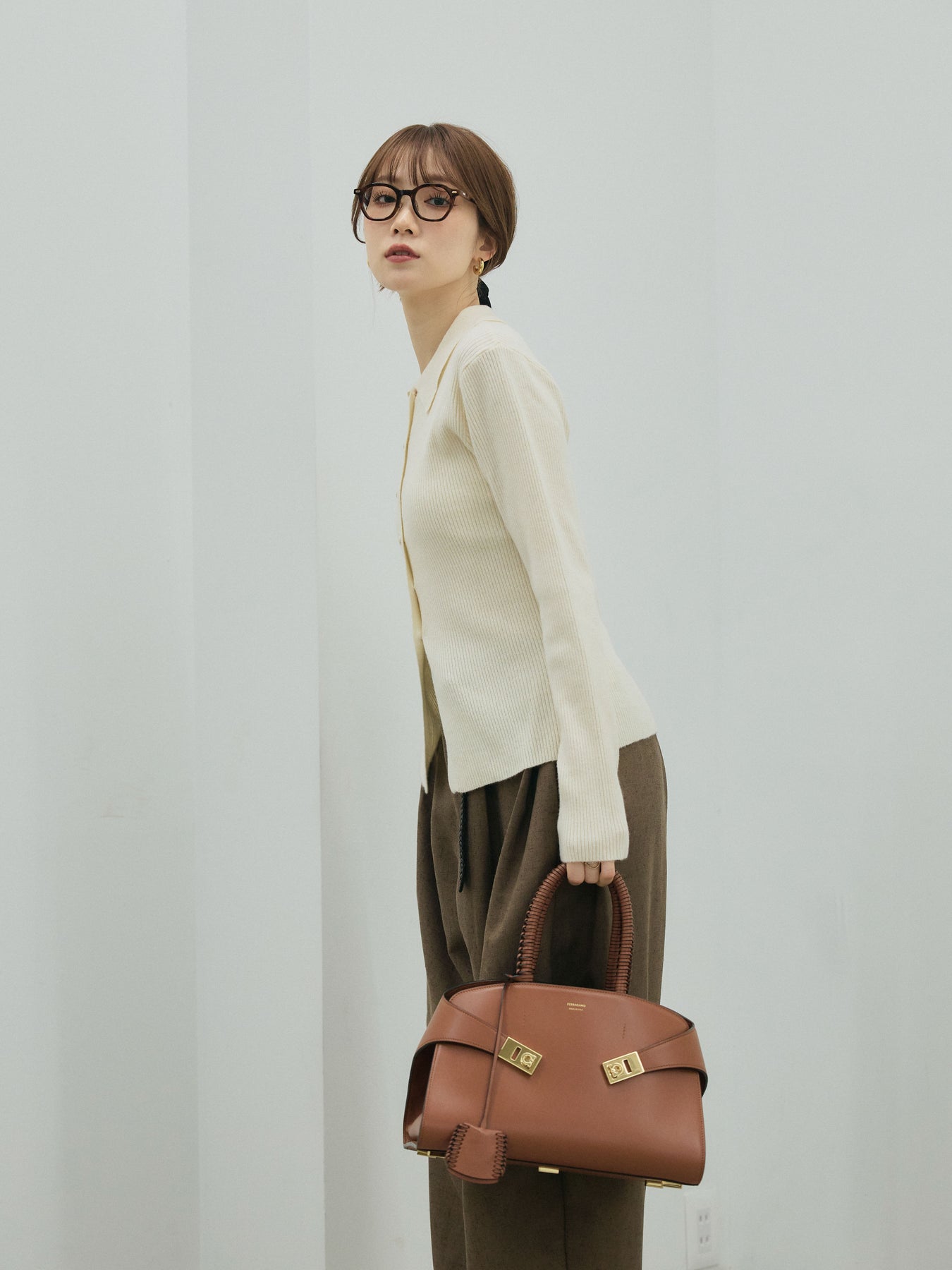 程よくゆるさのあるシルエットが魅力のニットアップ。 ポロデザインの襟元にレザーベルトをあしらったトップスは、胸元のディテールがアクセントになり、1枚でも映える主役アイテム。 パンツはストンと落ちるワイドシルエットで、気になるラインを拾わずリラックス感のある穿き心地です。 セットアップでの着用はもちろん、それぞれ単品でも着まわせる万能アイテムです。