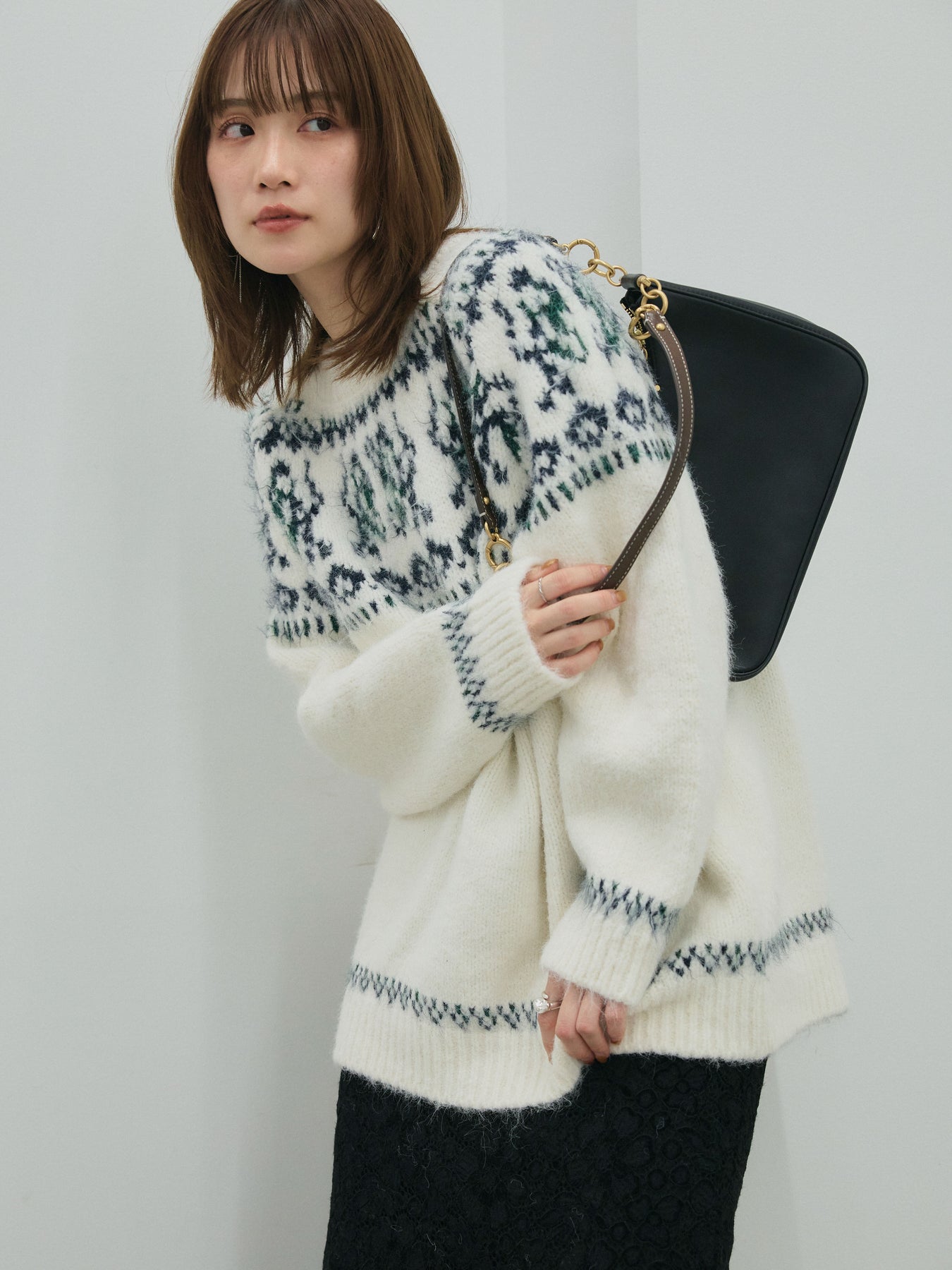 ◆ [予約]ノルディック柄モックネックオーバニットプルオーバー
