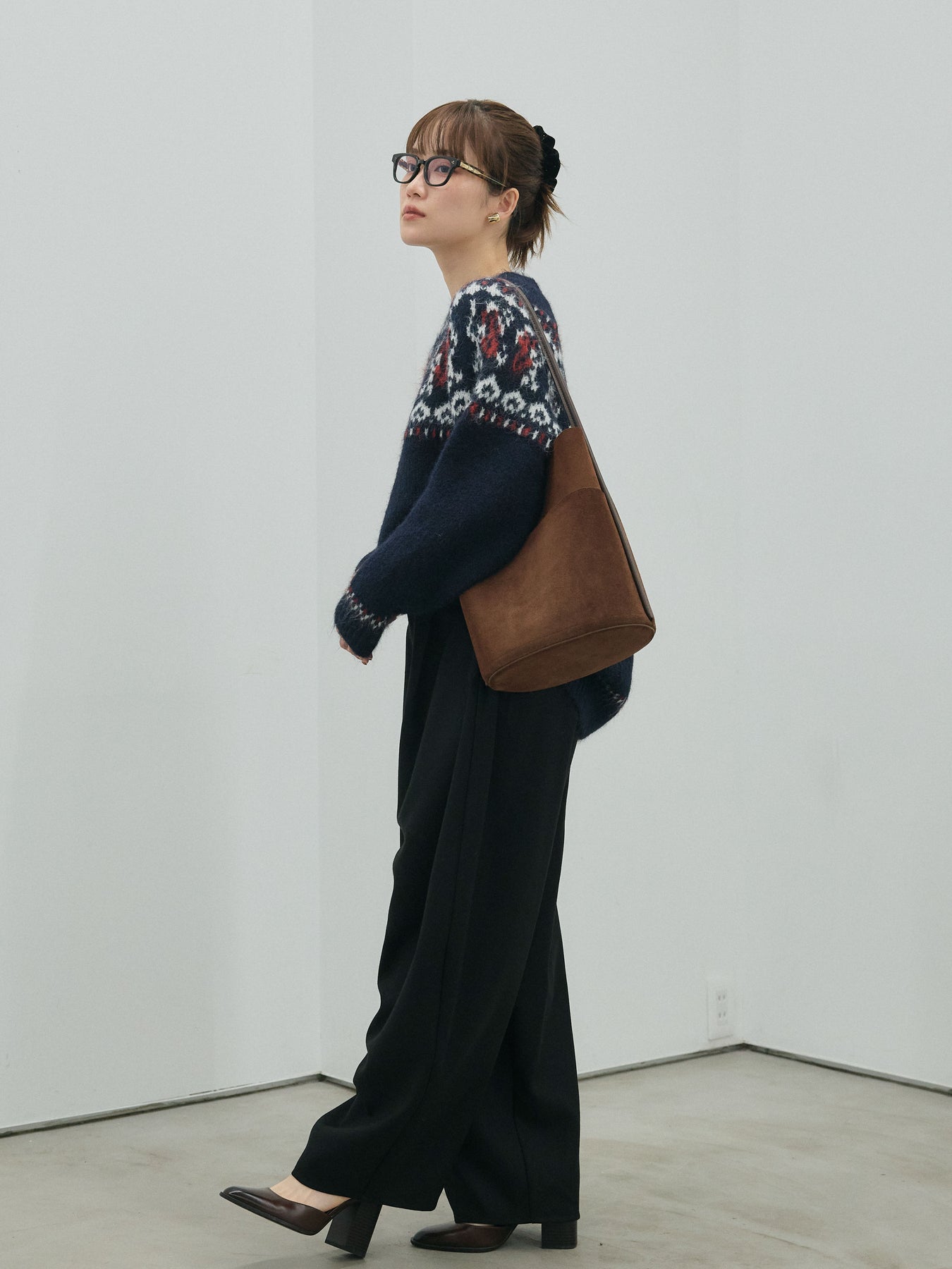 【Allure】[SET]ノルディック柄モックネックオーバニットプルオーバー+モックスカルゼサイドタックコクーンパンツ(2set)