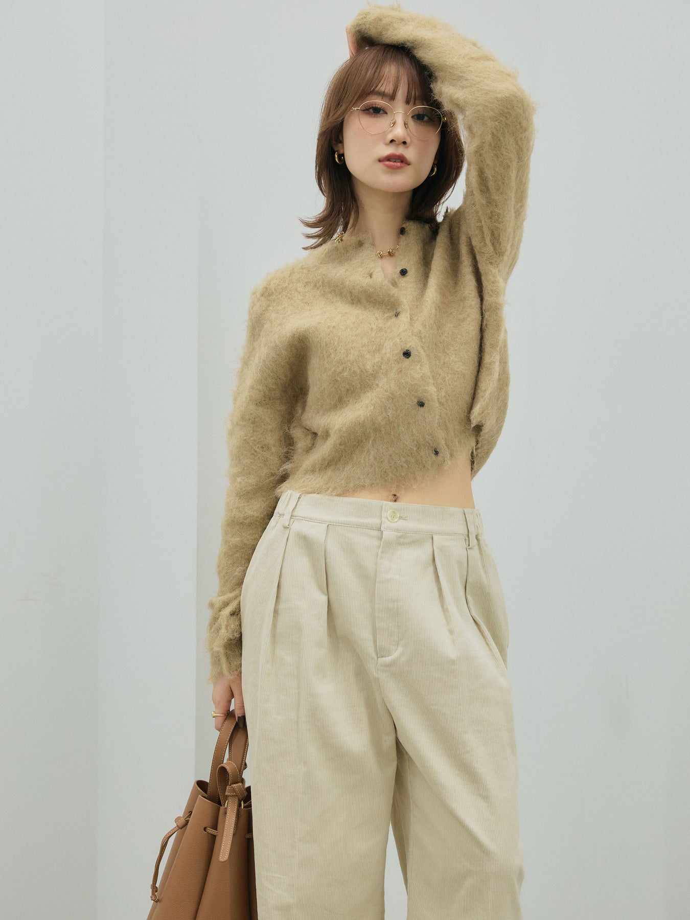 【Allure】[SET]モヘアタッチクロップドニットプルオーバー+コーデュロイタックワイドパンツ(2set)