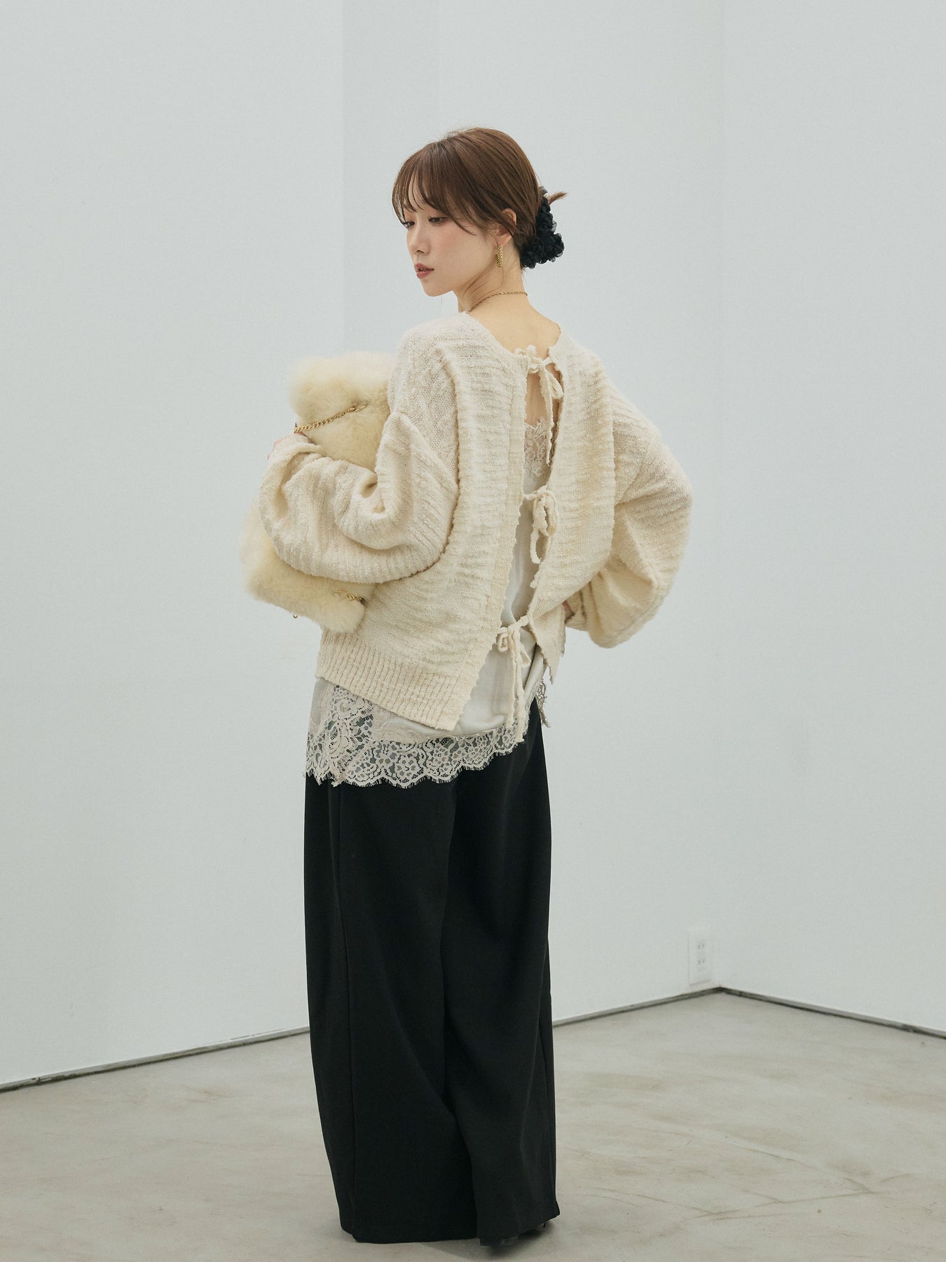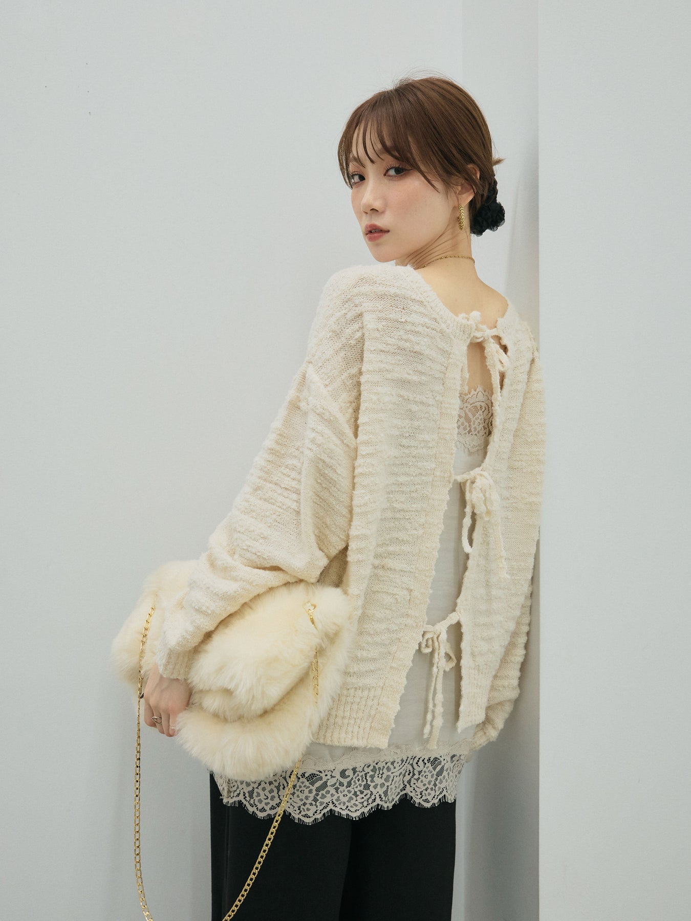 ◆ [予約]バックリボンニュアンスブークレニットプルオーバー