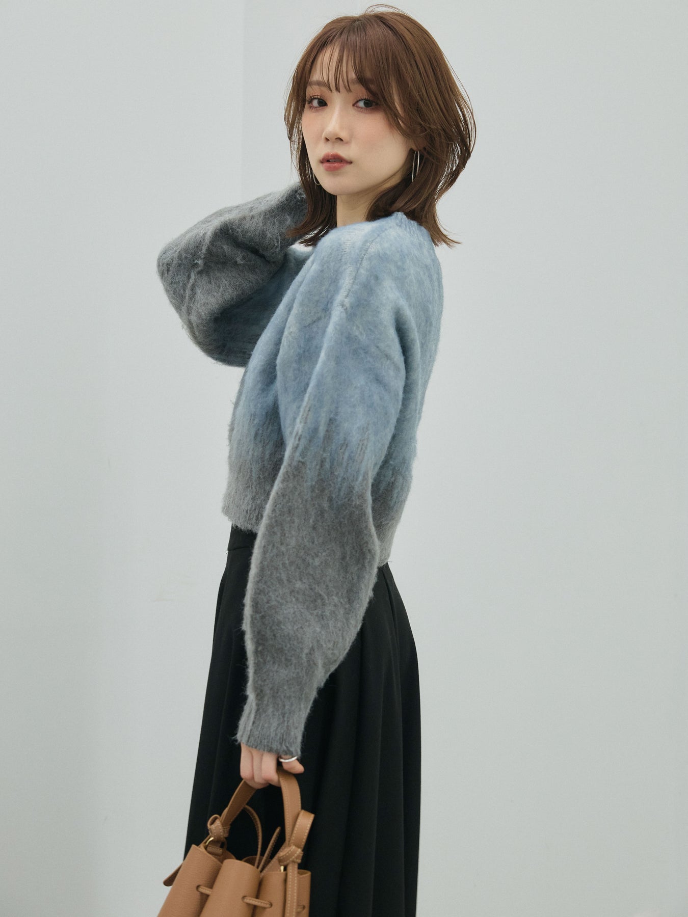 ◆ [予約]グラデージョンクロップドシャギーニットプルオーバー