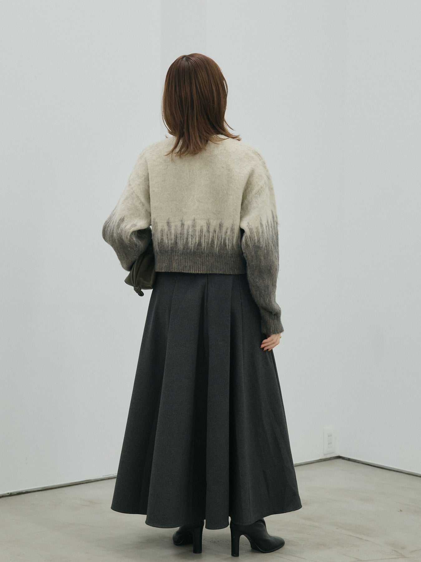 【Allure】[SET]グラデージョンクロップドシャギーニットプルオーバー+ウールタッチフレアスカート(2set)
