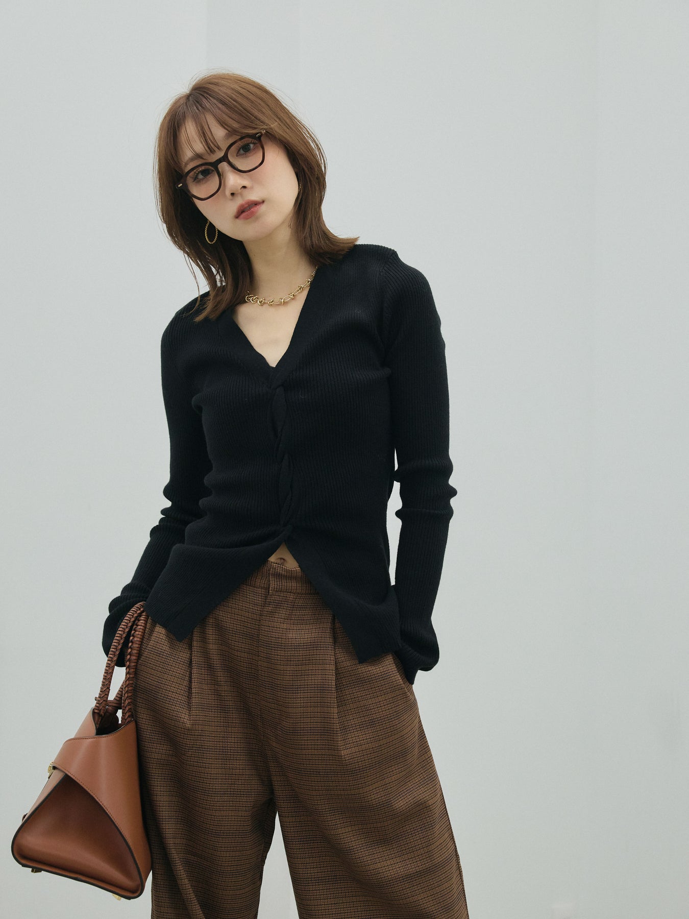 【Allure】[SET]フロントツイストリブニットトップス+フロントツイストリブニットトップス(2set)