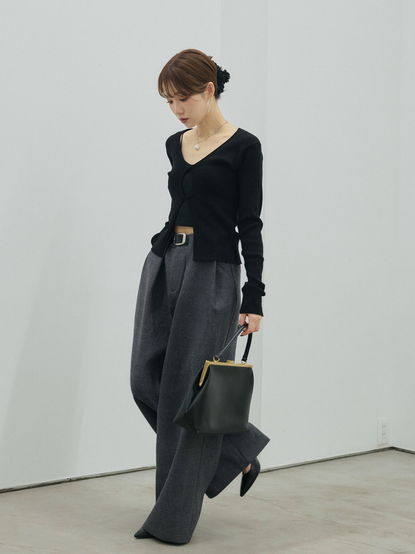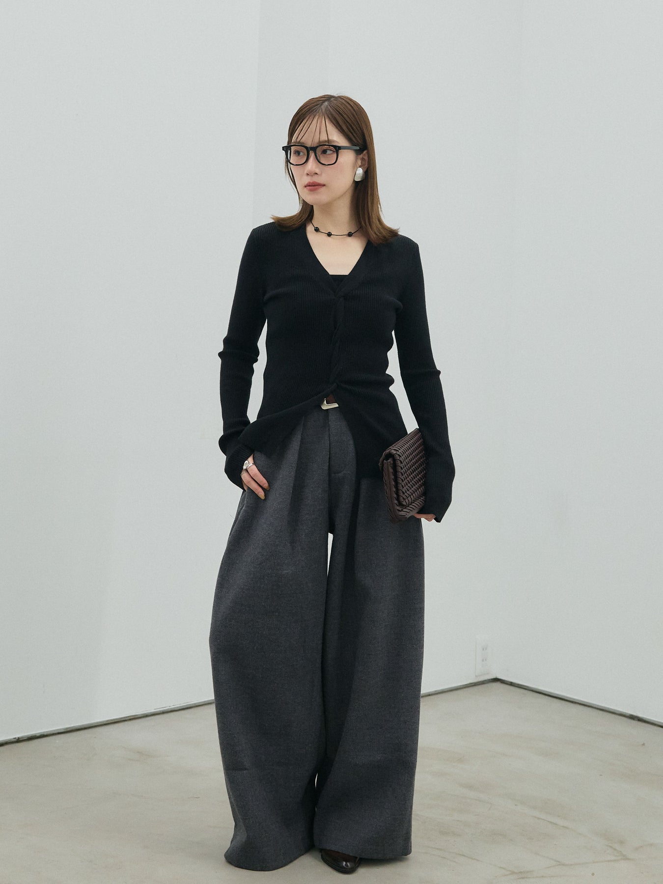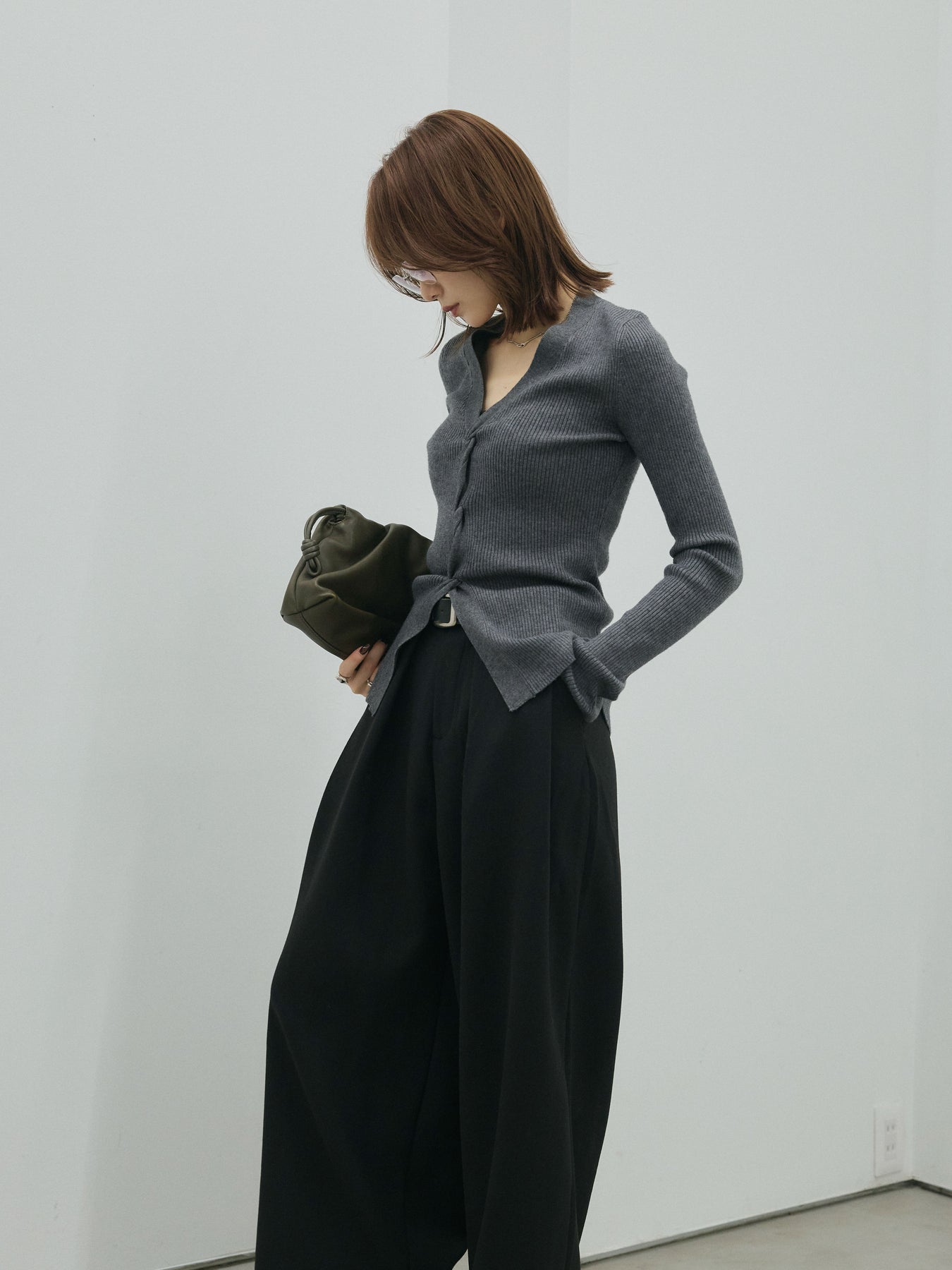 【Allure】[SET]フロントツイストリブニットトップス+ループデザインツイルワイドパンツ(2set)