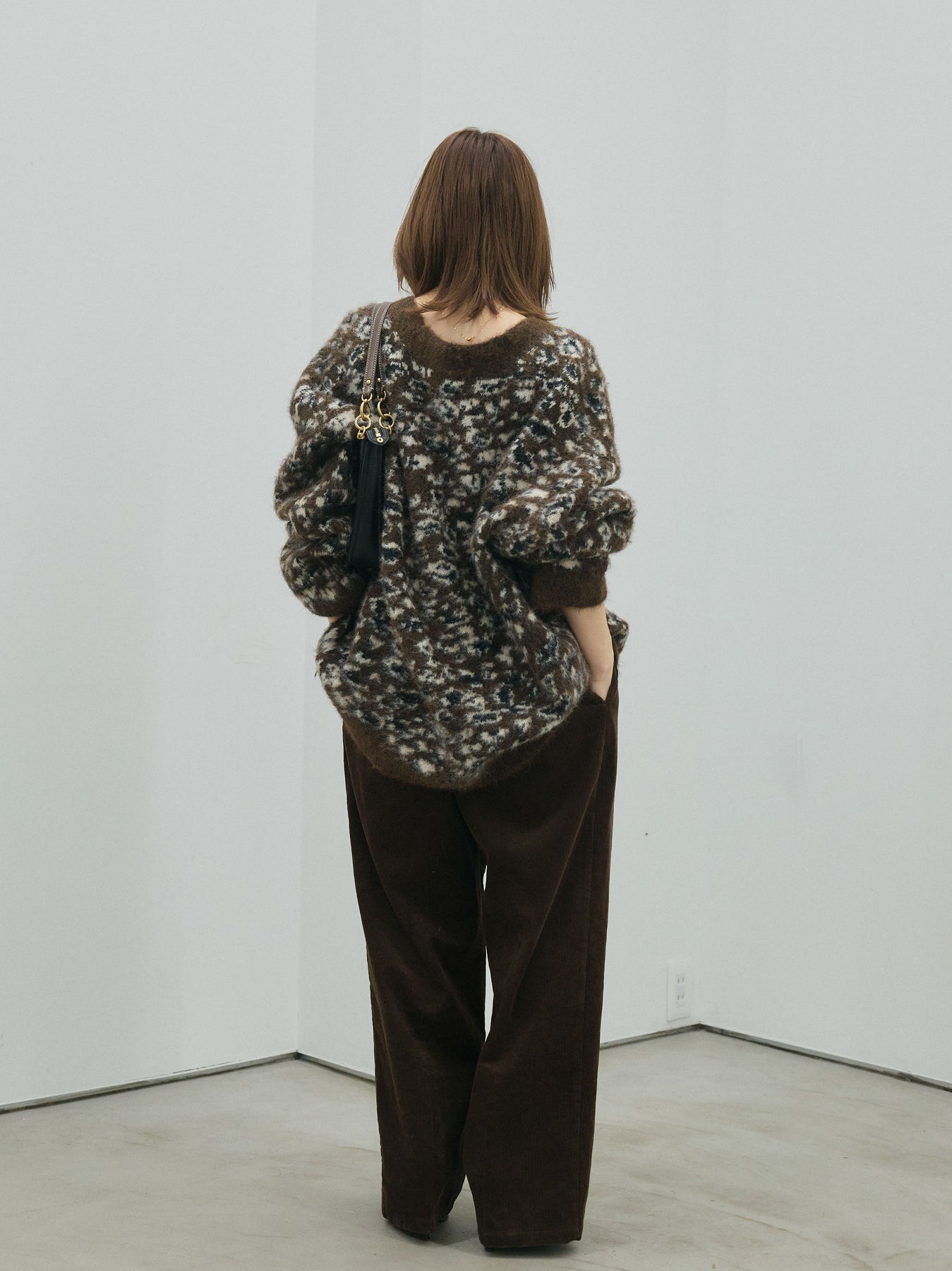 【Allure】[SET]レオパードシャギーニットカーディガン+コーデュロイタックワイドパンツ(2set)