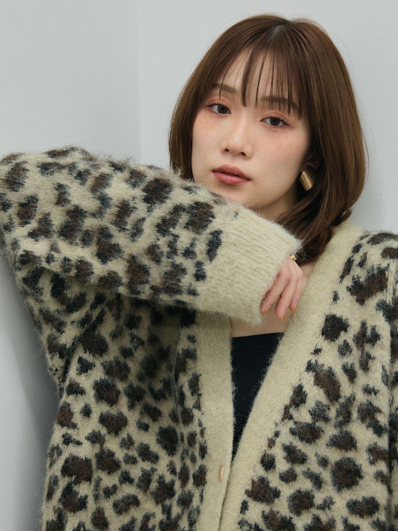 毛足のあるシャギー素材で仕立てた、存在感たっぷりのレオパード柄ニットカーディガン。ふんわりとした柔らかな風合いがシーズンムードを高めつつ、トレンド感のある柄使いで主役級のスタイリングが叶います。程よくゆとりのあるシルエットで、羽織るだけでこなれた印象に。ボタンを閉じてプルオーバー風に着ても、開けてラフに羽織ってもサマになる一着です。