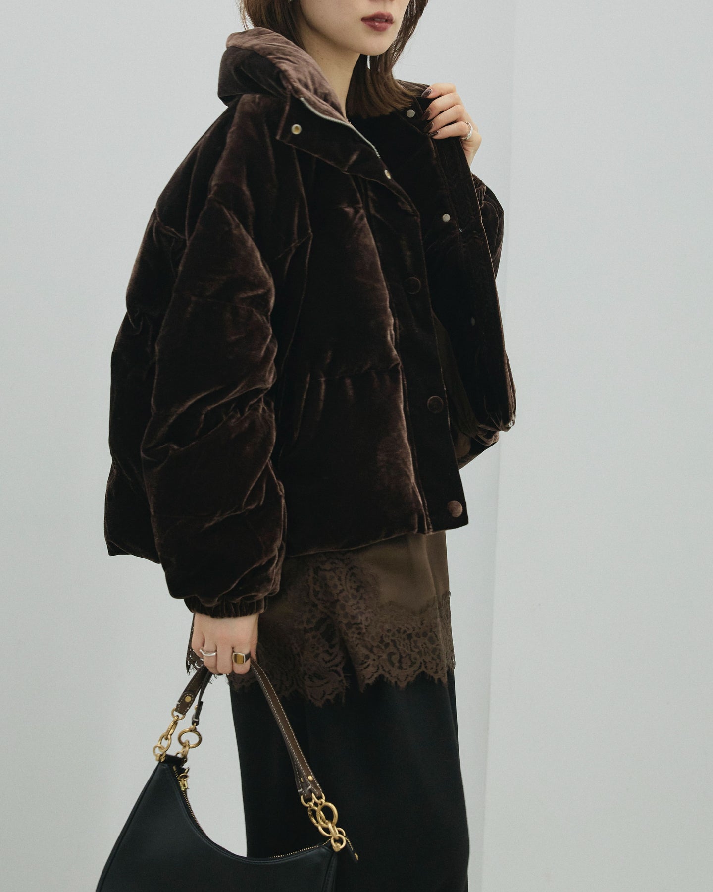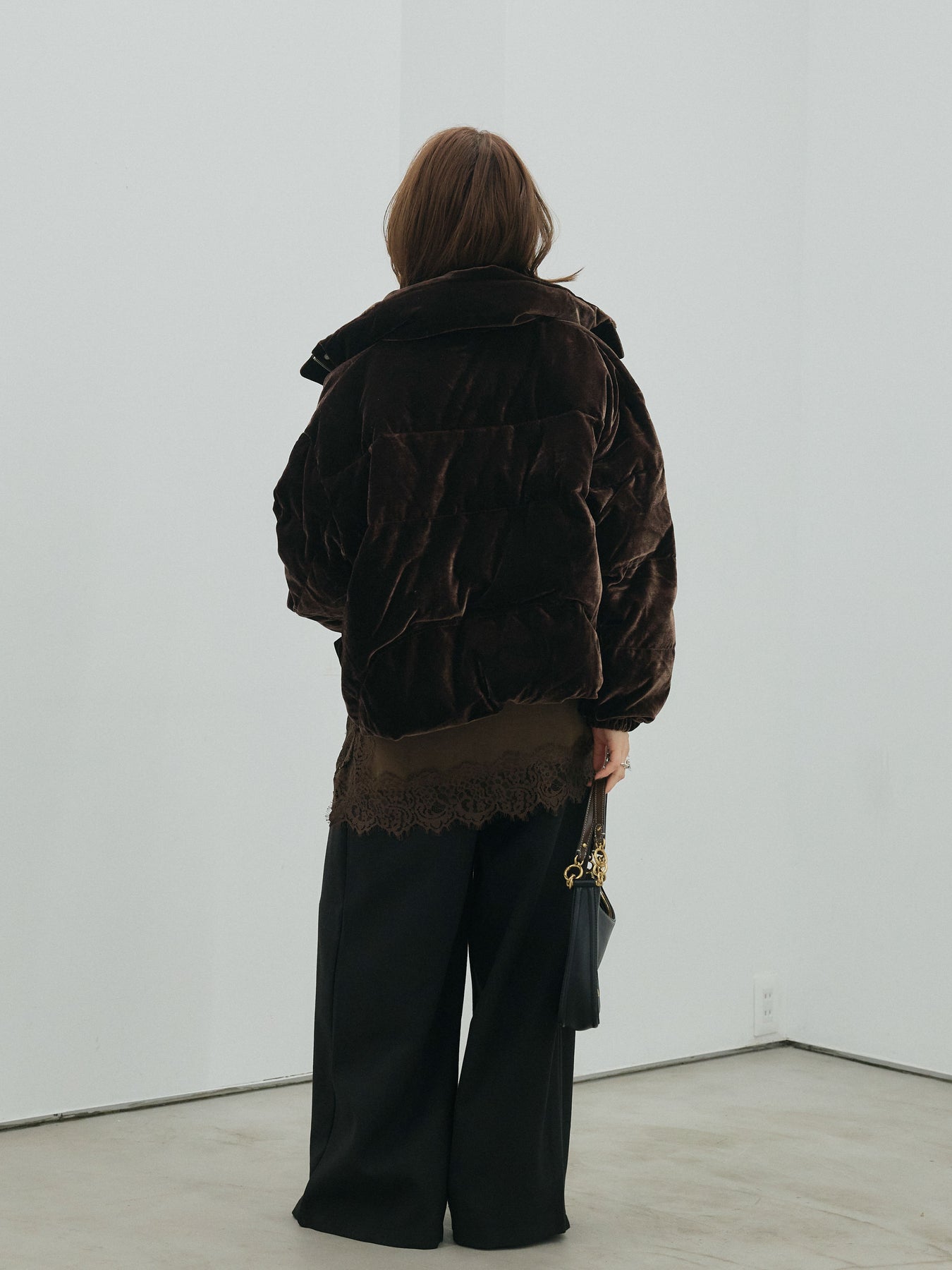 【Allure】[SET]ベロアダウンジャケット+サテンレースキャミソール+ループデザインツイルワイドパンツ(3set)
