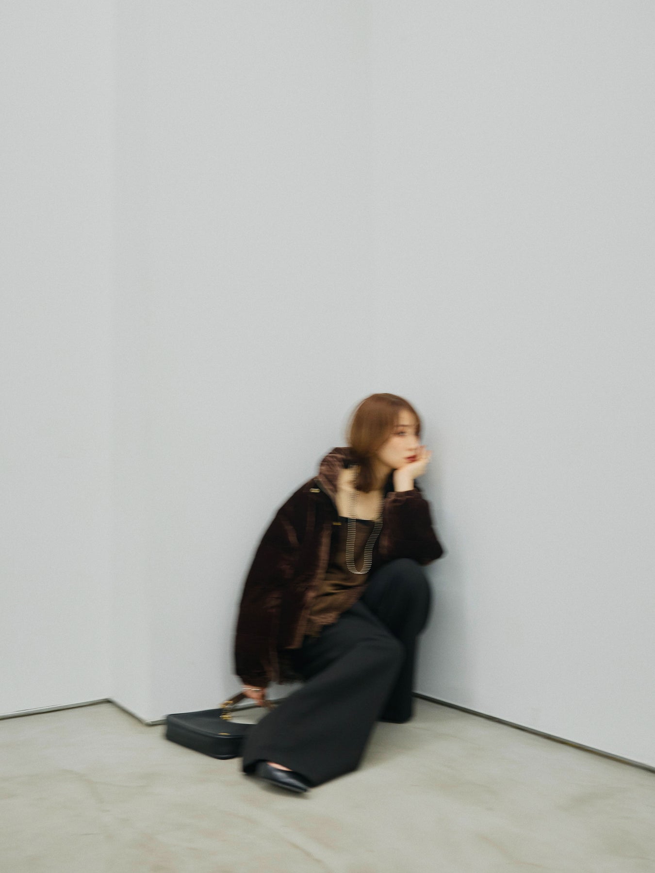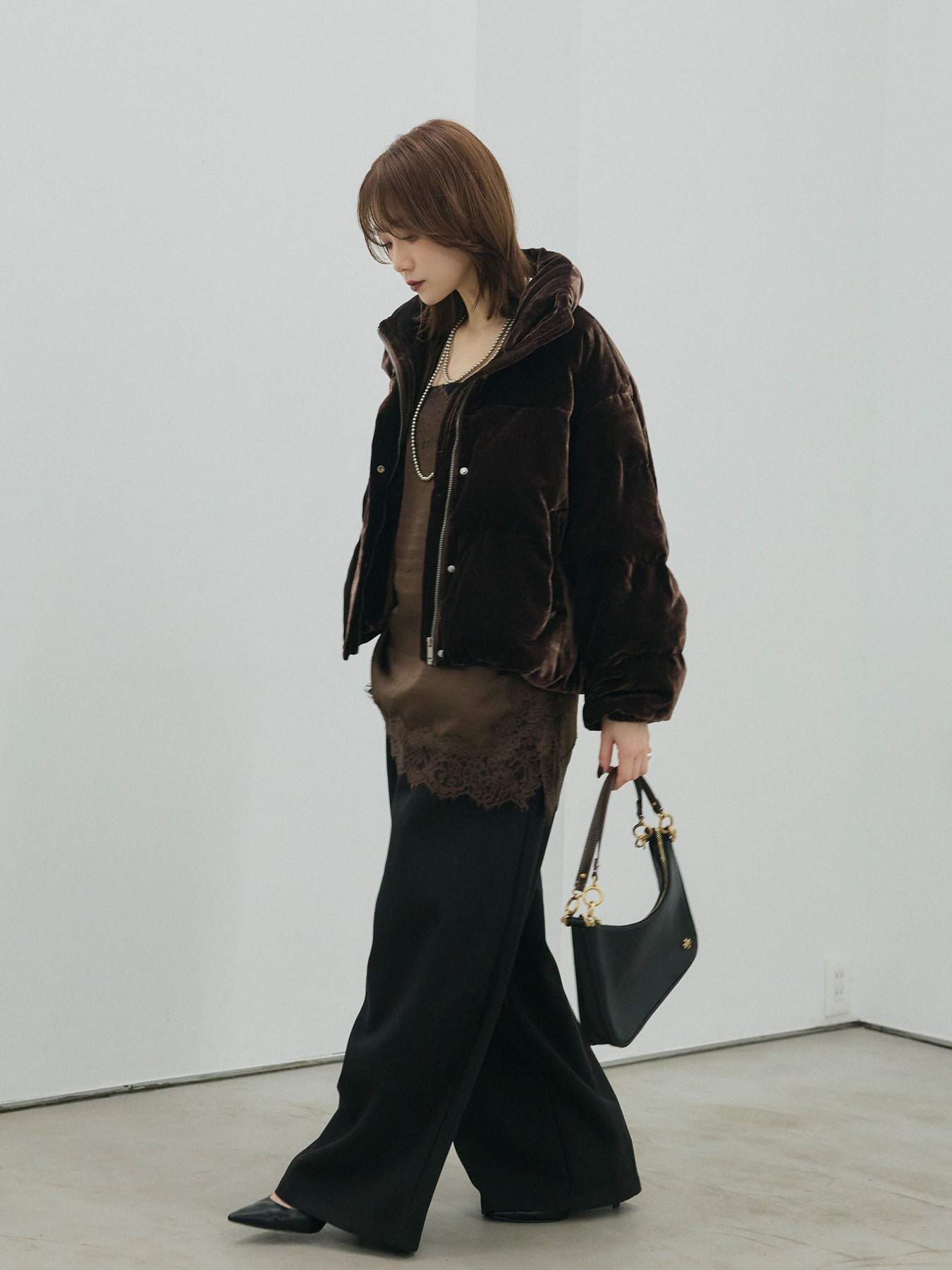 【Allure】[SET]ベロアダウンジャケット+ループデザインツイルワイドパンツ(2set)