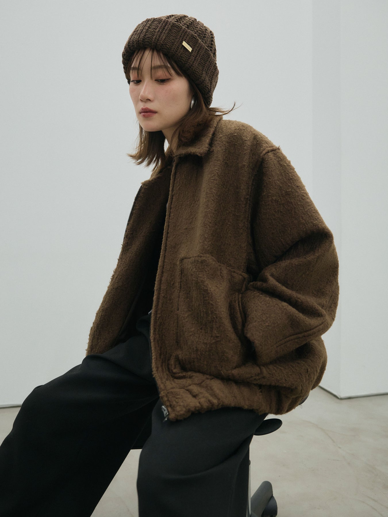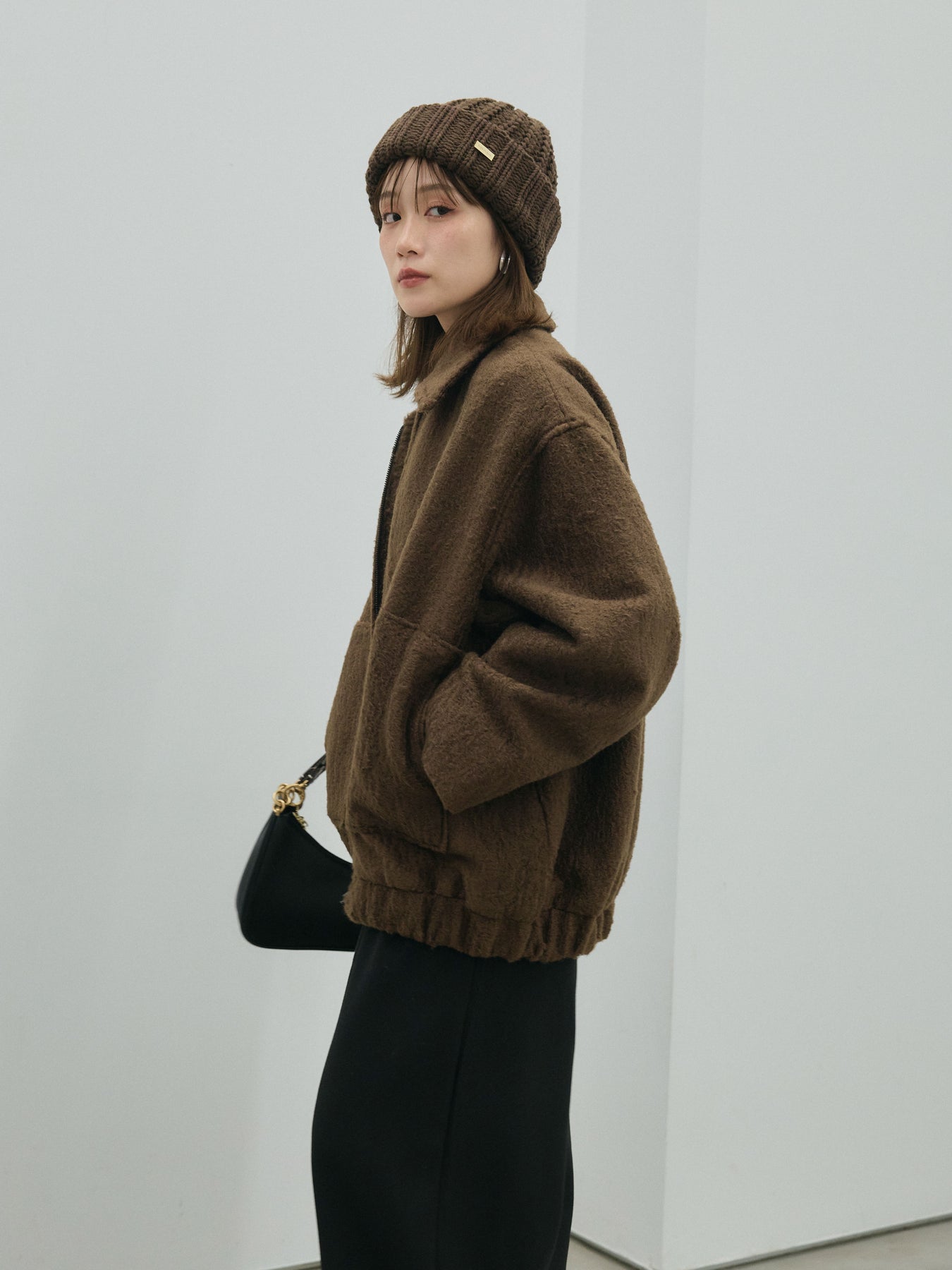 柔らかな毛足と程よいボリューム感が魅力のシャギー素材を使用したフライトジャケット。顔まわりをすっきり見せるスタンドカラーとゆったりとしたドロップショルダーが、こなれた印象を演出します。裾や袖口のリブ切り替えがメリハリを加え、バランス良く仕上げた1枚。コンパクトな丈感でパンツにもスカートにも合わせやすく、カジュアルからきれいめまで幅広く着回せる万能アウターです。