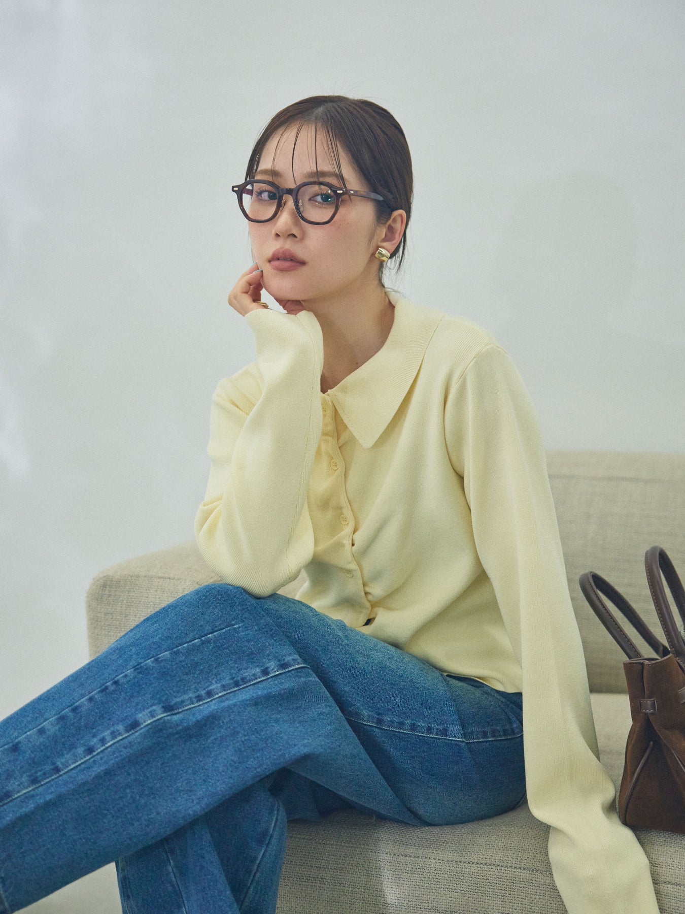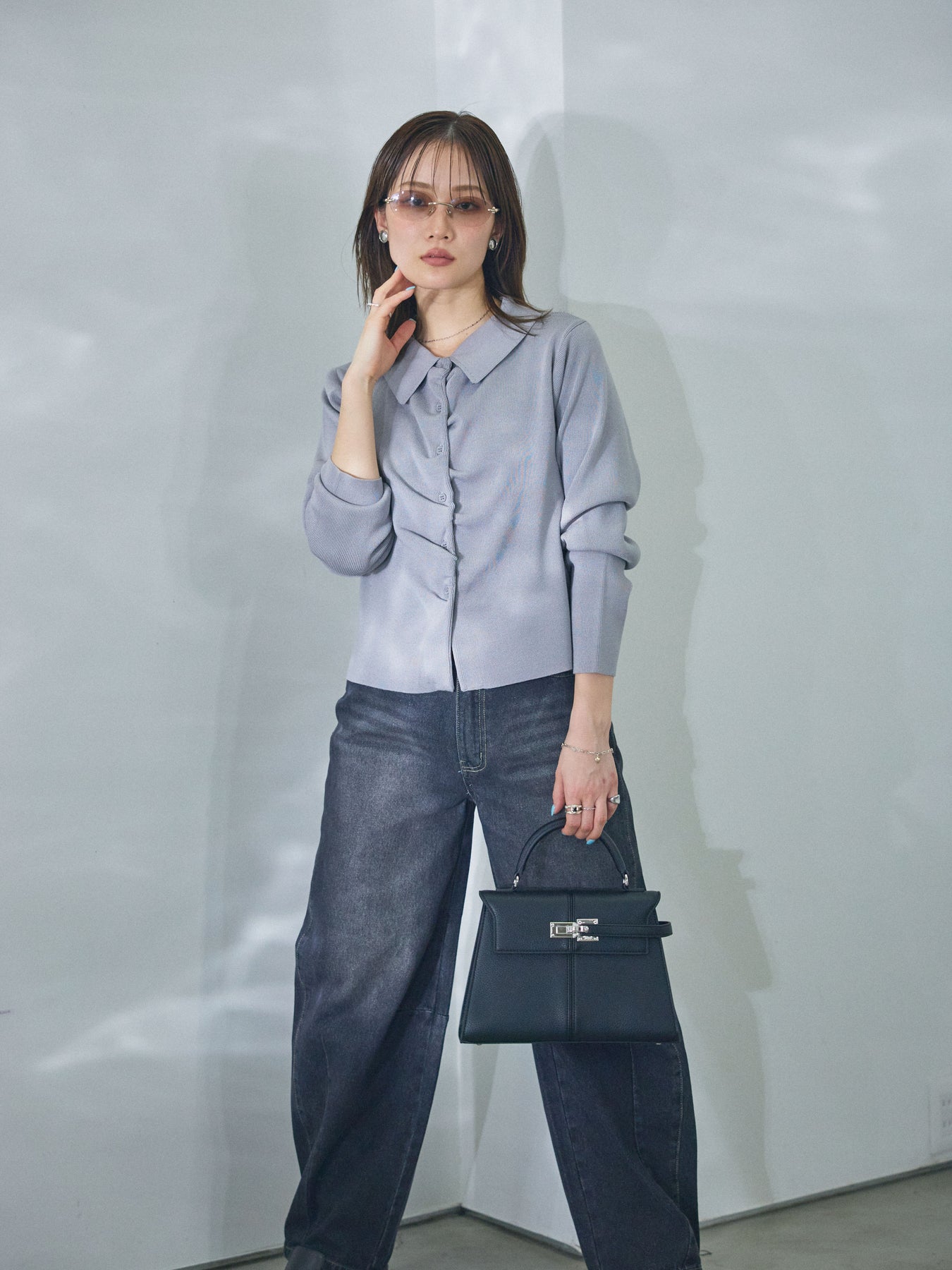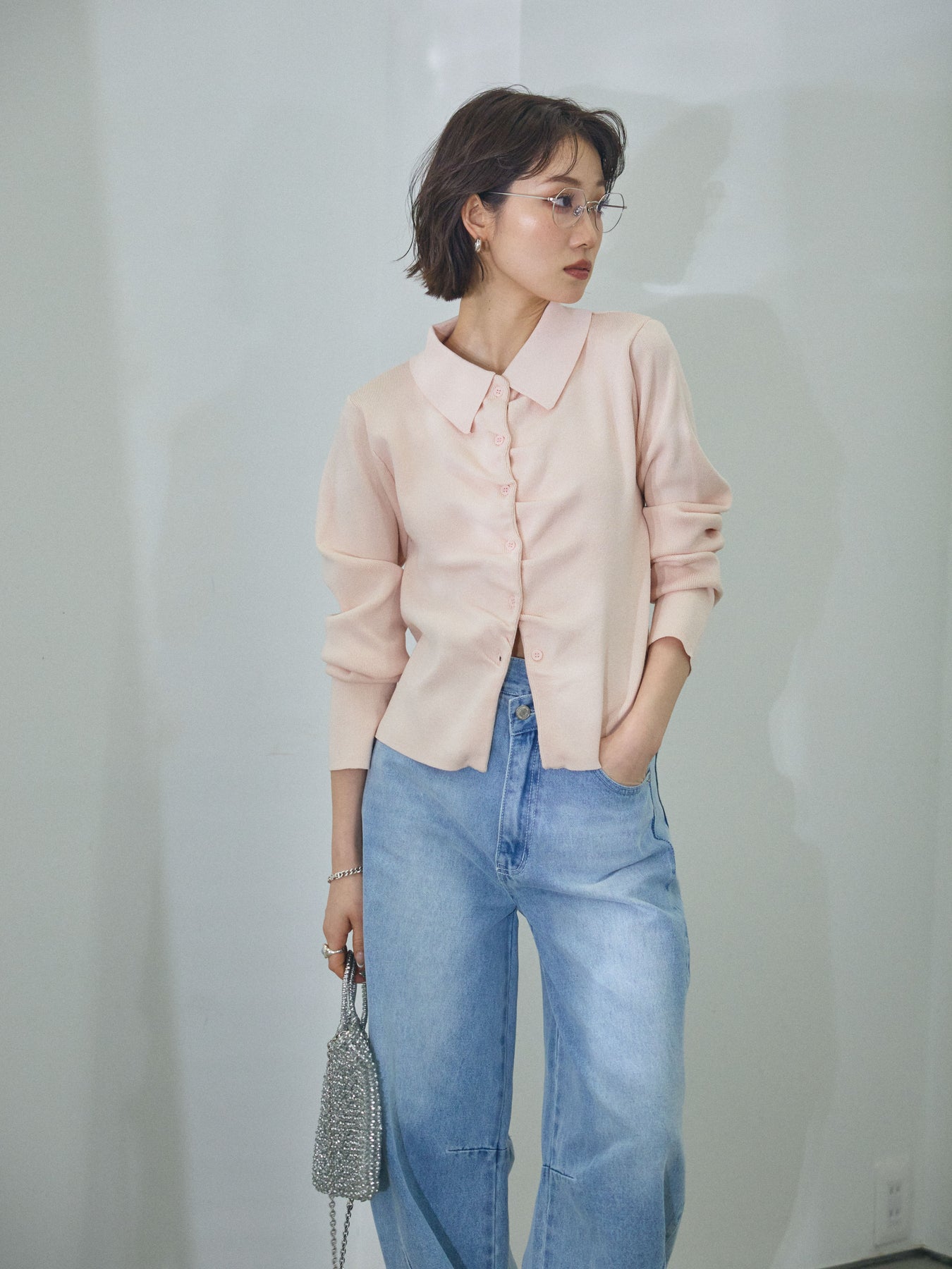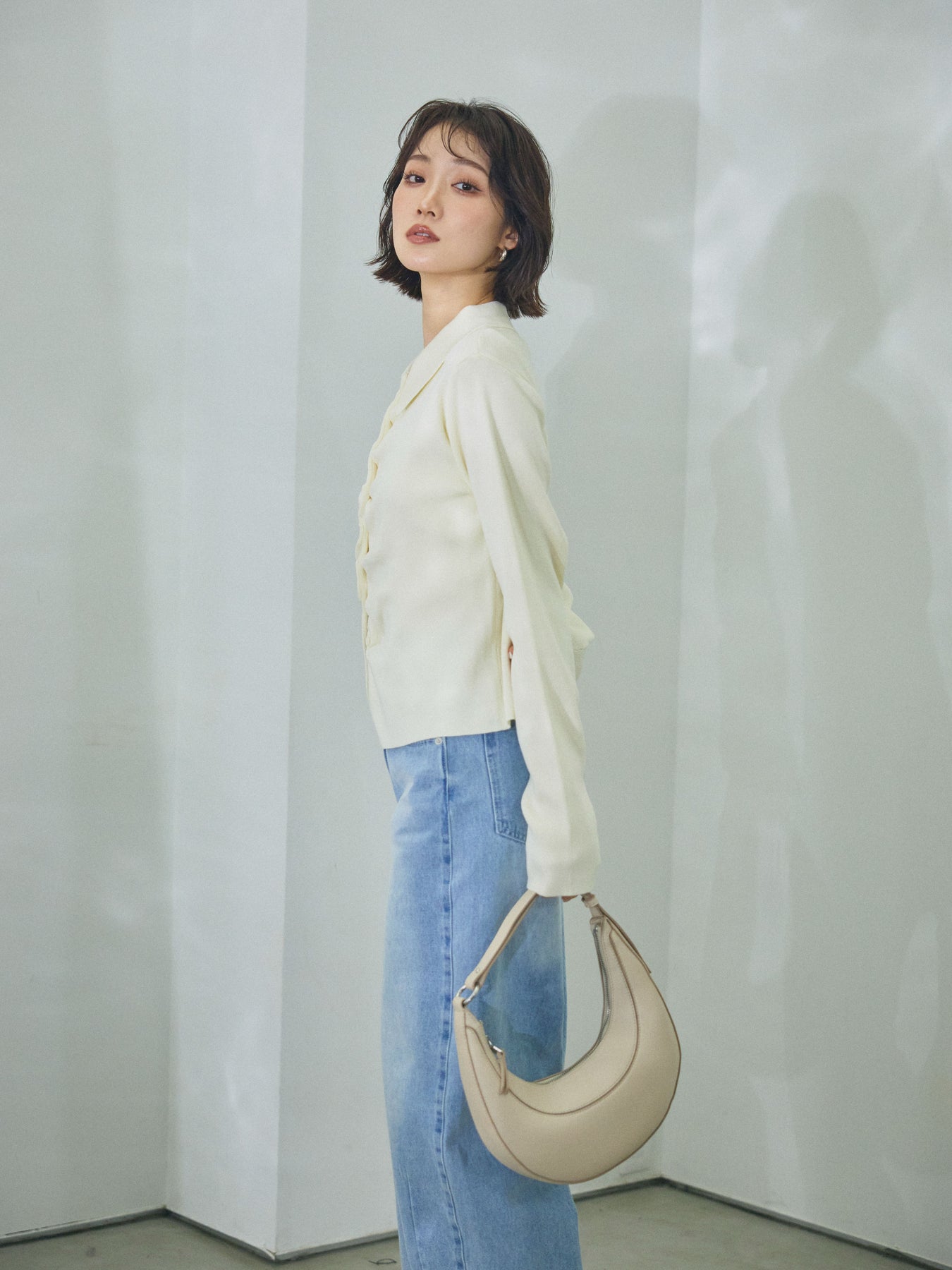 柔らかな表情を添える襟付きデザインが印象的な、ギャザーニットカーディガン。 首元に程よい存在感をもたせる襟と、フロントに施したギャザーが、シンプルな中に奥行きを生み出します。 身体のラインに寄り添いすぎないシルエットで、前を閉じてトップスのように着用しても、羽織として取り入れてもバランスよくまとまる一枚。ニットならではのやわらかな風合いが、コーディネート全体に自然な抜け感をプラスします。 デニムやスカートなど幅広いボトムスと相性が良く、日常使いからきれいめなスタイリングまで幅広く活躍するアイテムです。 ※ボトムス、キャミソール(インナー)以外の商品は一律でインナーは付属していません。