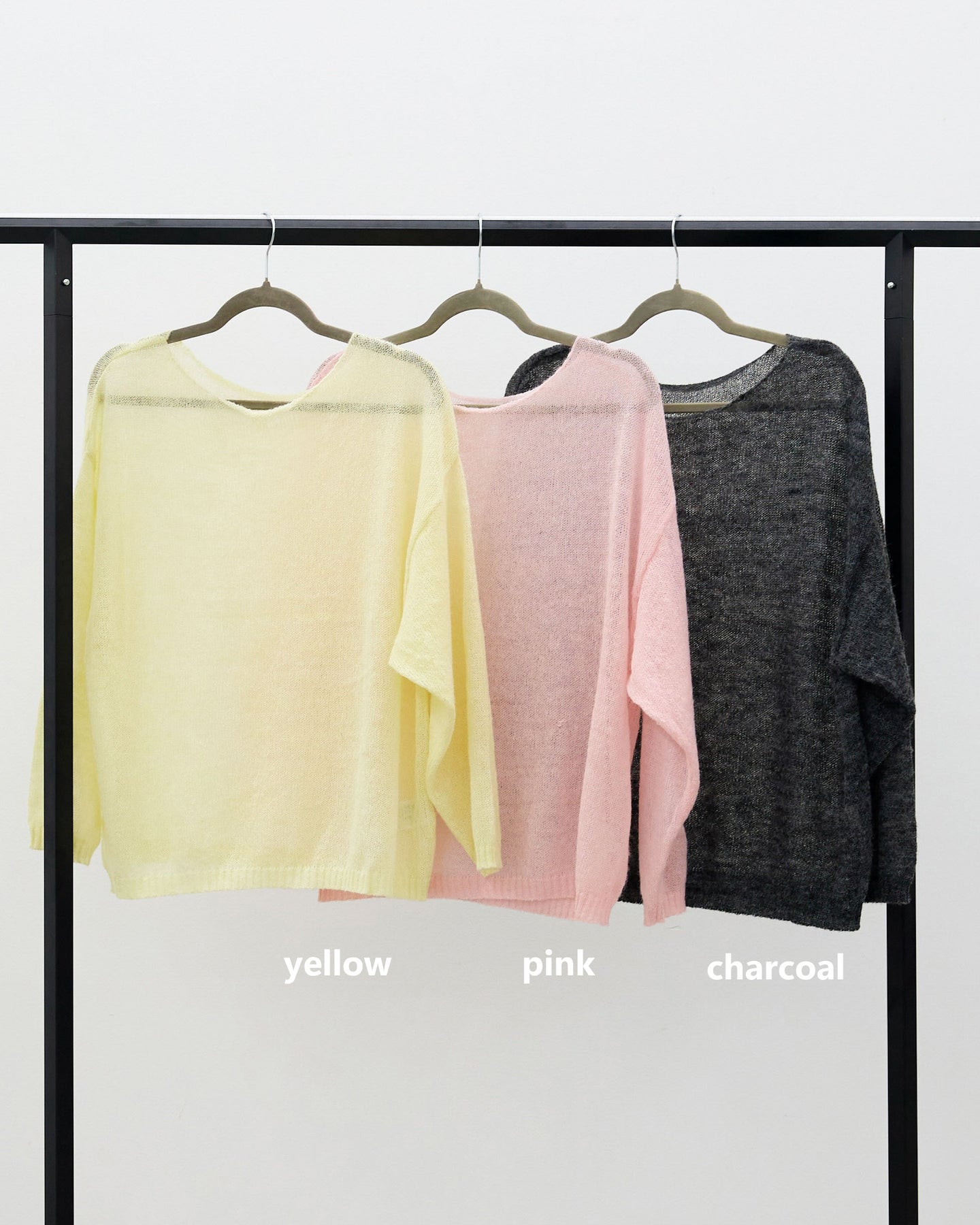 ふんわりとしたモヘアタッチの風合いが魅力の、透かし編みニットプルオーバー。 軽やかな編み地が程よい抜け感を生み、シンプルながらも表情のある一枚に仕上がっています。 首元を美しく見せるボートネックデザインが、肩まわりをすっきりとした印象に。ゆったりとしたシルエットで身体のラインを拾いにくく、リラックス感のある着心地もポイントです。インナーとのレイヤードを楽しめる透かし編み仕様で、合わせるアイテム次第で雰囲気を変えられるのも魅力。 デニムやスラックス、スカートまで幅広く馴染み、季節の変わり目にも活躍するニットプルオーバーです。 ※ボトムス、キャミソール(インナー)以外の商品は一律でインナーは付属していません。