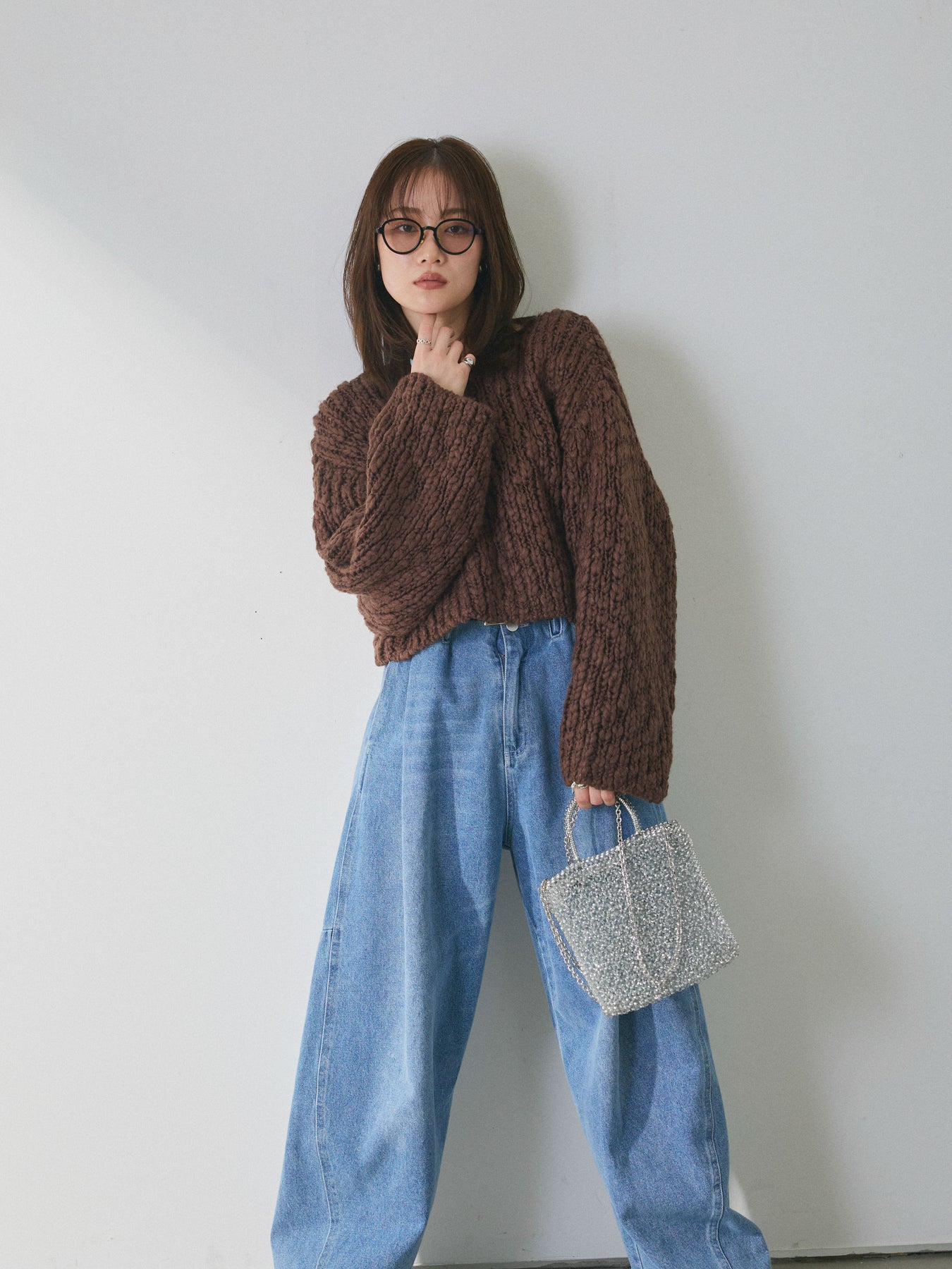 立体感のあるスラブ糸を使用した、表情豊かなチャンキーニットプルオーバー。 ざっくりとした編み地が存在感を放ちつつ、クロップド丈のバランスにより重たく見えにくい仕上がりです。 程よくボリュームのある袖とコンパクトな丈感が、自然なメリハリを生み、ワイドパンツやハイウエストボトムスとも好相性。シンプルなスタイリングでも、ニットの質感がコーディネートに奥行きを加えてくれます。 一枚で着映えし、季節感を取り入れたスタイリングを楽しめるアイテムです。 ※ボトムス、キャミソール(インナー)以外の商品は一律でインナーは付属していません。