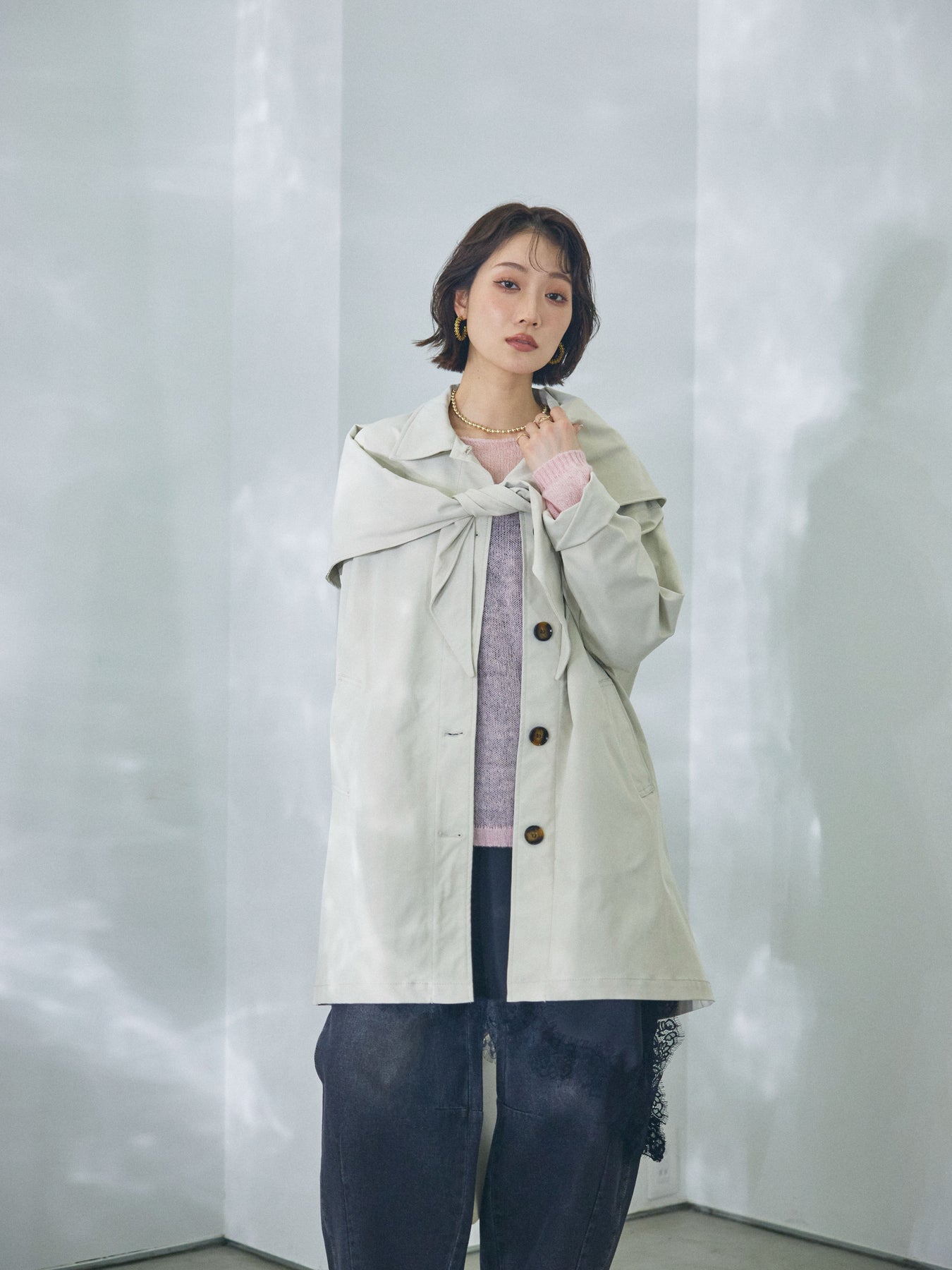 ◆ [予約]スカーフ付ステンカラーミディアムコート