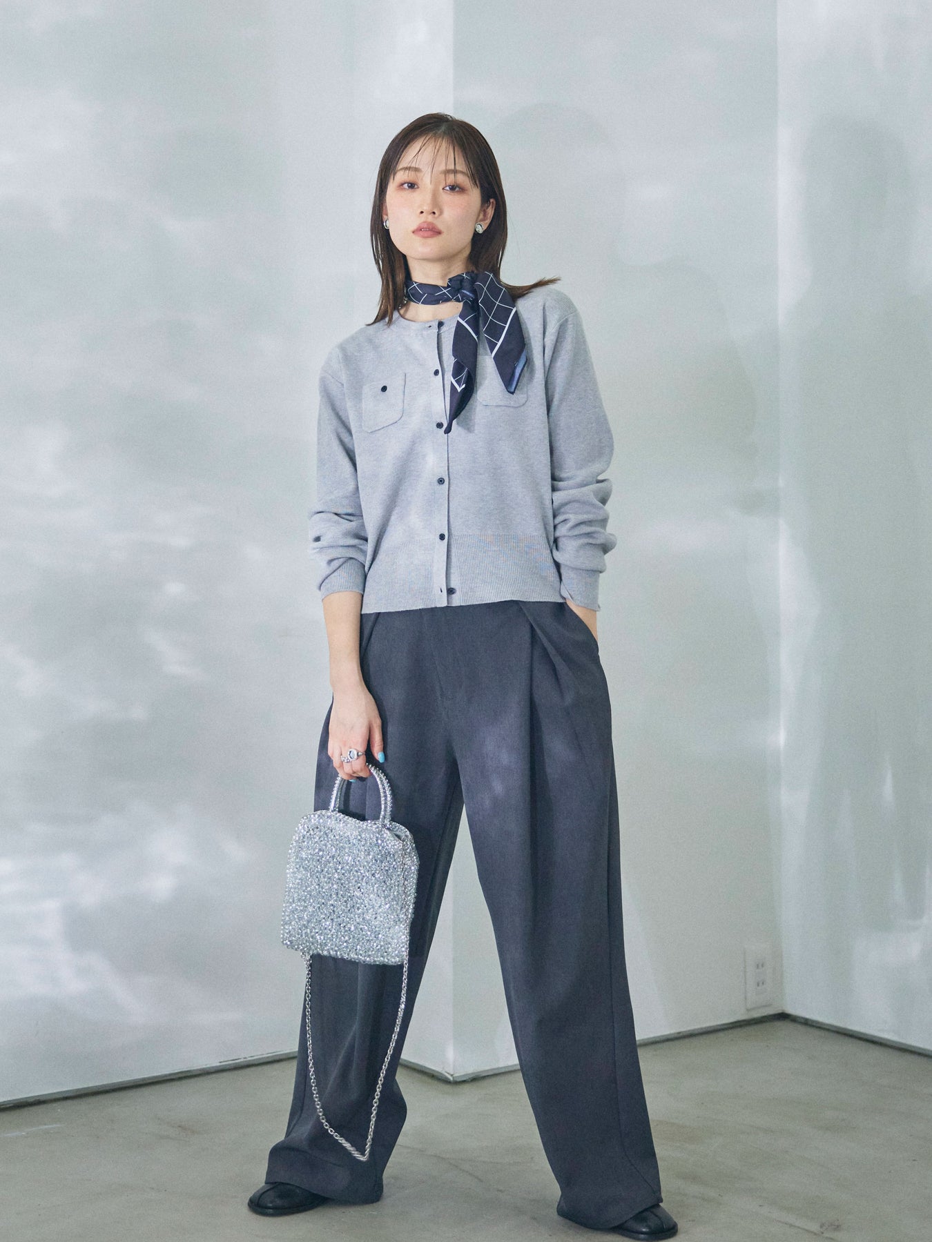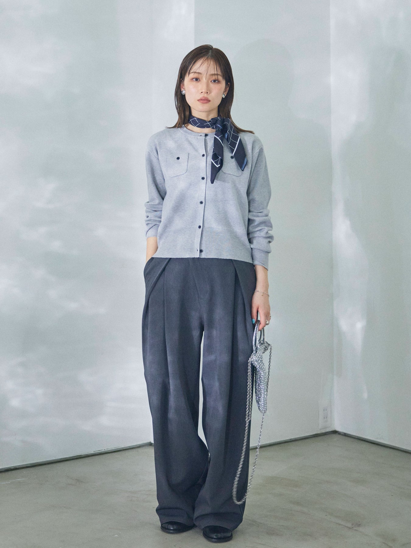 【Allure】[SET]ミニポケットニットカーディガン+アシンメトリーウエストタックパンツ(2set)