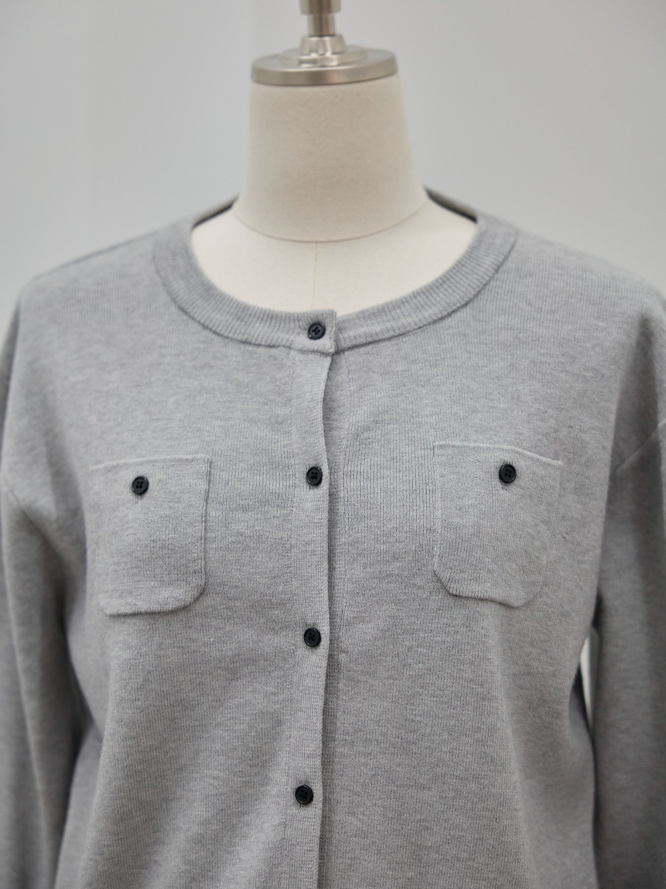 小さなポケットディテールがポイントになった、ニットカーディガン。 シンプルな中に程よいアクセントを効かせ、スタイリングに自然な表情をプラスします。 コンパクトすぎないシルエットで、前を留めてトップス感覚でも、さっと羽織ってもバランス良く着用可能。ボトムスを選ばず合わせやすく、デイリーに取り入れやすい一枚です。 さりげないデザイン性がありながら、着回しの幅を広げてくれるアイテムです。 ※ボトムス、キャミソール(インナー)以外の商品は一律でインナーは付属していません。