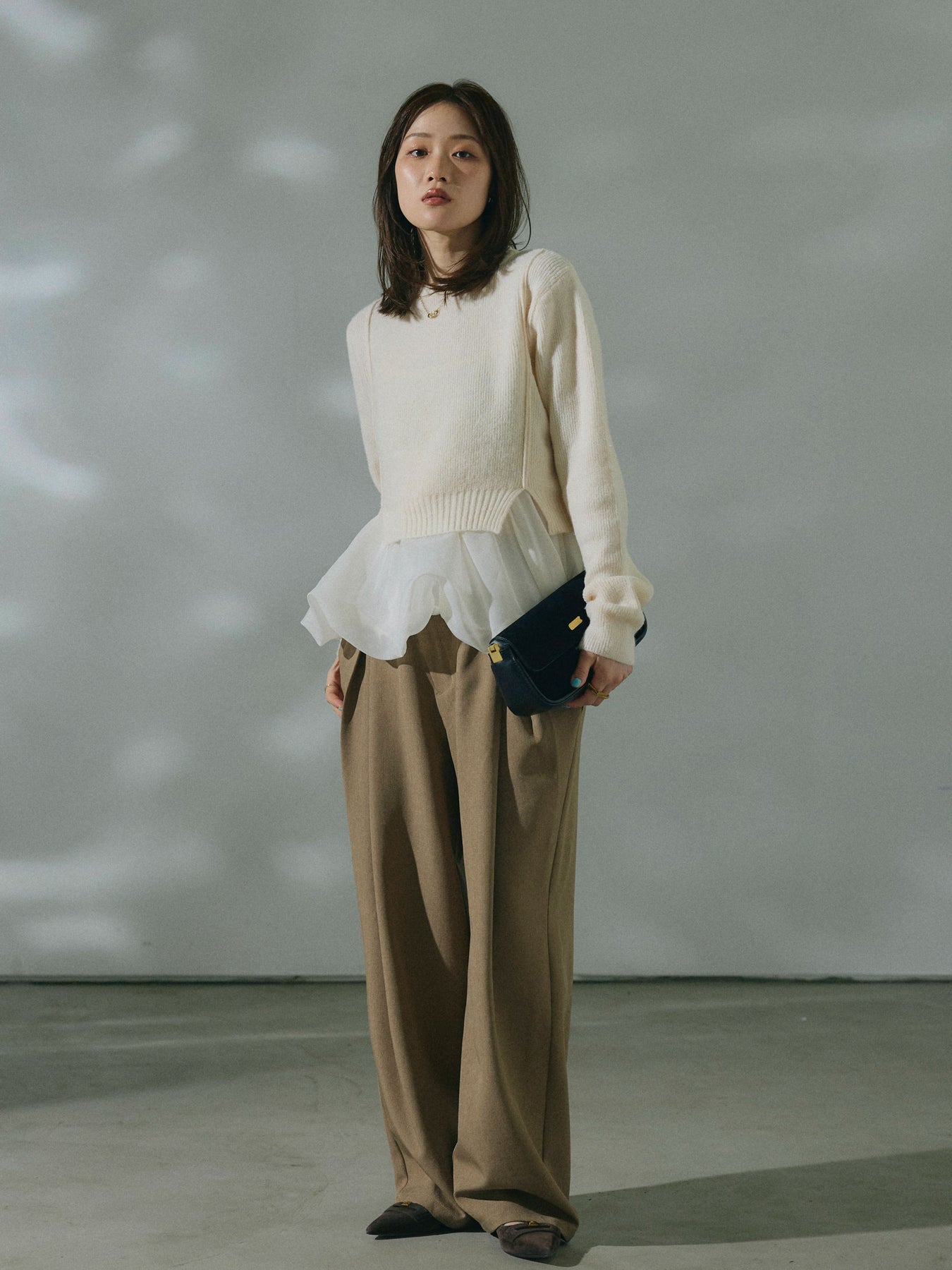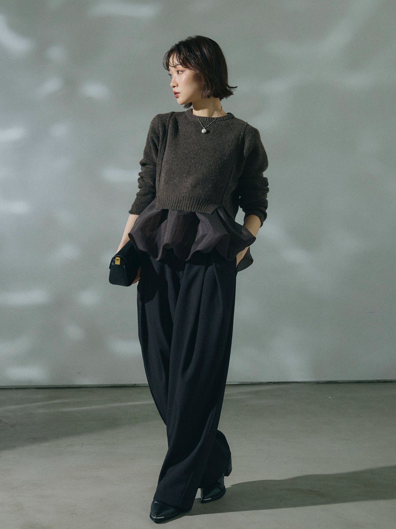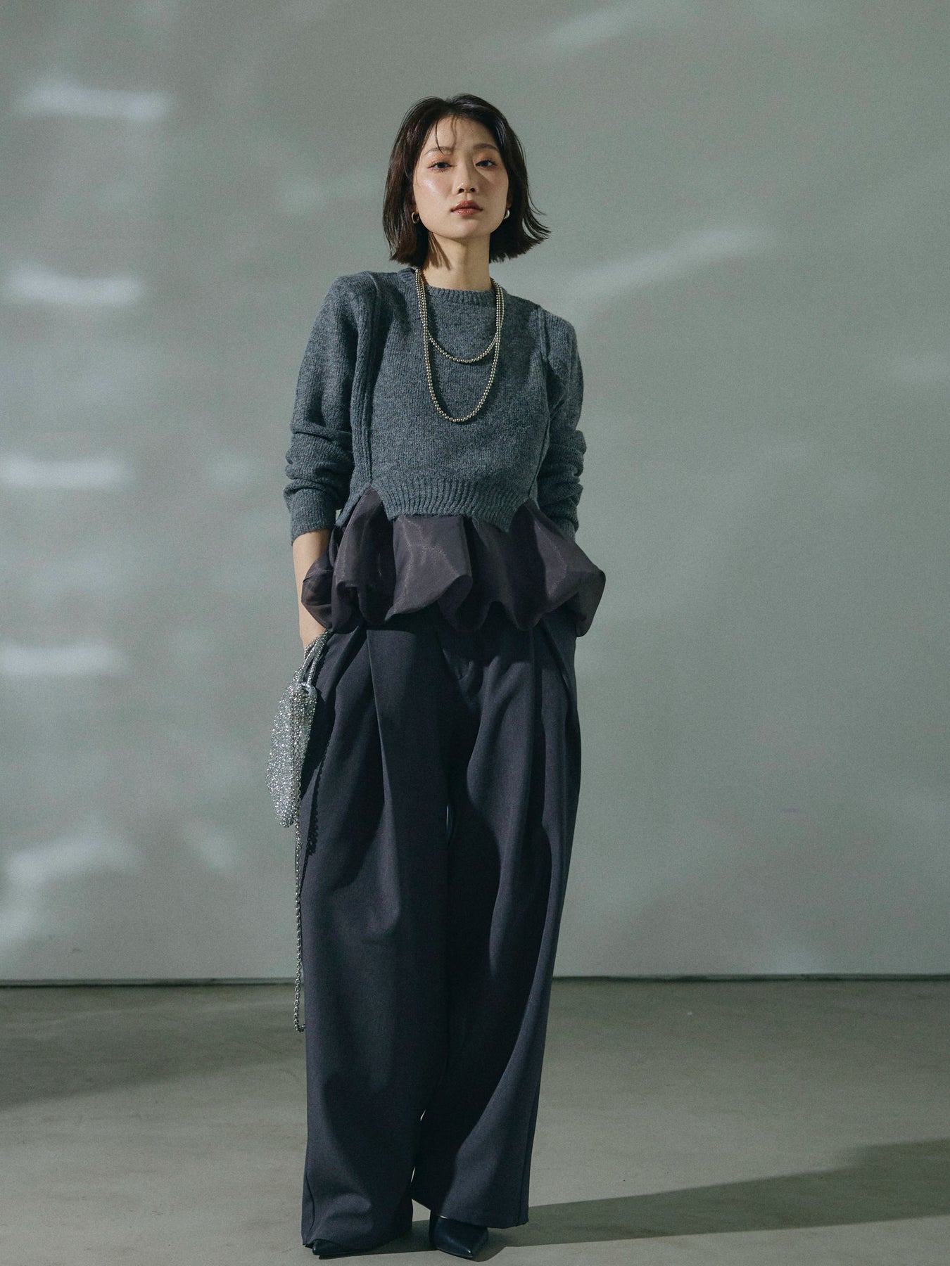【Allure】[SET]オーガンジーバルーンキャミアンサンブルニット+アシンメトリーウエストタックパンツ(2set)