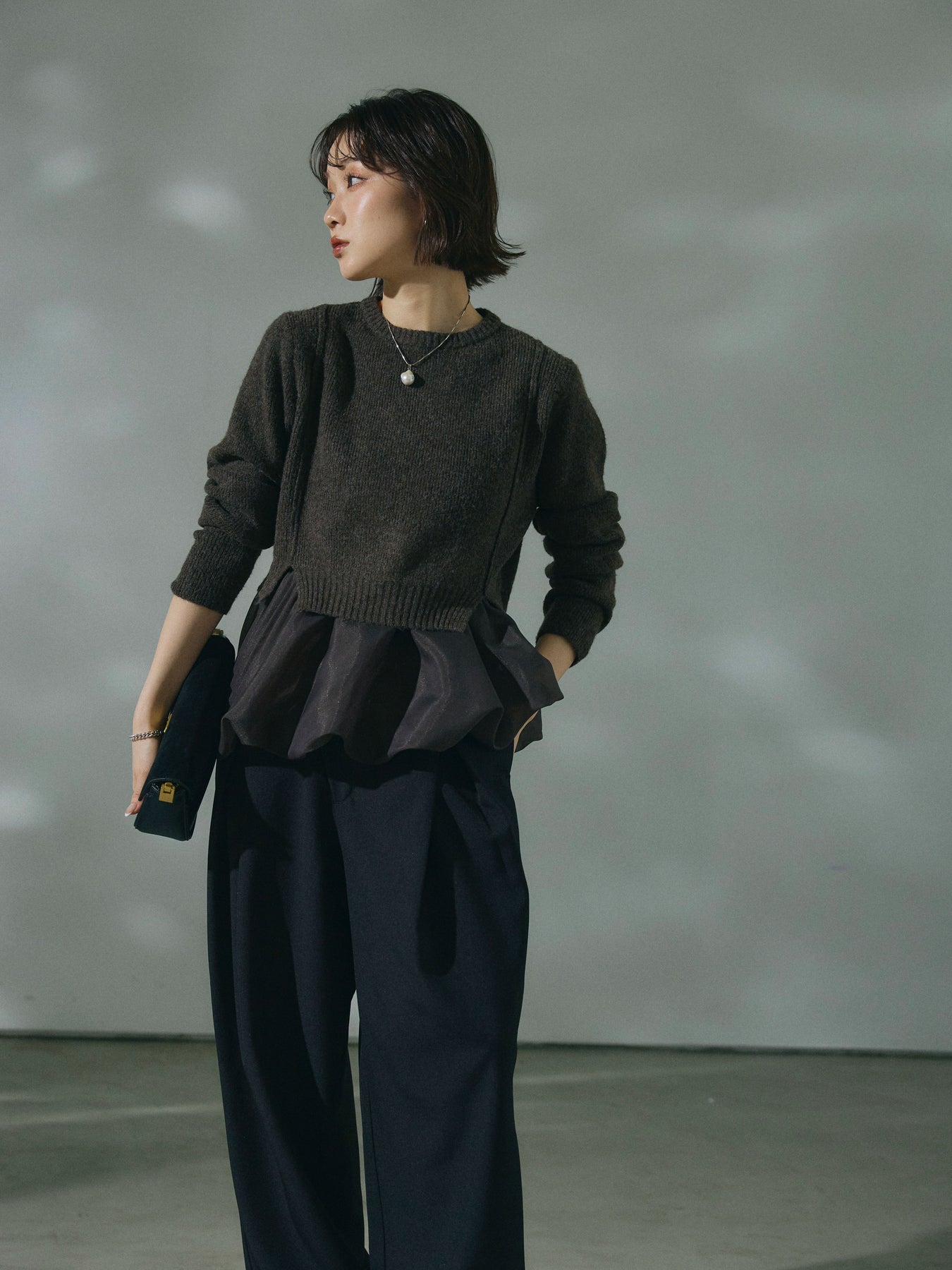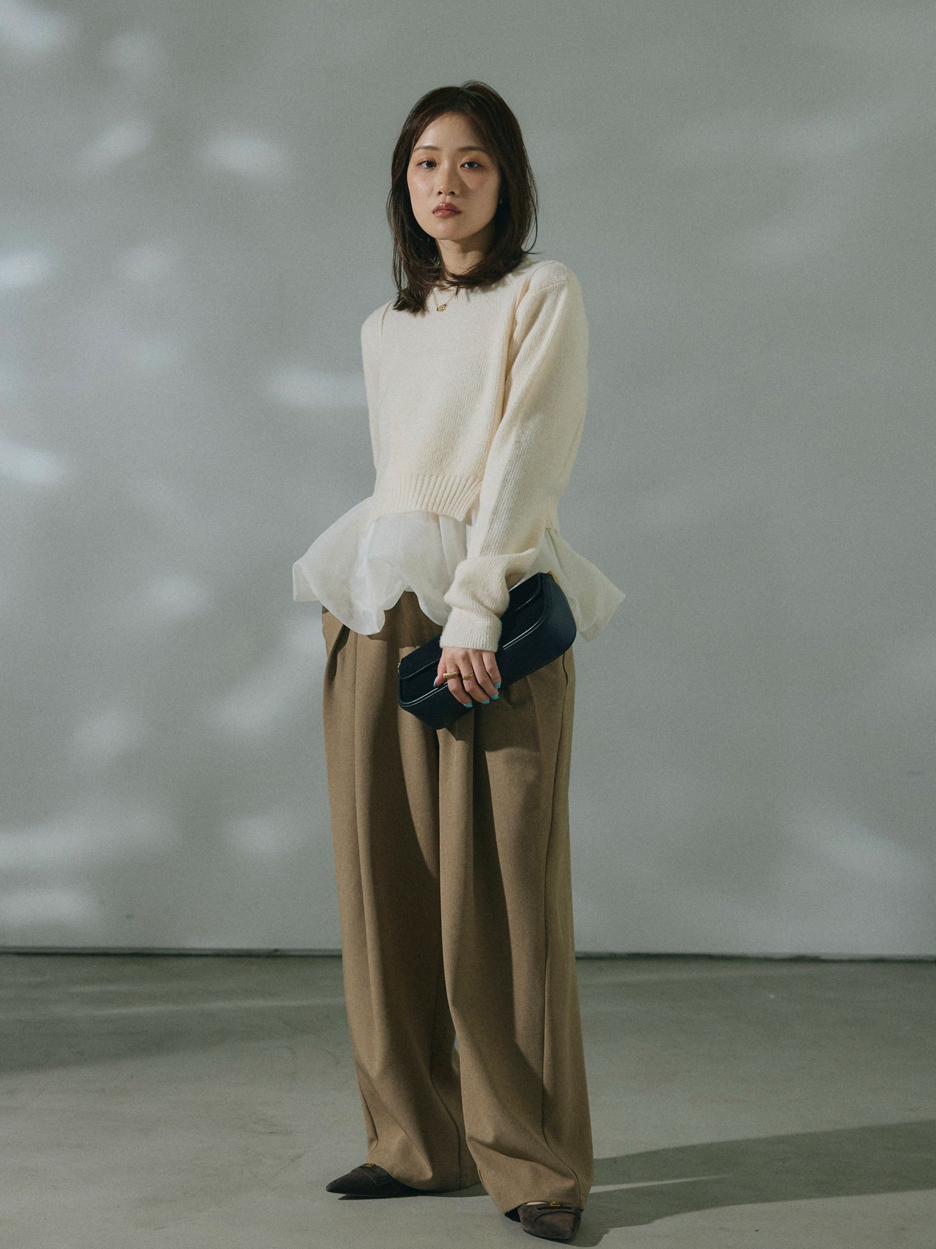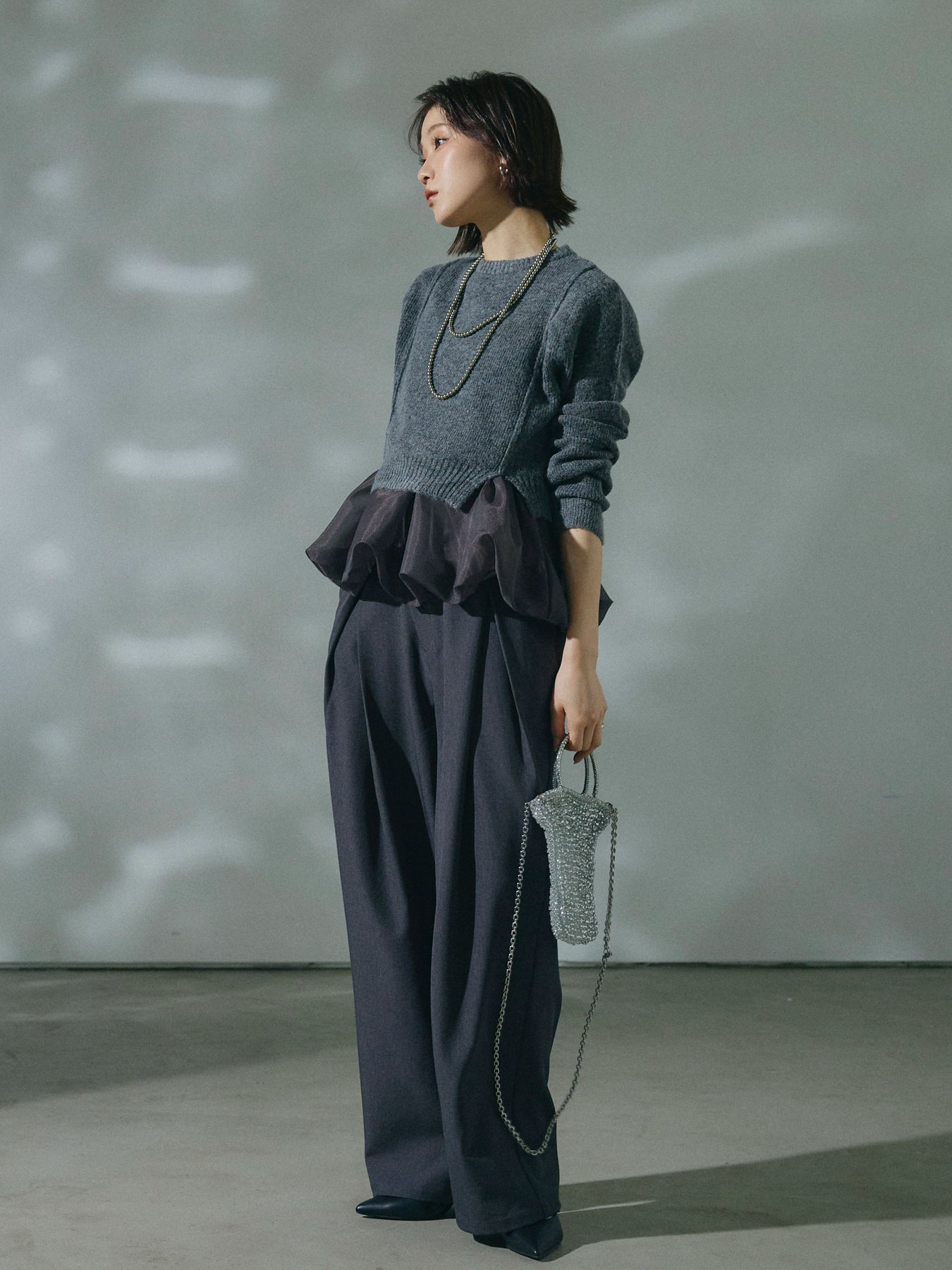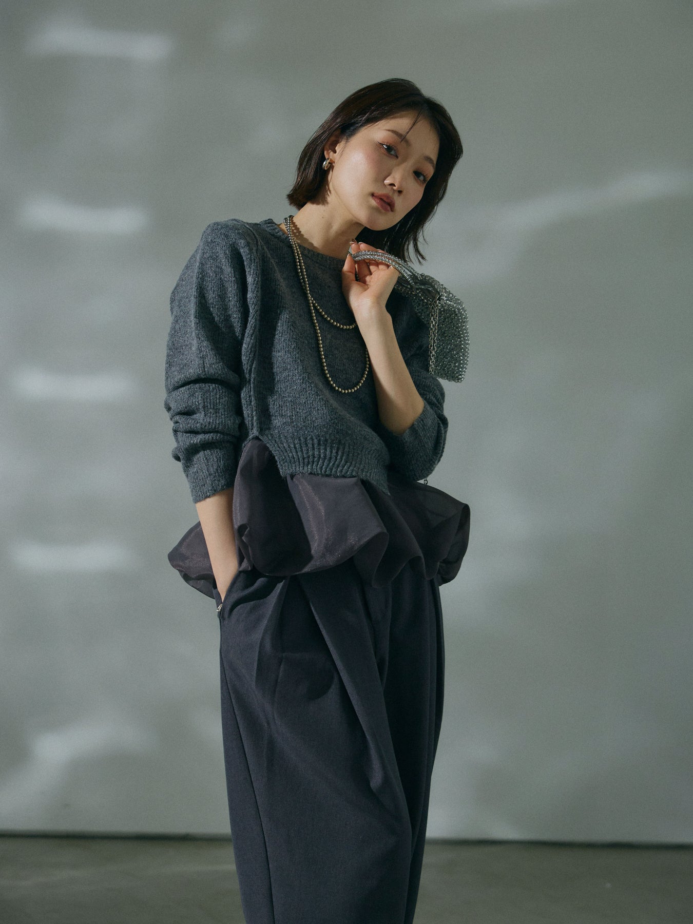 【Allure】[SET]オーガンジーバルーンキャミアンサンブルニット+アシンメトリーウエストタックパンツ(2set)