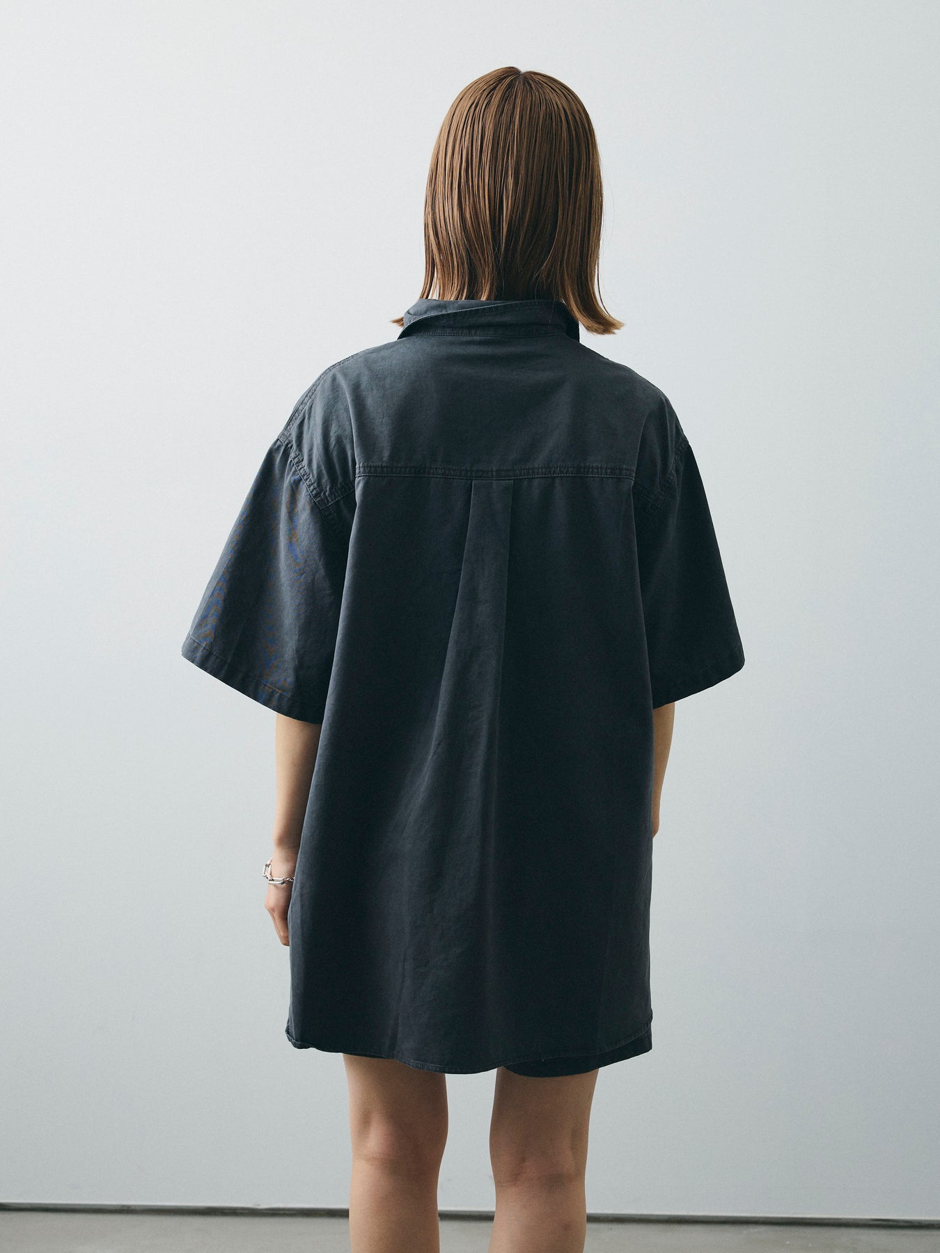 【シャツ】肩幅50cm バスト116cm アームホール52cm 袖丈24cm 袖口46cm 着丈フロント69cm 着丈バック76cm 伸縮性なし 透け感なし 胸ポケットあり 【ハーフパンツ】ウエスト60cm~90cm(ウエストゴムあり) ヒップ108cm 股上34cm 股下10cm 渡幅34cm 伸縮性なし 透け感なし 裏地なし サイド・バックポケットあり フロントボタンフェイク