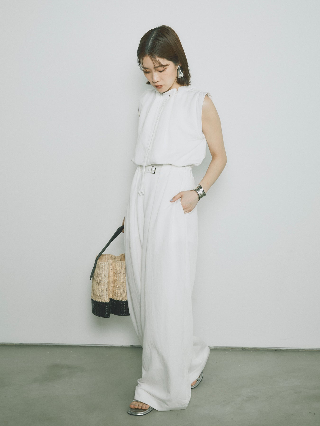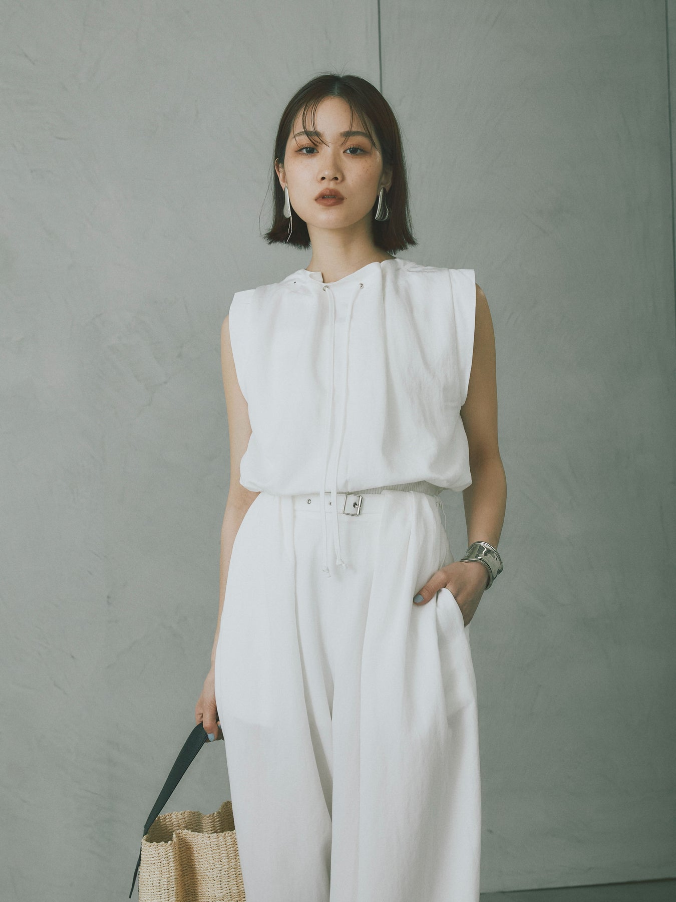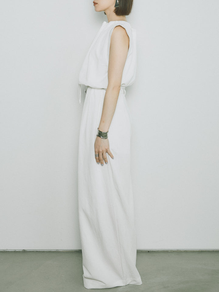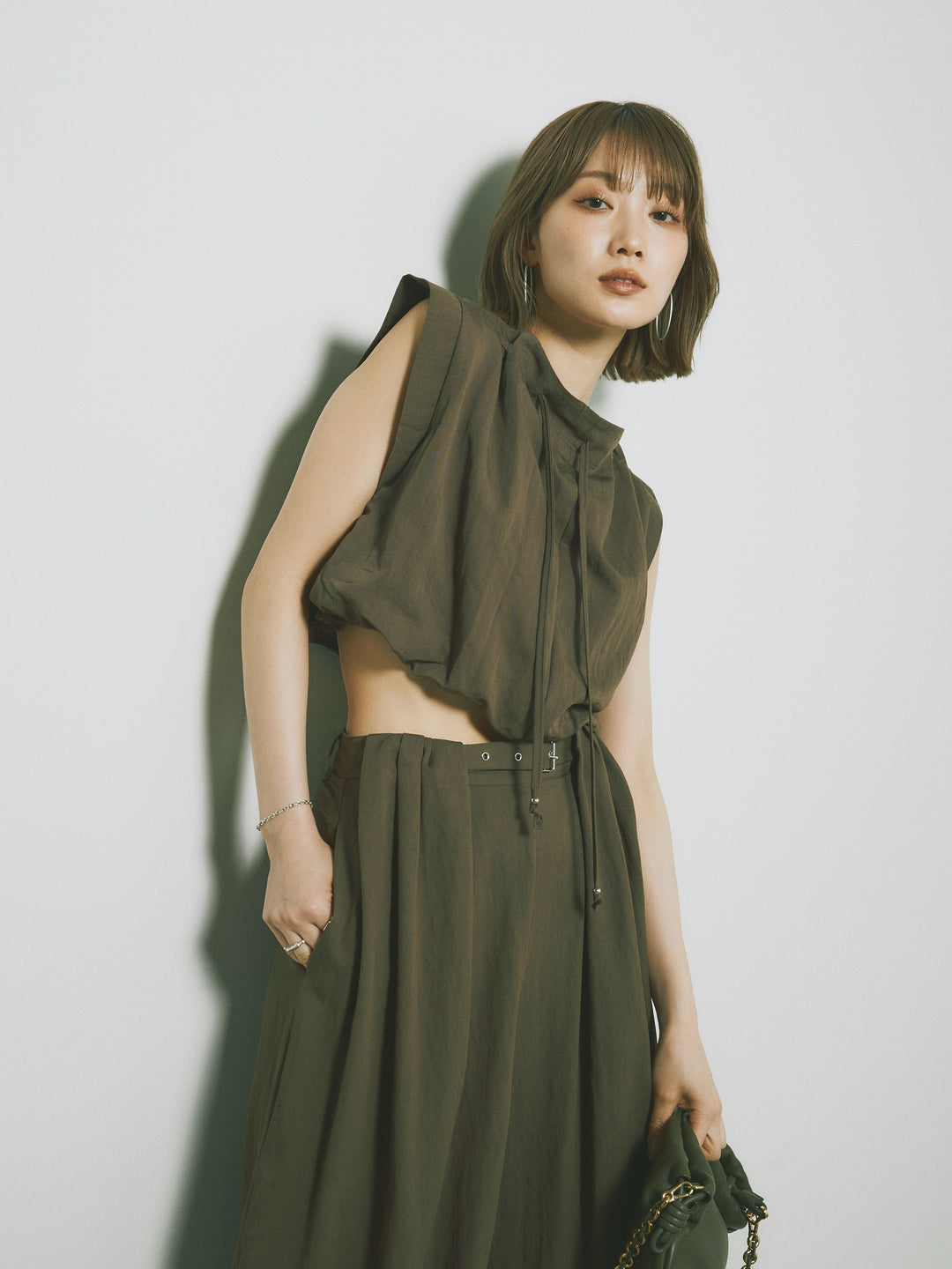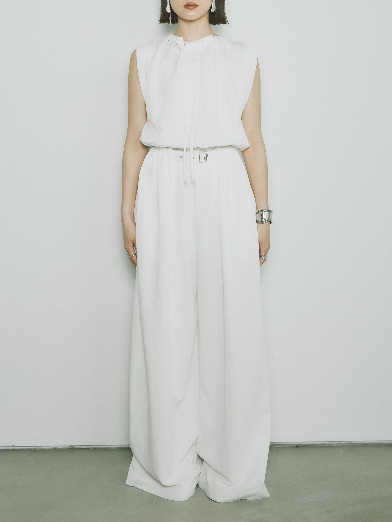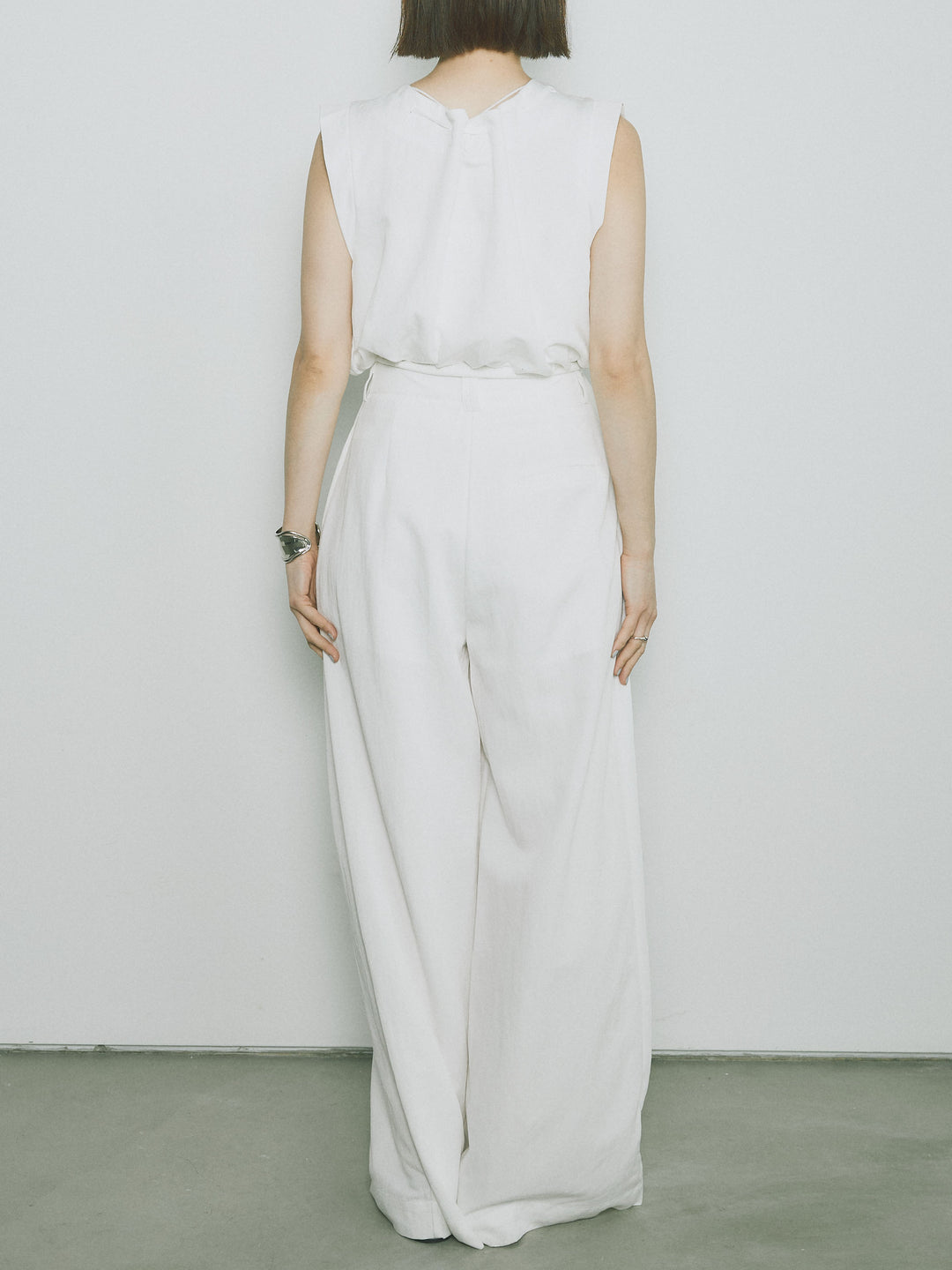 軽やかなテンセル素材で仕立てた、バルーンシルエットのトップスとパンツのセットアップ。トップスは肩紐付きのシンプルでエレガントなデザインで、リラックスしたシルエットを引き立てます。パンツはゆったりとしたバルーンシルエットで、動きやすさと快適さを兼ね備えています。セットアップとしてはもちろん、単品でも使える万能アイテムです。ナチュラルな色合いで、春夏にぴったりのスタイルを完成させます。 ※ボトムス、キャミソール(インナー)以外の商品は一律でインナーは付属していません。