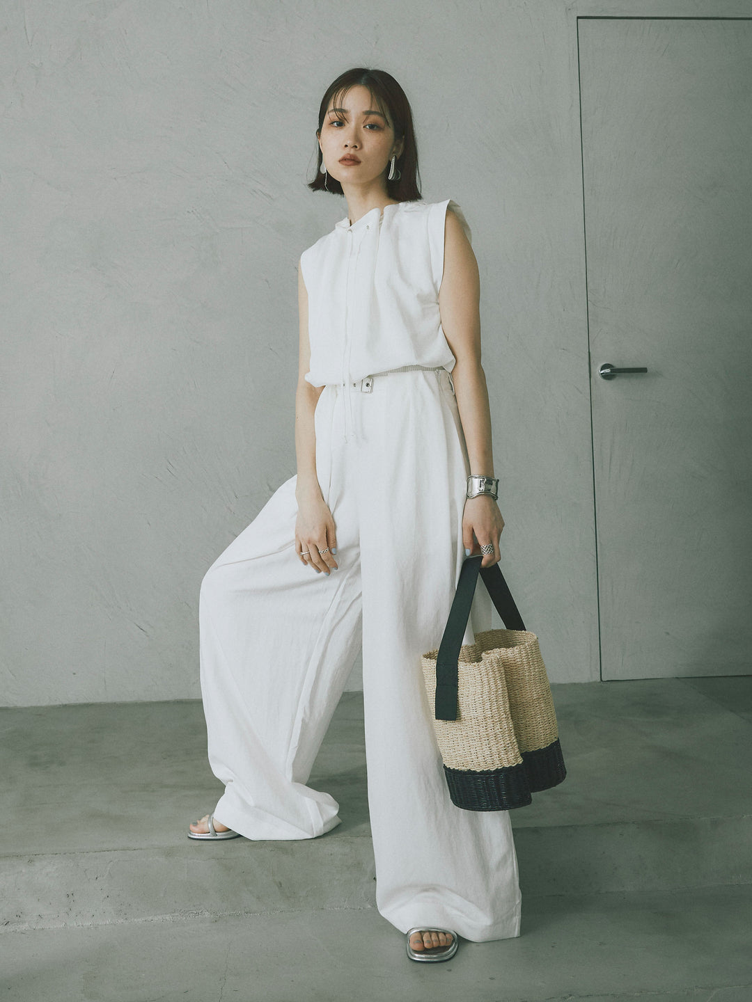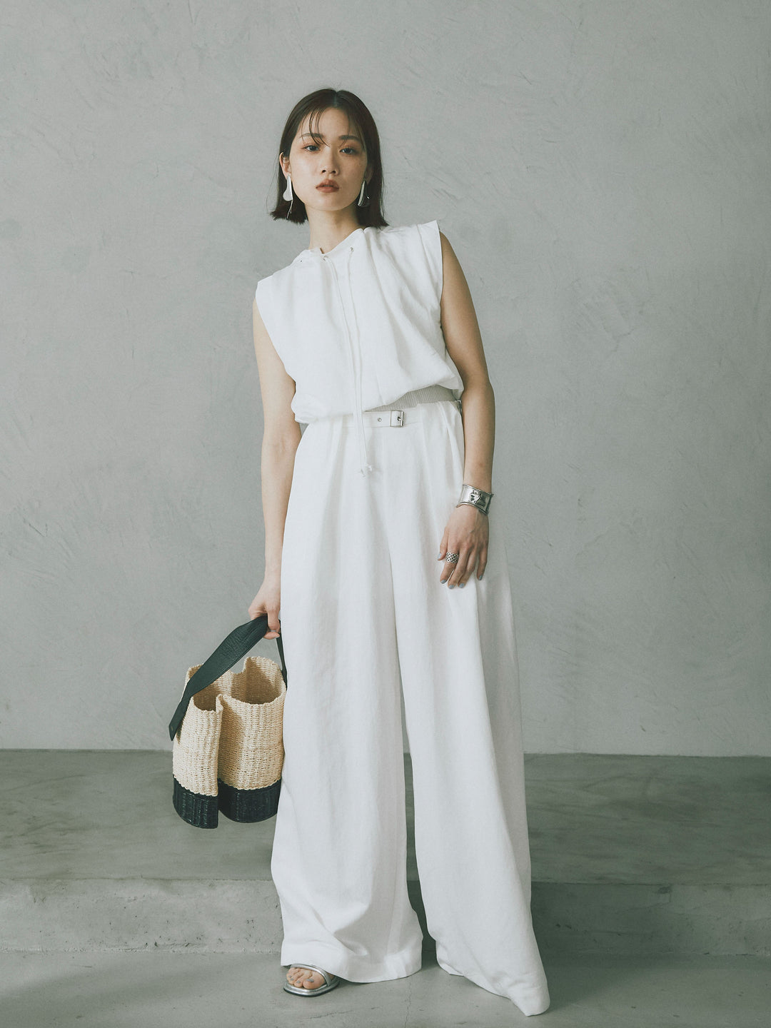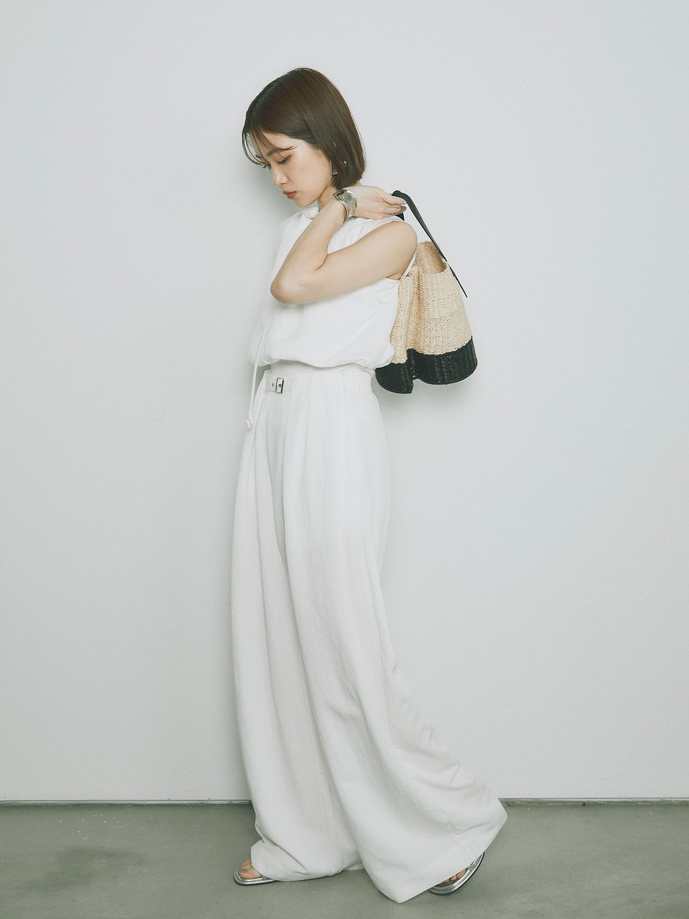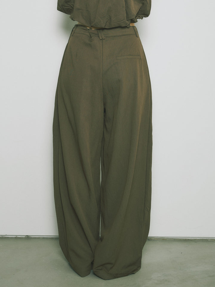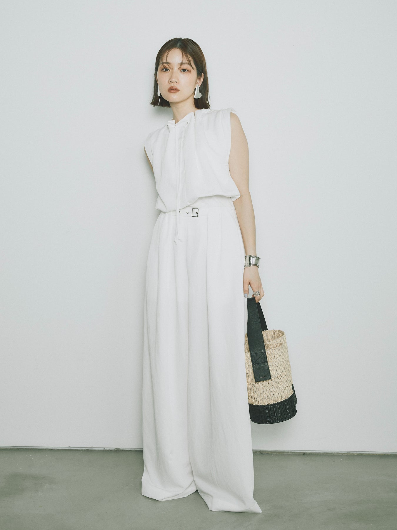 軽やかなテンセル素材で仕立てた、バルーンシルエットのトップスとパンツのセットアップ。トップスは肩紐付きのシンプルでエレガントなデザインで、リラックスしたシルエットを引き立てます。パンツはゆったりとしたバルーンシルエットで、動きやすさと快適さを兼ね備えています。セットアップとしてはもちろん、単品でも使える万能アイテムです。ナチュラルな色合いで、春夏にぴったりのスタイルを完成させます。 ※ボトムス、キャミソール(インナー)以外の商品は一律でインナーは付属していません。