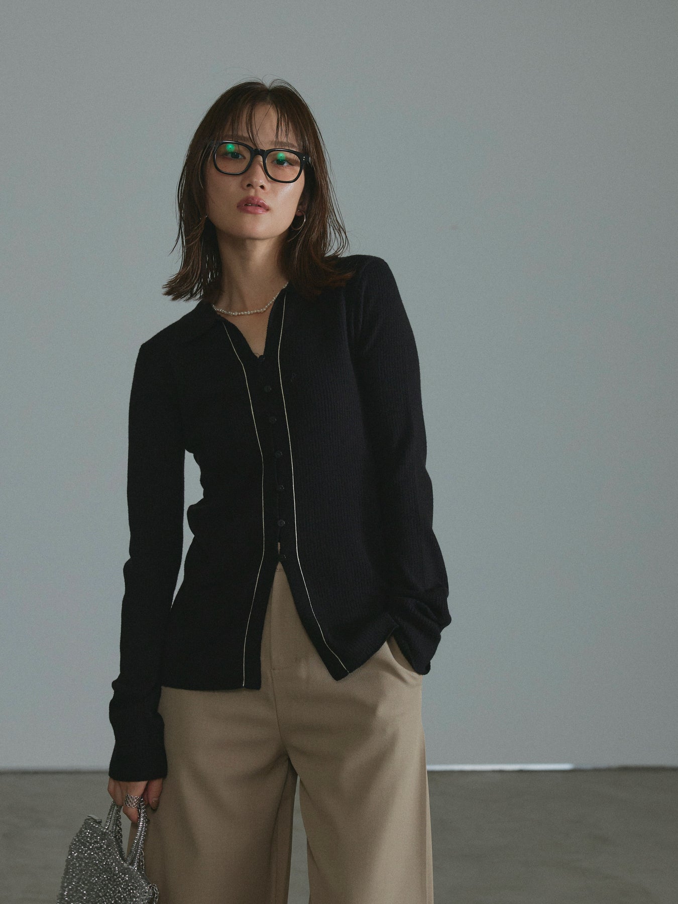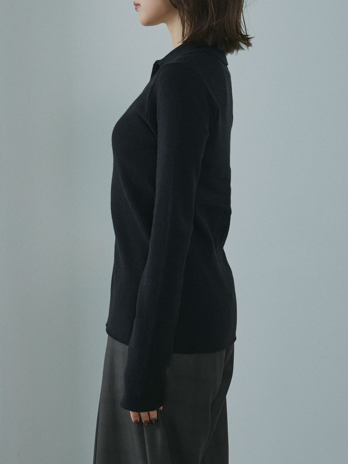 リブの縦ラインがすっきりとした印象を与えるポロニットカーディガン。 程よい厚みと伸縮性のある素材で、身体に優しくフィットしながらも窮屈さを感じさせない着心地です。 襟付きデザインが上品さをプラスし、フロントのボタンラインに配したさりげない配色がスタイリングのアクセントに。 一枚でトップスとしても、羽織としても活躍する万能アイテムです。 デニムやスラックスなど、どんなボトムとも相性が良く、シーズンを問わず長く愛用できる一着。 ※ボトムス、キャミソール(インナー)以外の商品は一律でインナーは付属していません。