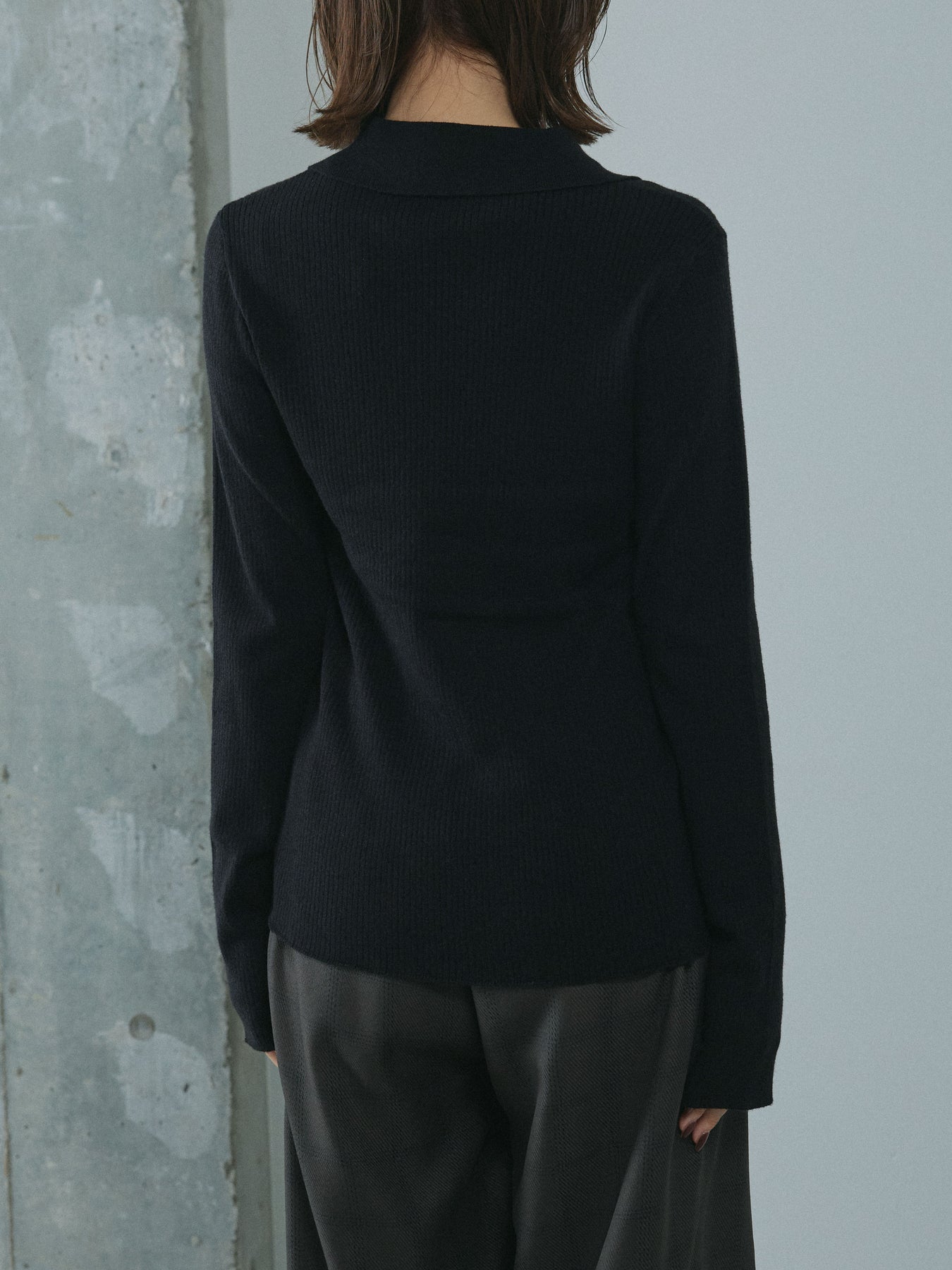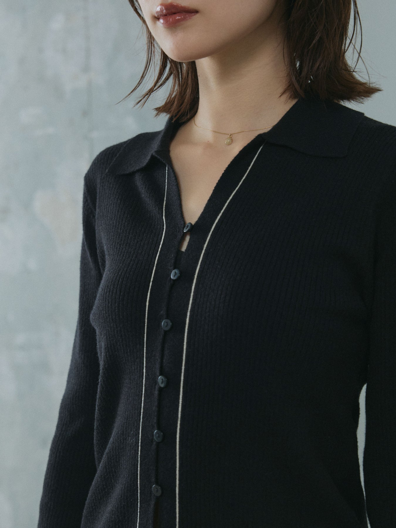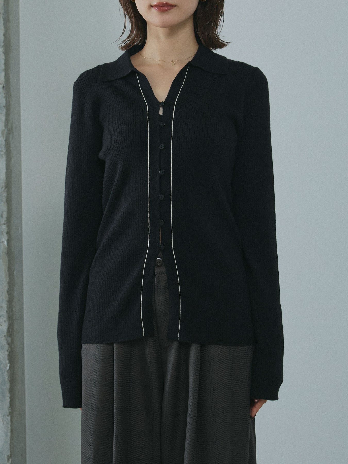 [予約]リブ配色ラインポロニットカーディガン/black