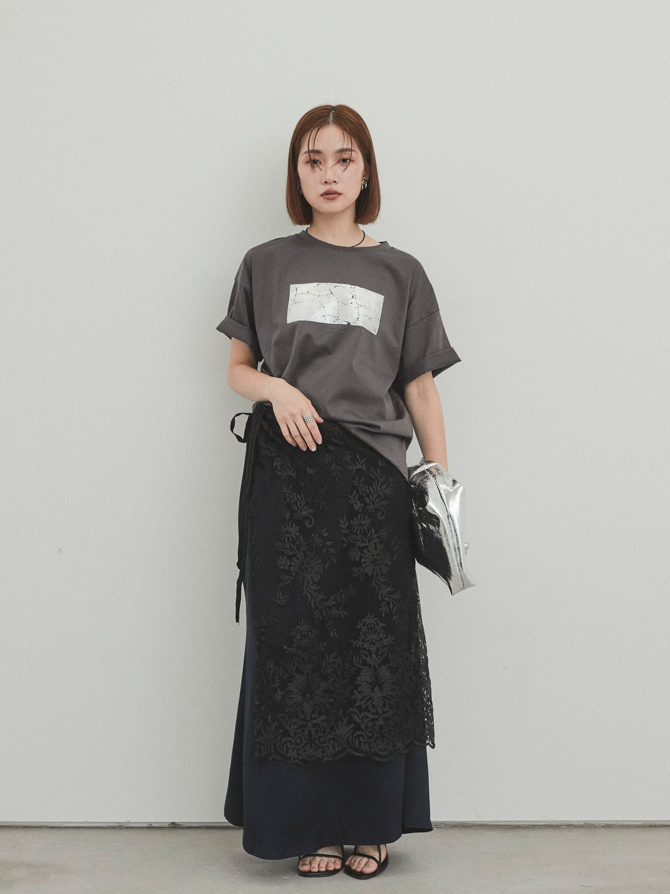 [予約]箔プリントドライタッチコットンTEE /チャコール