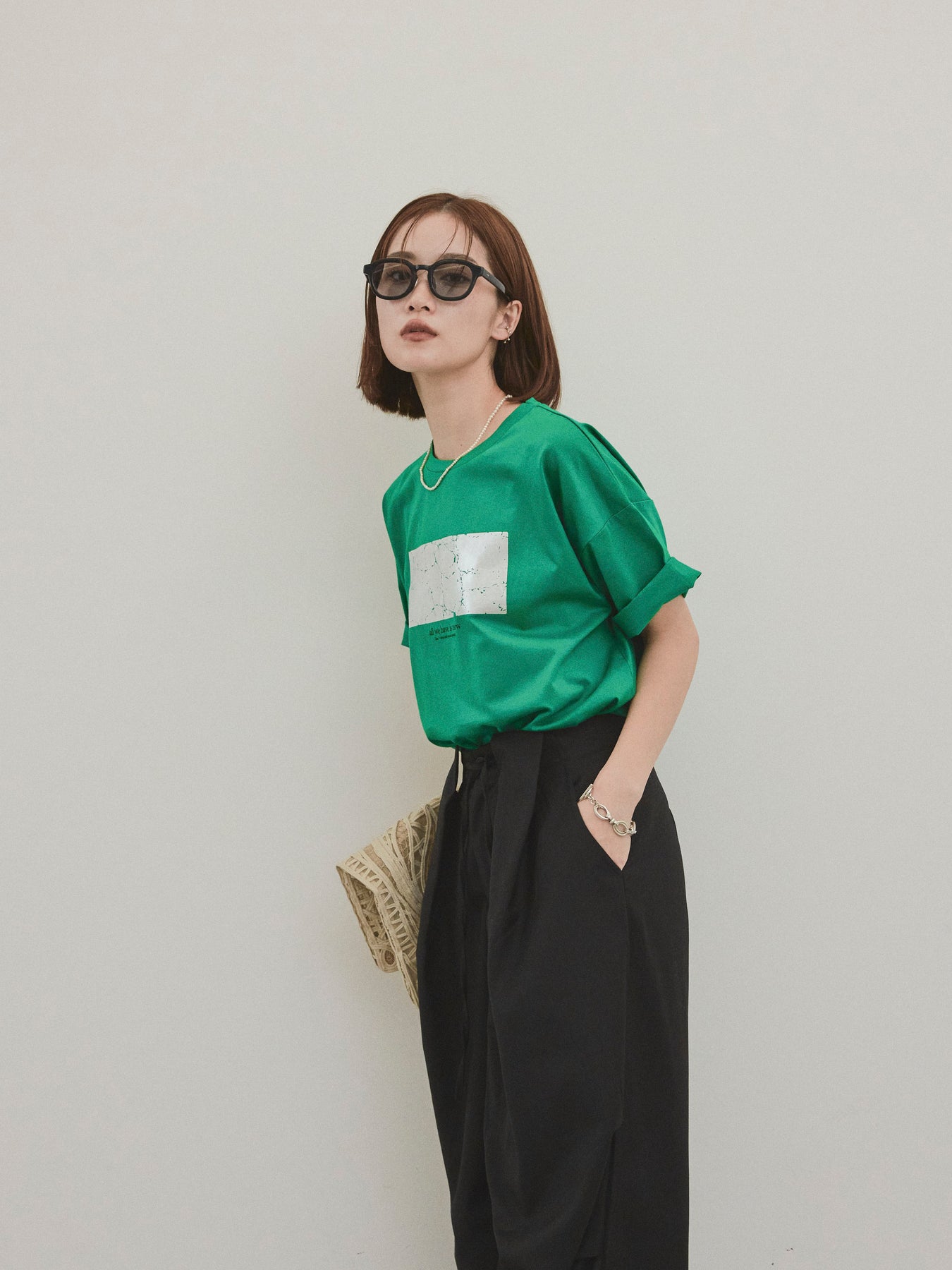 [予約]箔プリントドライタッチコットンTEE /グリーン