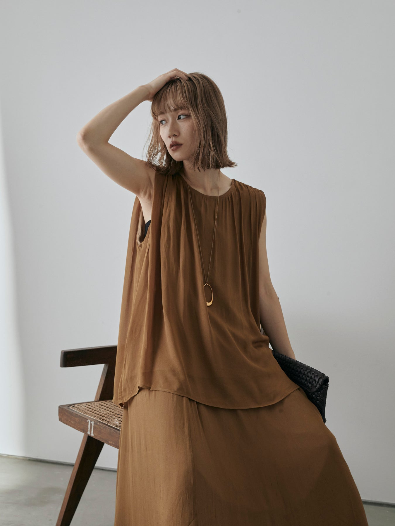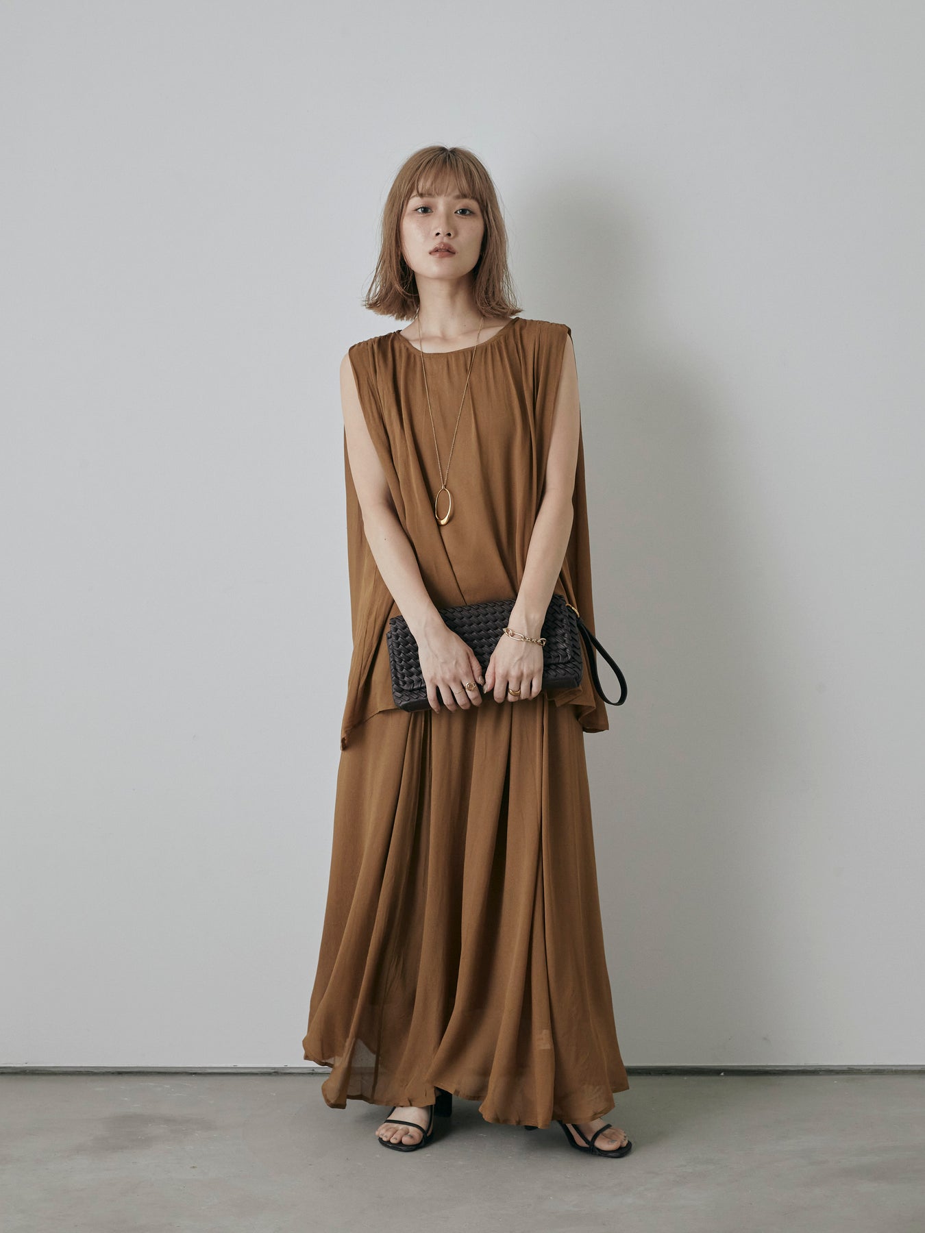 歩くたびにふわりと揺れる、軽やかなシアー素材が魅力のフレアマキシスカート。 ほどよい透け感と落ち感のあるシルエットが、大人の抜け感と上品さを同時に演出してくれる一枚です。 ウエストは総ゴム仕様でリラクシーな履き心地ながら、たっぷりとしたフレアシルエットが縦ラインを強調しスタイルアップも◎。 裏地付きで透けすぎず、安心して着用できるのも嬉しいポイントです。 同素材のブラウスとセットアップで着用すれば、洗練されたワントーンコーデが完成。 Tシャツやタンクトップと合わせてカジュアルに着崩すのもおすすめです。