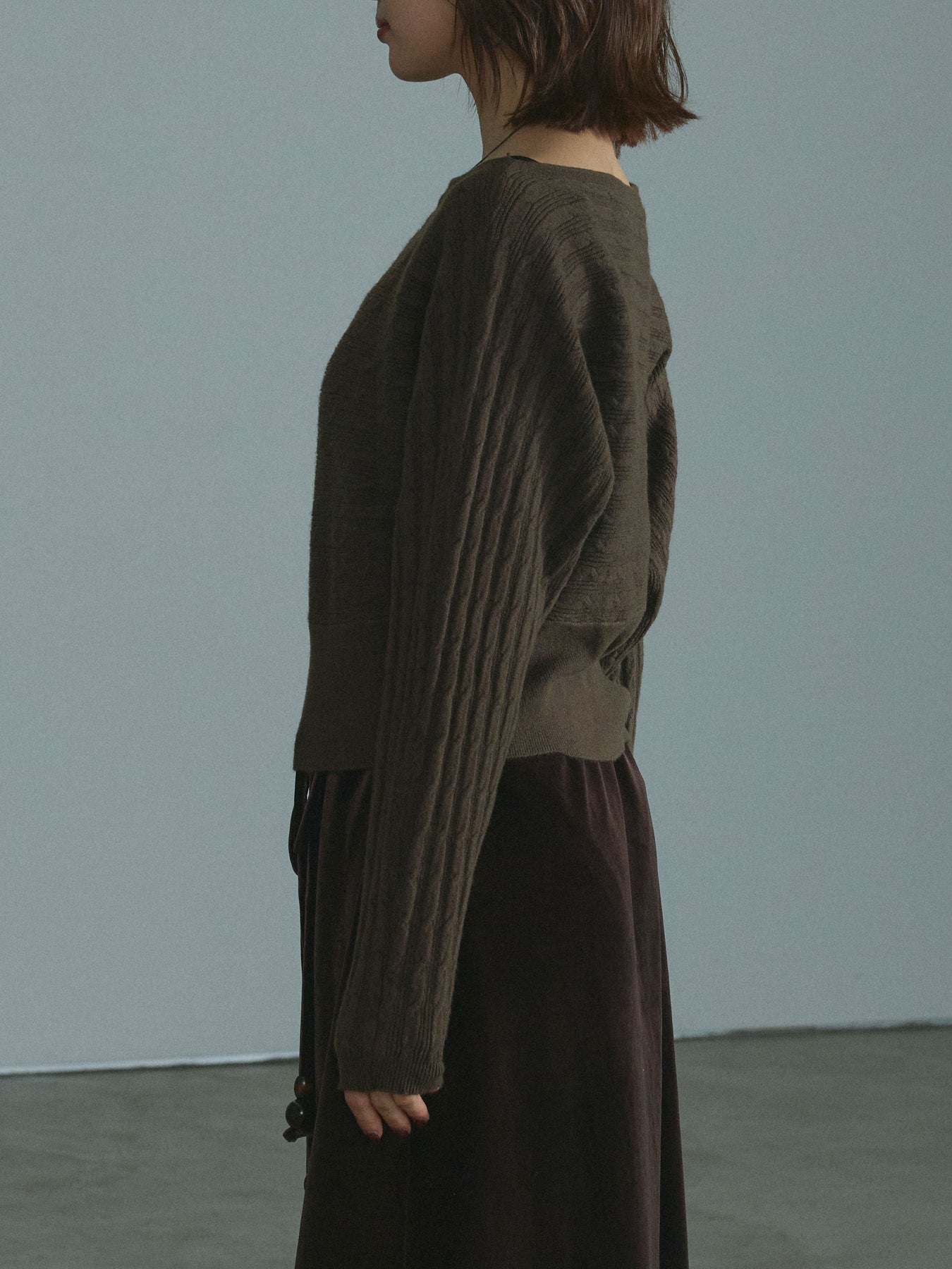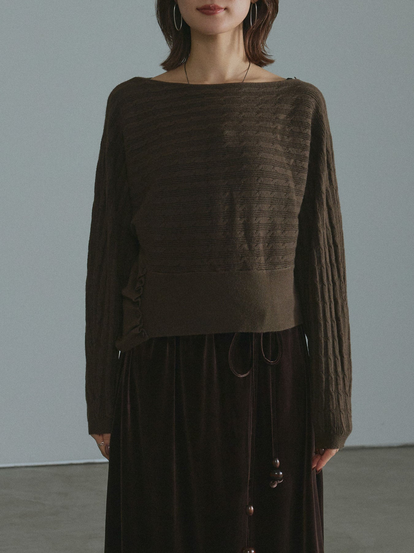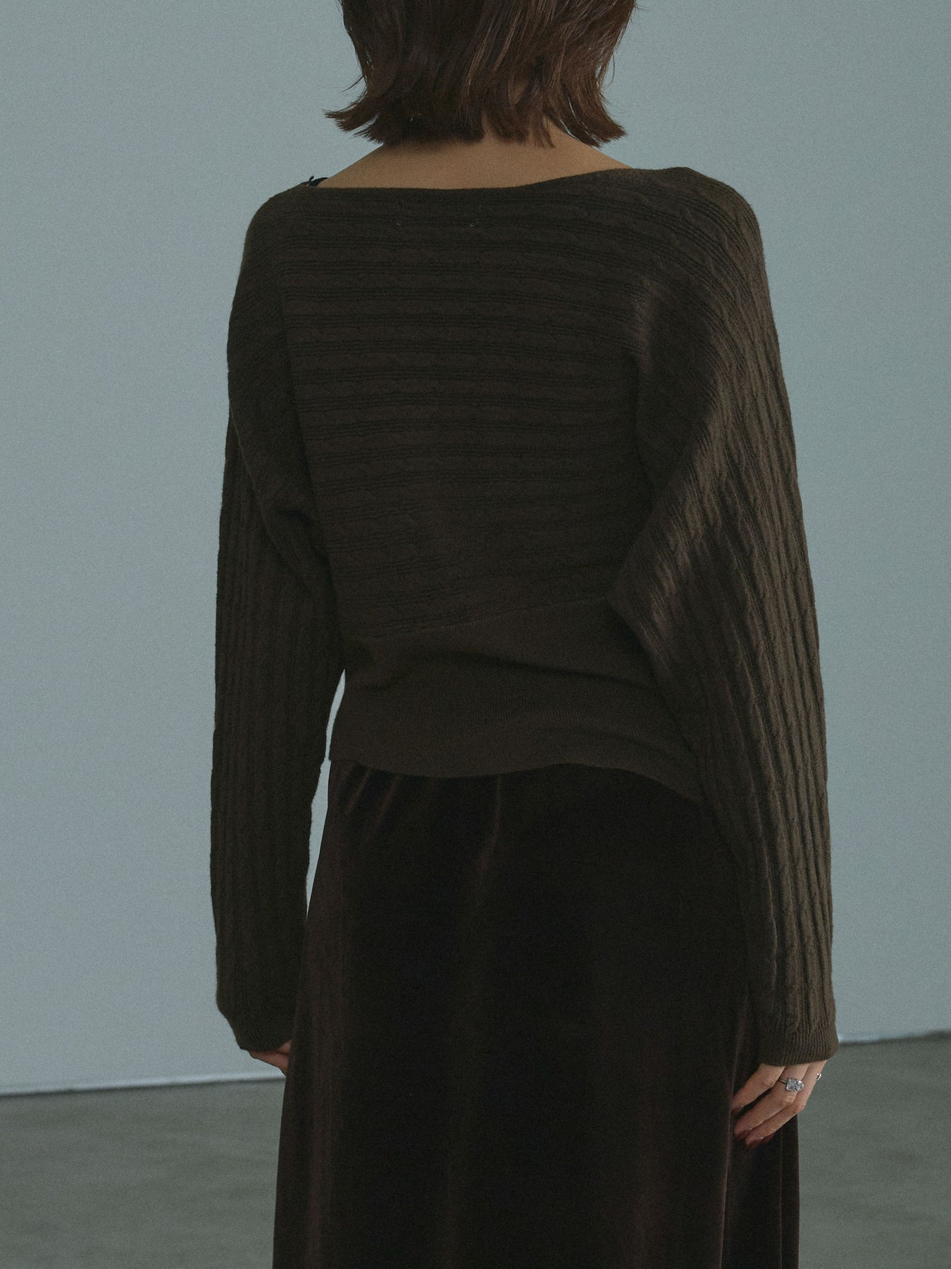 [予約]ワンショルケーブル編みニット/brown