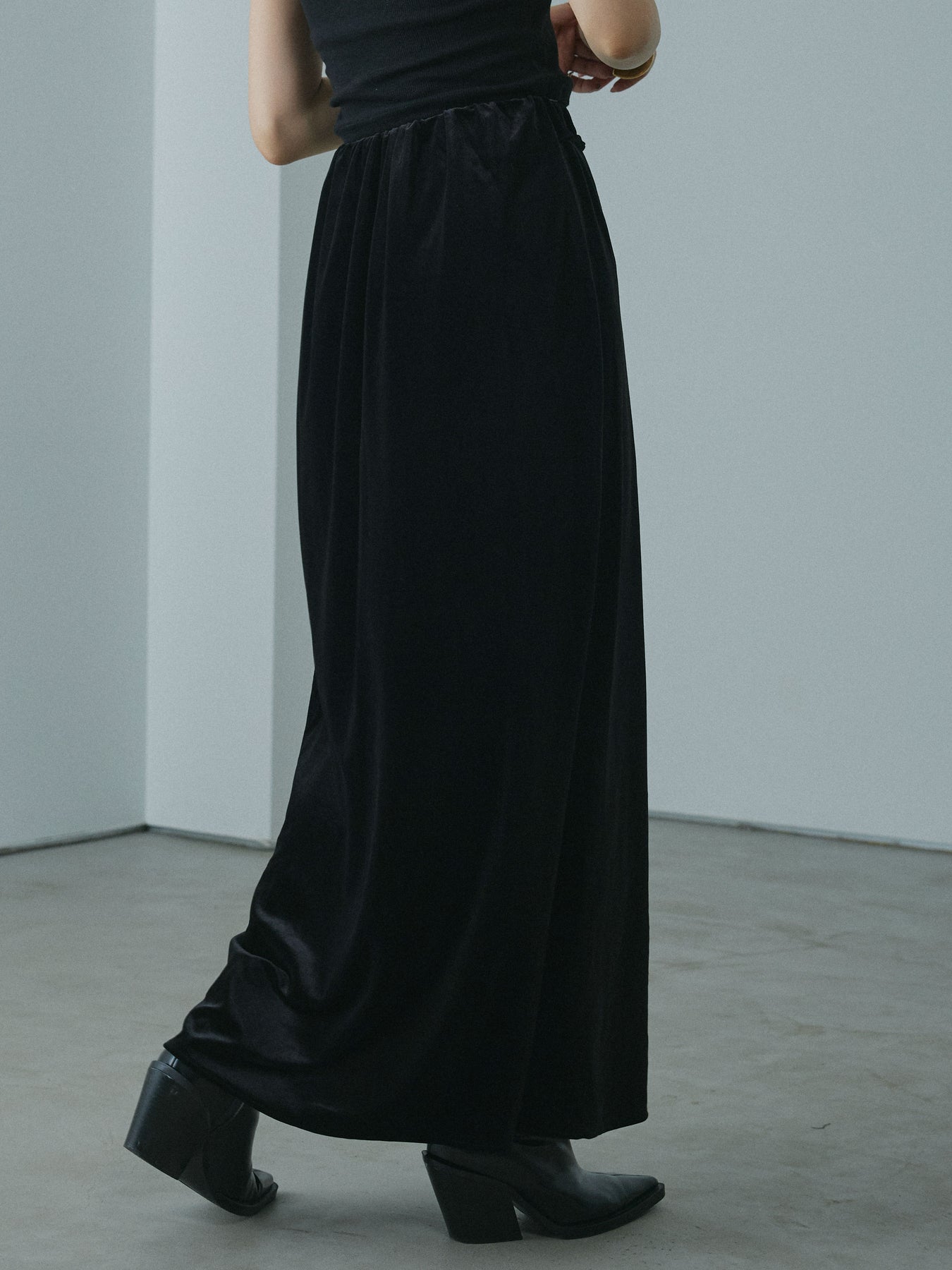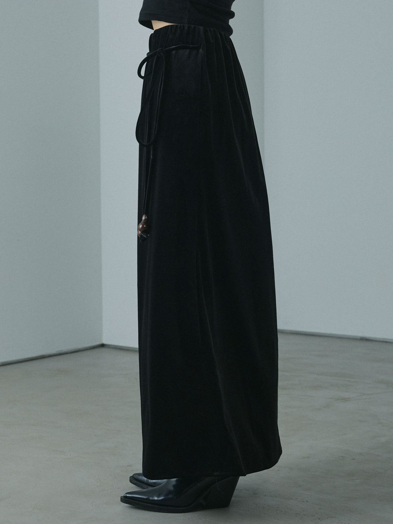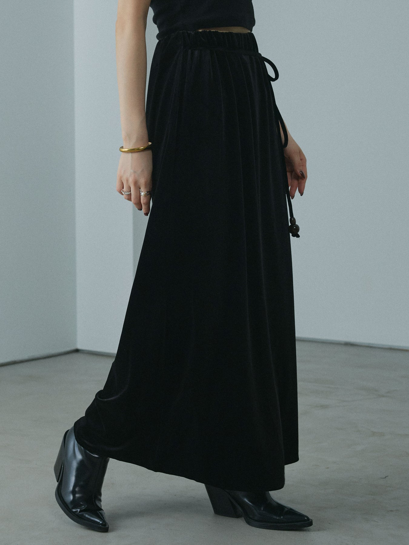 上品な光沢感が魅力のベロア素材を使用したナロースカート。 滑らかな肌触りと落ち感のあるシルエットが、歩くたびにエレガントな印象を与えます。 ウエストにはコードベルトを施し、さりげないアクセントをプラス。 シンプルながらも素材の存在感が際立ち、ニットやブラウスなど様々なトップスと好相性です。 シーズンムードを高めるベロアの質感で、デイリーにも特別な日にも取り入れやすい一枚。 ※ボトムス、キャミソール(インナー)以外の商品は一律でインナーは付属していません。