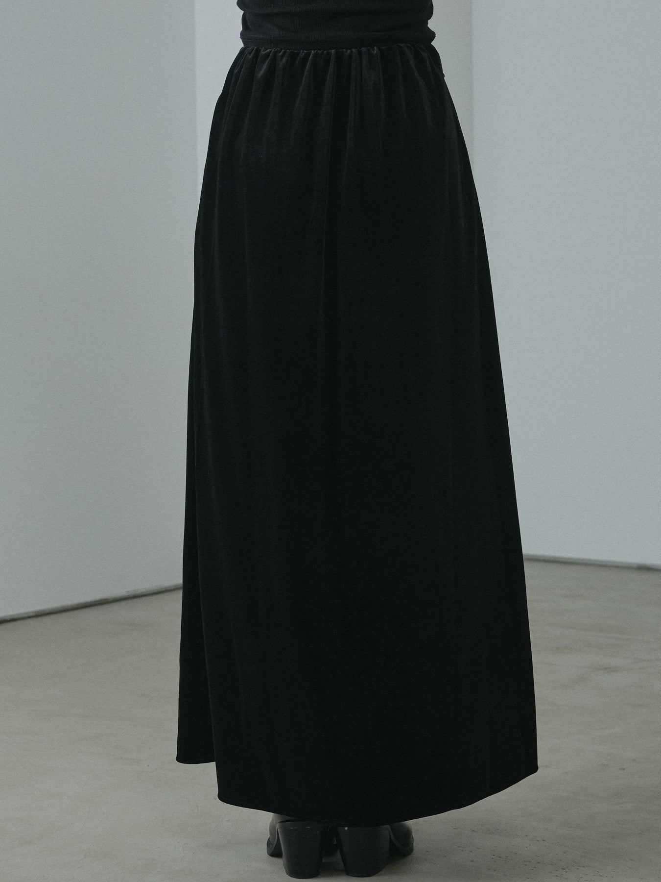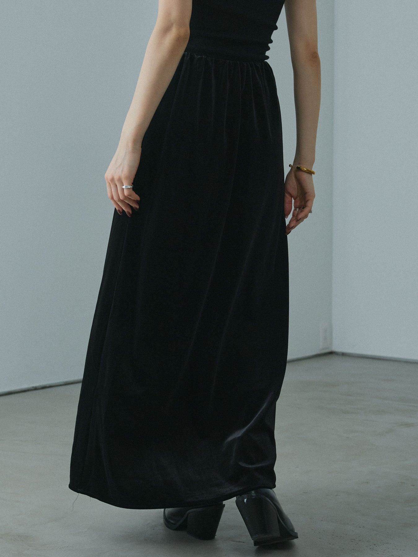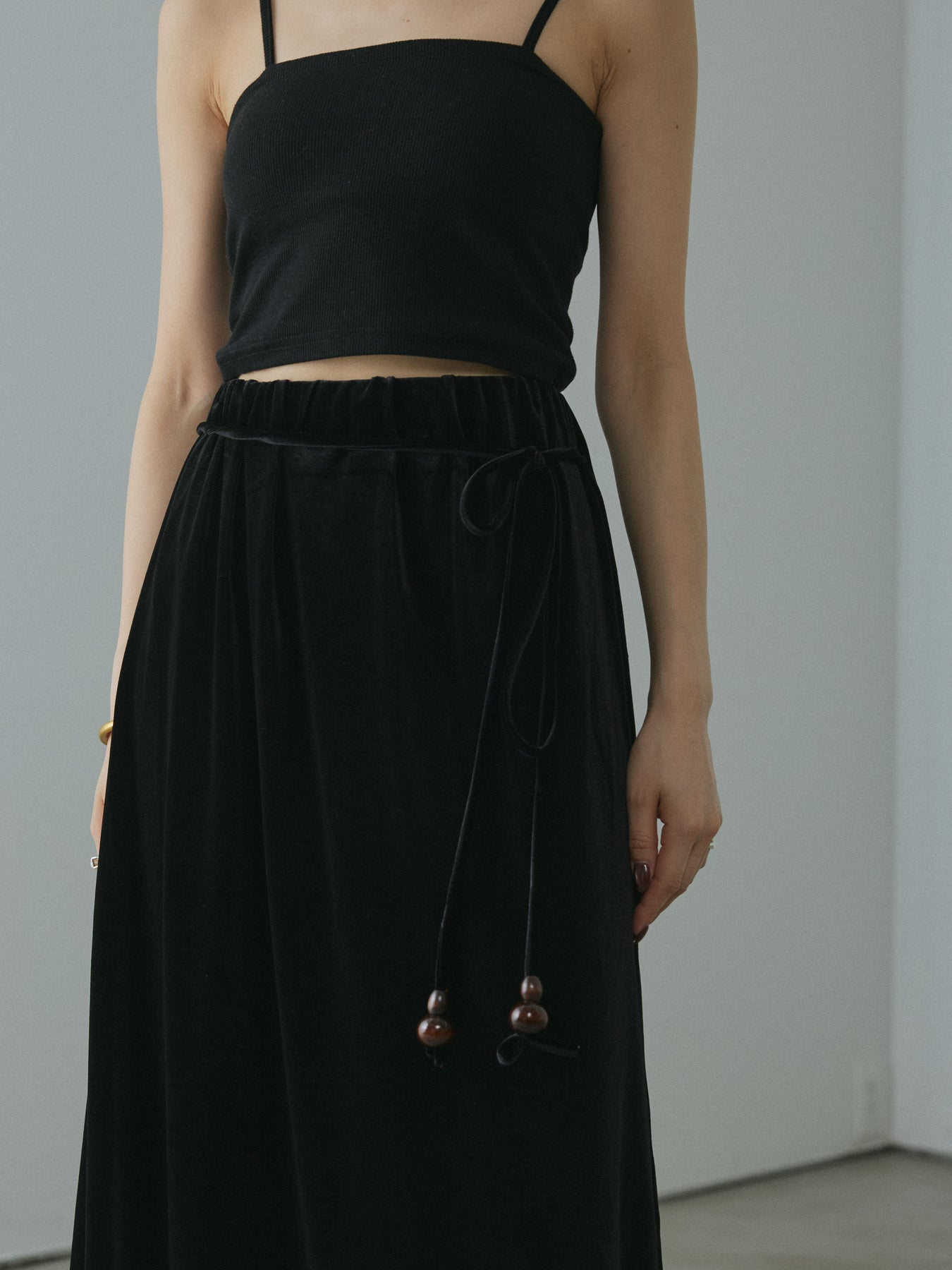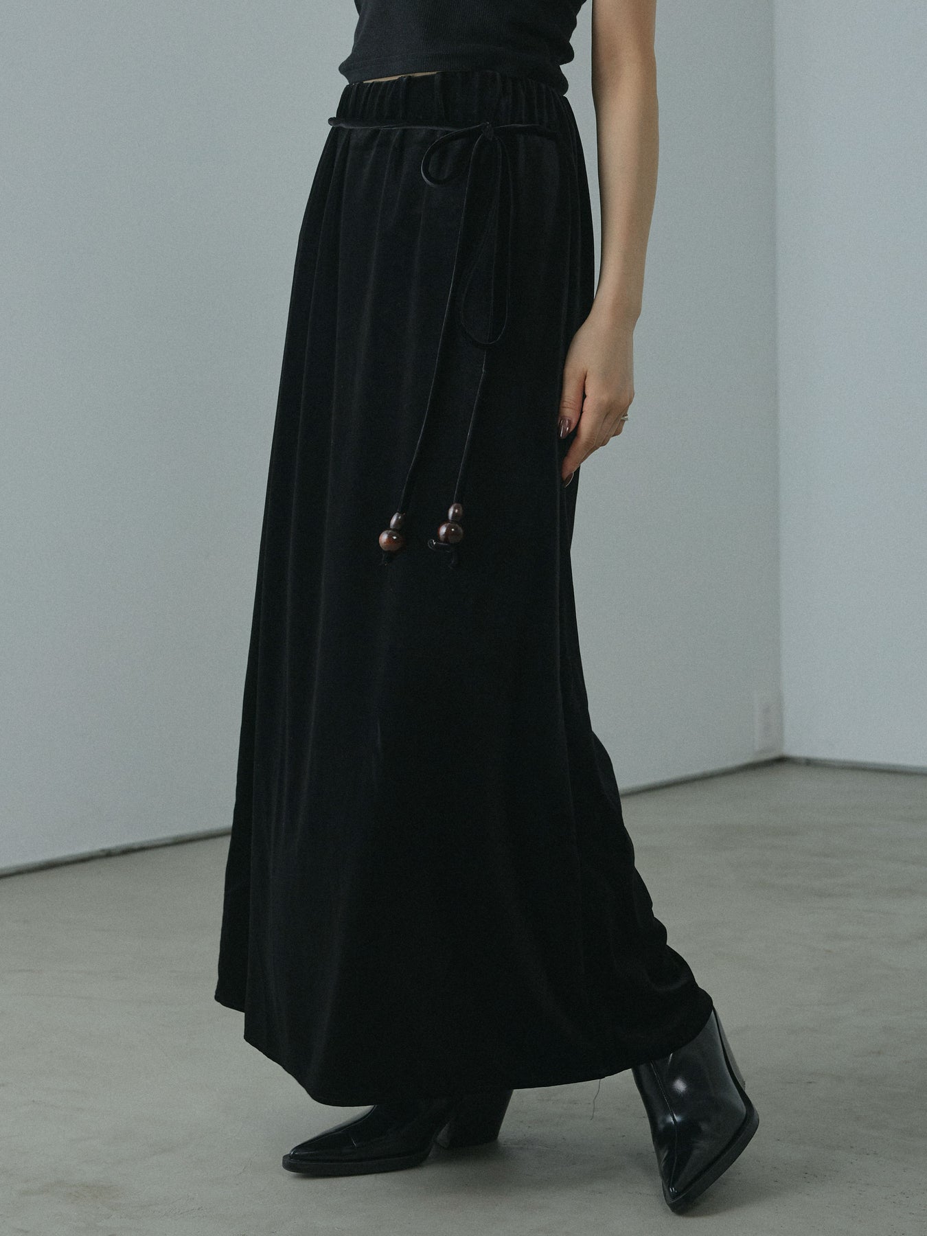 上品な光沢感が魅力のベロア素材を使用したナロースカート。 滑らかな肌触りと落ち感のあるシルエットが、歩くたびにエレガントな印象を与えます。 ウエストにはコードベルトを施し、さりげないアクセントをプラス。 シンプルながらも素材の存在感が際立ち、ニットやブラウスなど様々なトップスと好相性です。 シーズンムードを高めるベロアの質感で、デイリーにも特別な日にも取り入れやすい一枚。 ※ボトムス、キャミソール(インナー)以外の商品は一律でインナーは付属していません。